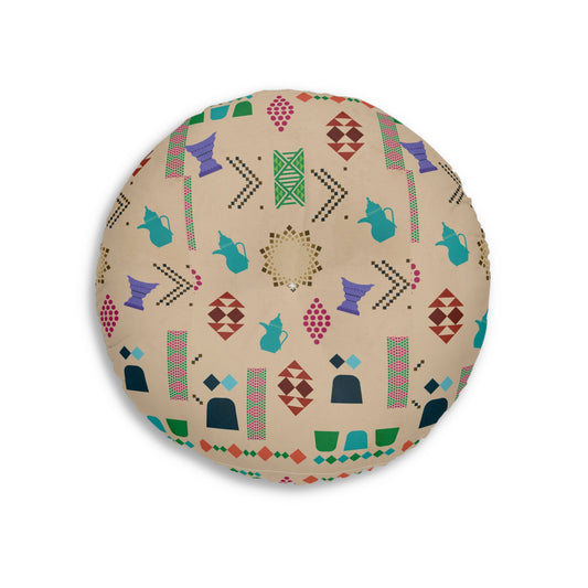 Arabic Style Tufted Floor Pillow, Round Medallion Design, Vintage Style Cushion, Living Room Decor, Boho Home Accessory, Floor Seating, [...]