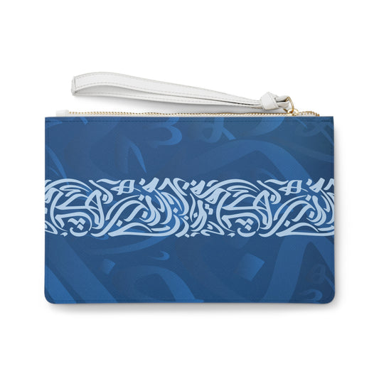 Large* Blue and White Arabic Calligraphy Themed Clutch Bag, Stylish Purse