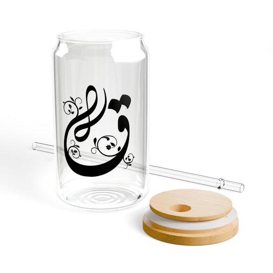 Arabic Letter “Qaf” "ق" Monogram Sipper Glass, 16oz | Eco-Friendly Beverage Container | Perfect for Home, picnics, Gifts, and Parties