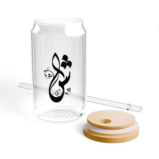 Arabic Letter “sheen” "ش" Monogram Sipper Glass, 16oz | Eco-Friendly Beverage Container | Perfect for Home, picnics, Gifts, and Parties