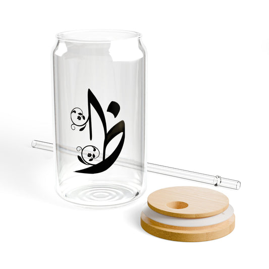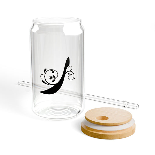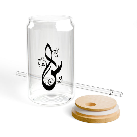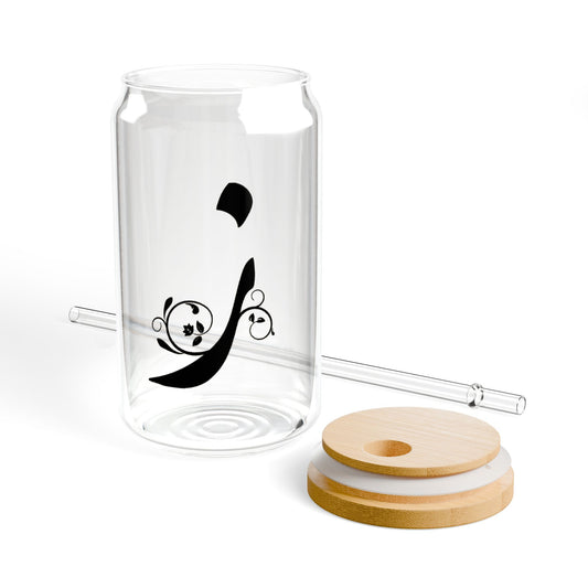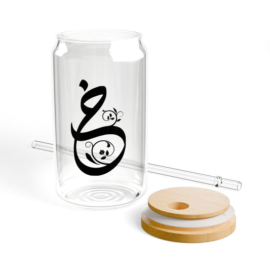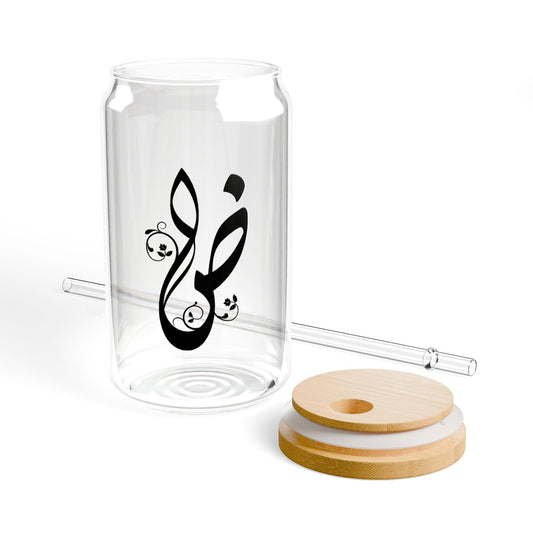 Arabic Letter “Dhadh” "ض" Monogram Sipper Glass, 16oz | Eco-Friendly Beverage Container | Perfect for Home, picnics, Gifts, and Parties