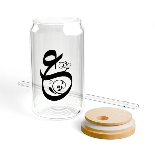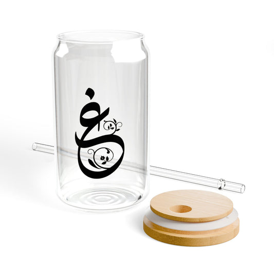 Arabic Letter “ghain” "غ" Monogram Sipper Glass, 16oz | Eco-Friendly Beverage Container | Perfect for Home, picnics, Gifts, and Parties
