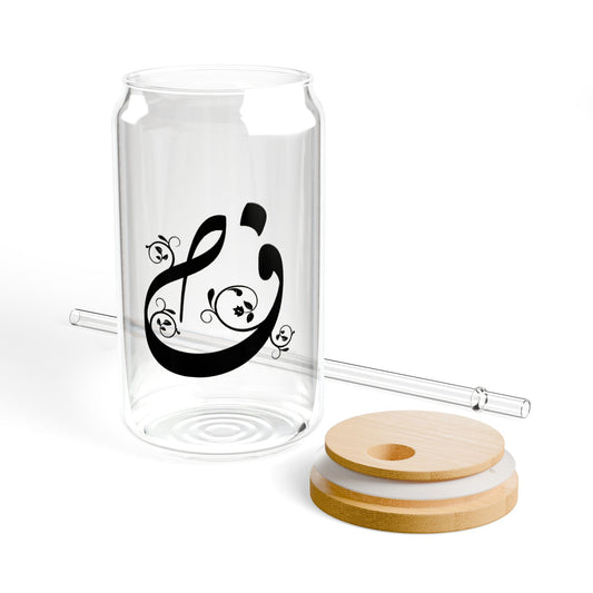 Arabic Letter “Tha” "ظ" Monogram Sipper Glass, 16oz | Eco-Friendly Beverage Container | Perfect for Home, picnics, Gifts, and Parties