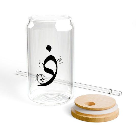 Arabic Letter “Fa” "ف" Monogram Sipper Glass, 16oz | Eco-Friendly Beverage Container | Perfect for Home, picnics, Gifts, and Parties
