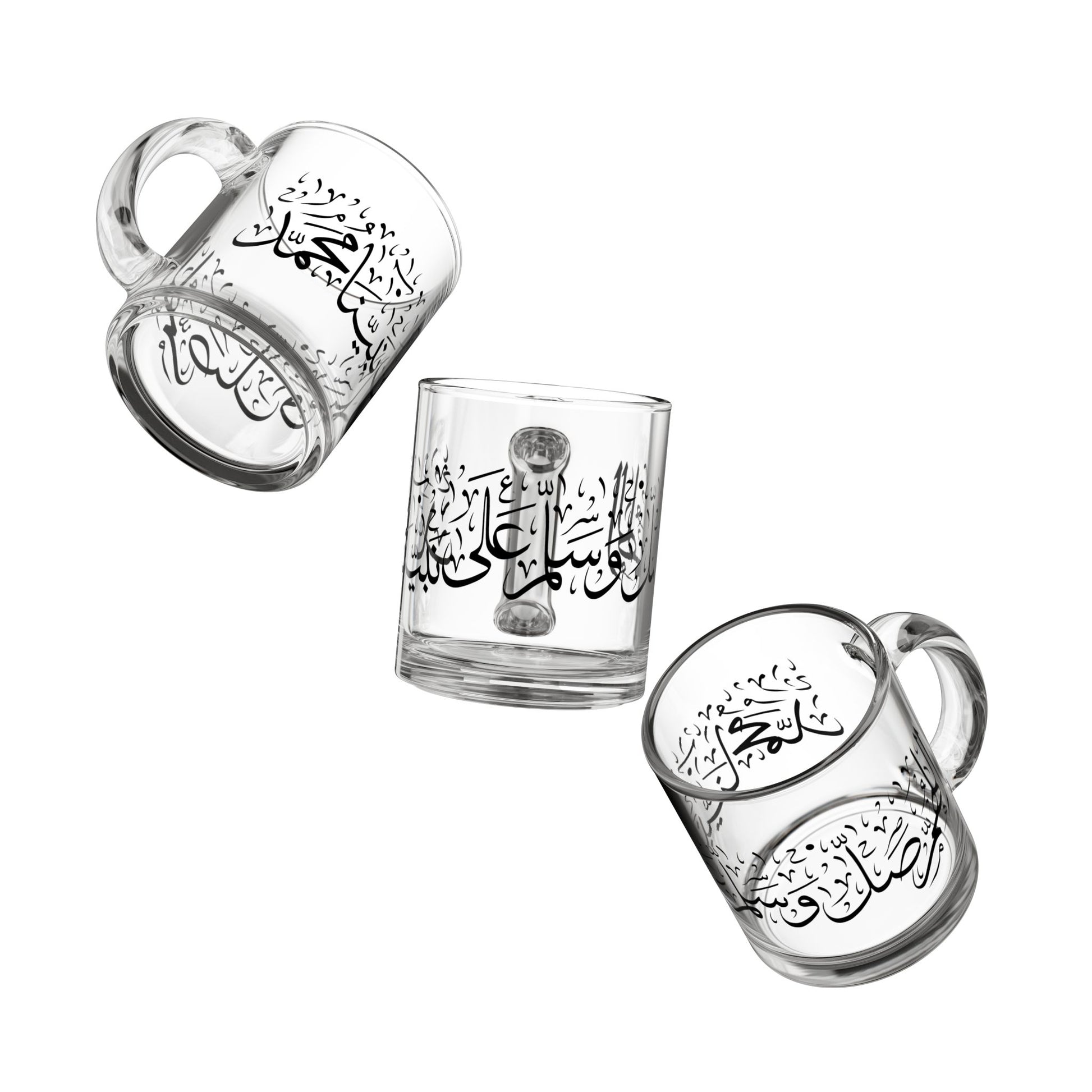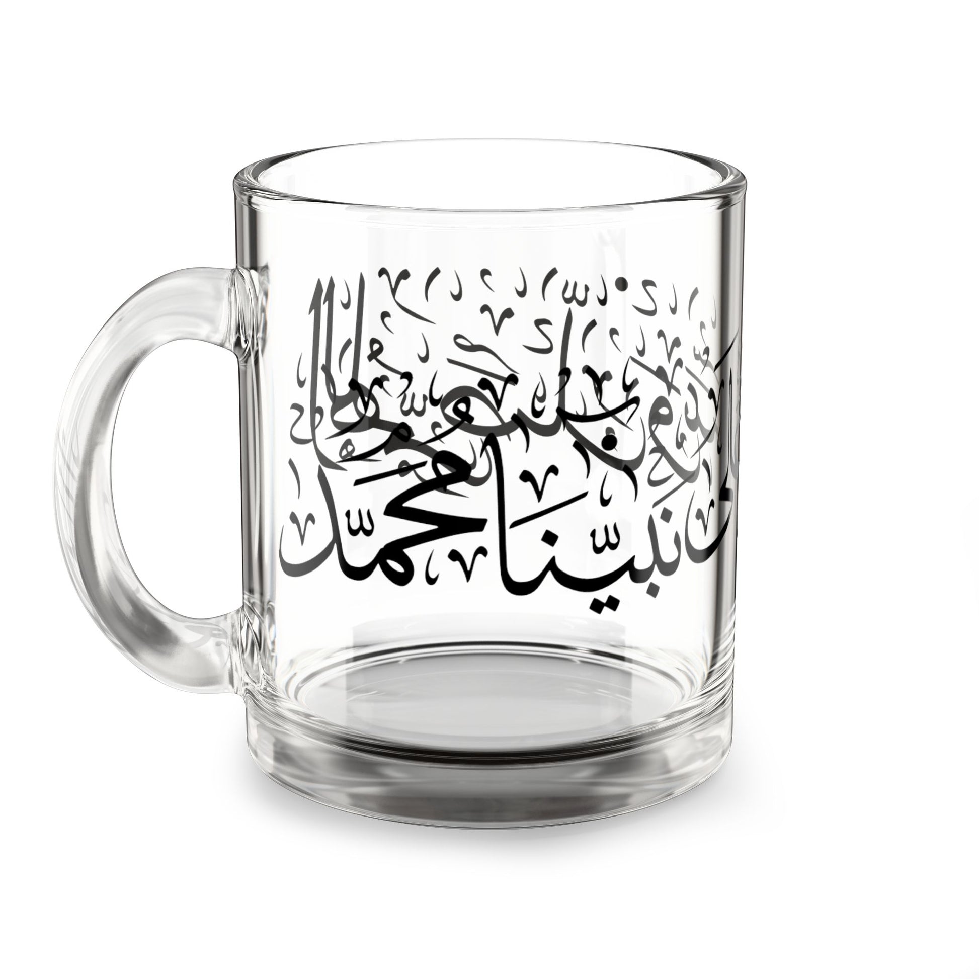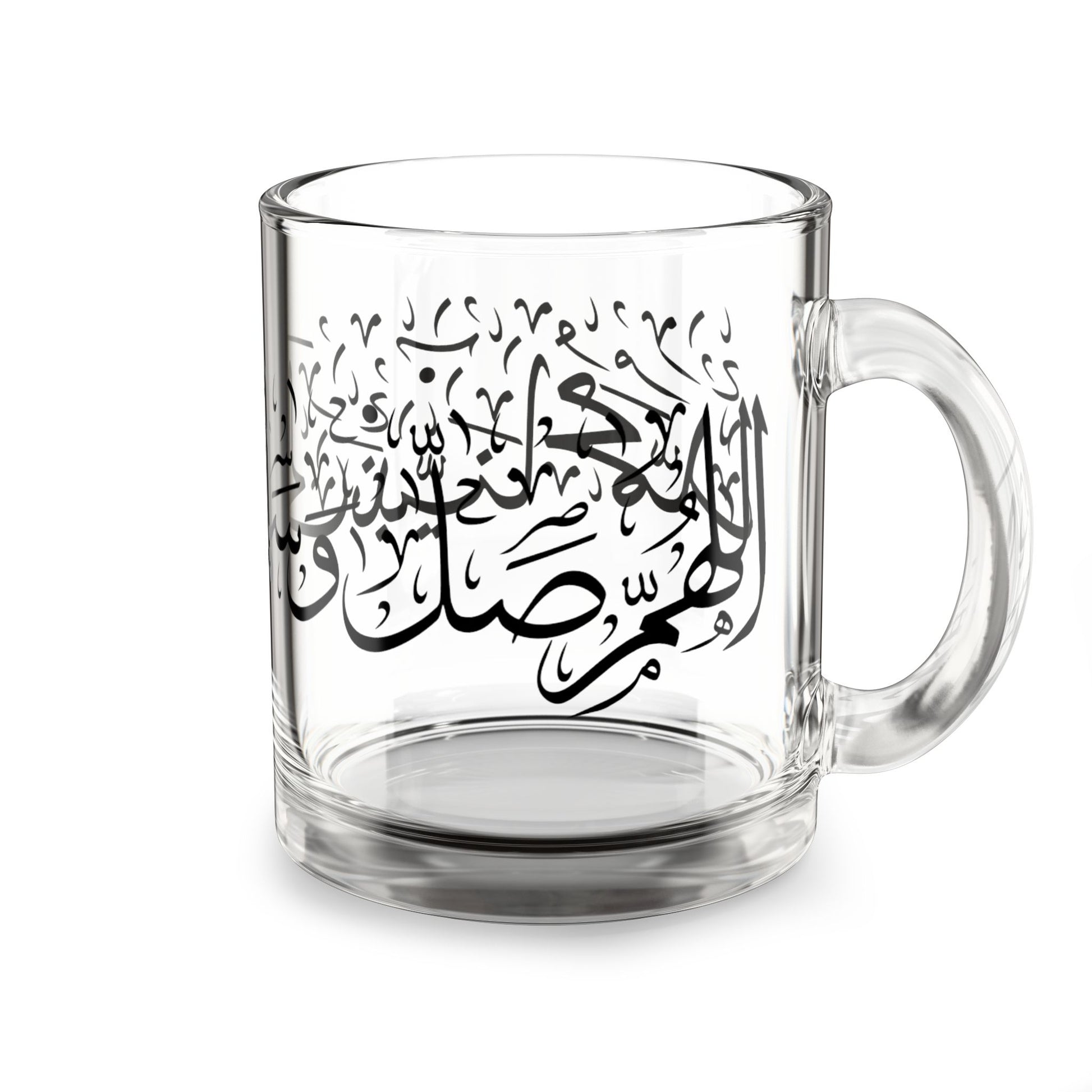 Introducing our stylish Clear Glass Mug, a perfect blend of modern design and functional elegance. This 10oz mug showcases a beautiful artistic print of the salawat to our beloved prophet, making every sip a pleasurable experience. Its clear glass structure adds a touch of sophistication to your kitchen or office, while the ergonomic C-shaped handle ensures a comfortable grip. Ideal for tea, coffee, or your favorite beverages, this mug fits seamlessly into your daily routine or special occasions. Perfect for gifting to friends, family, or colleagues during invites, Eid, holidays, or simply as a thoughtful gesture. Celebrate life's moments with this chic glass mug that symbolizes warmth and connection.