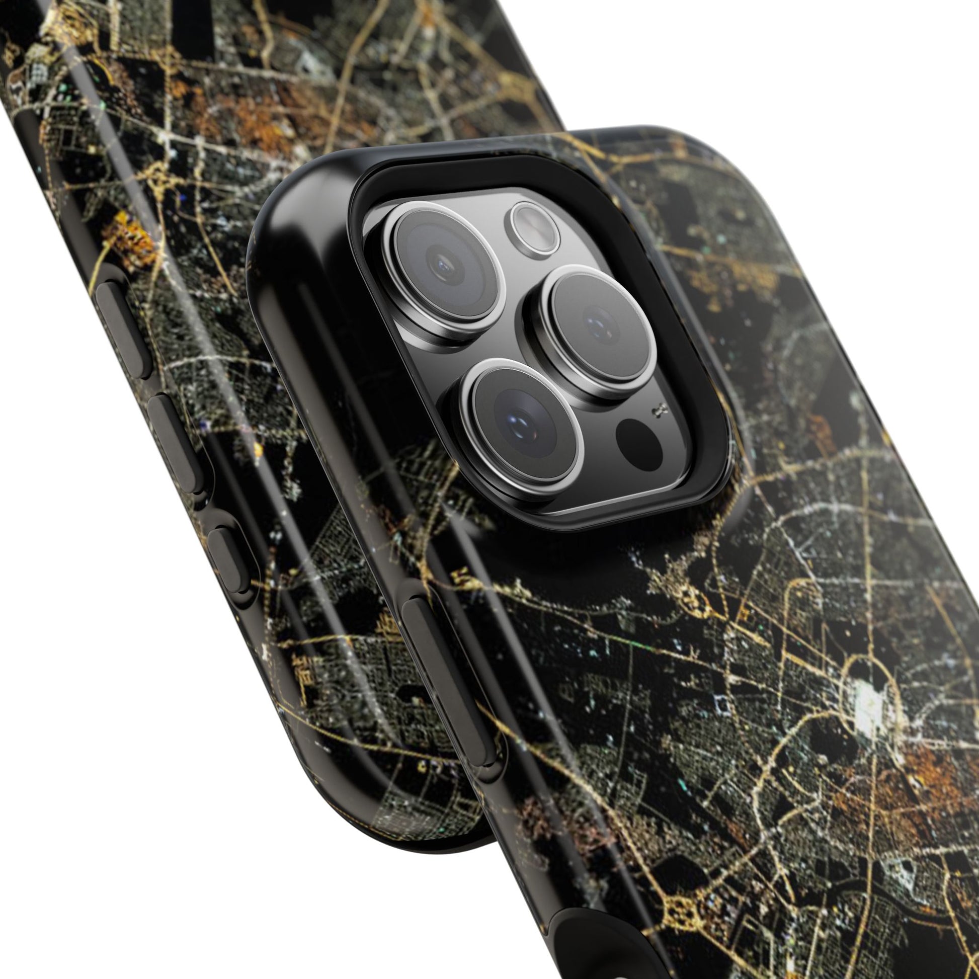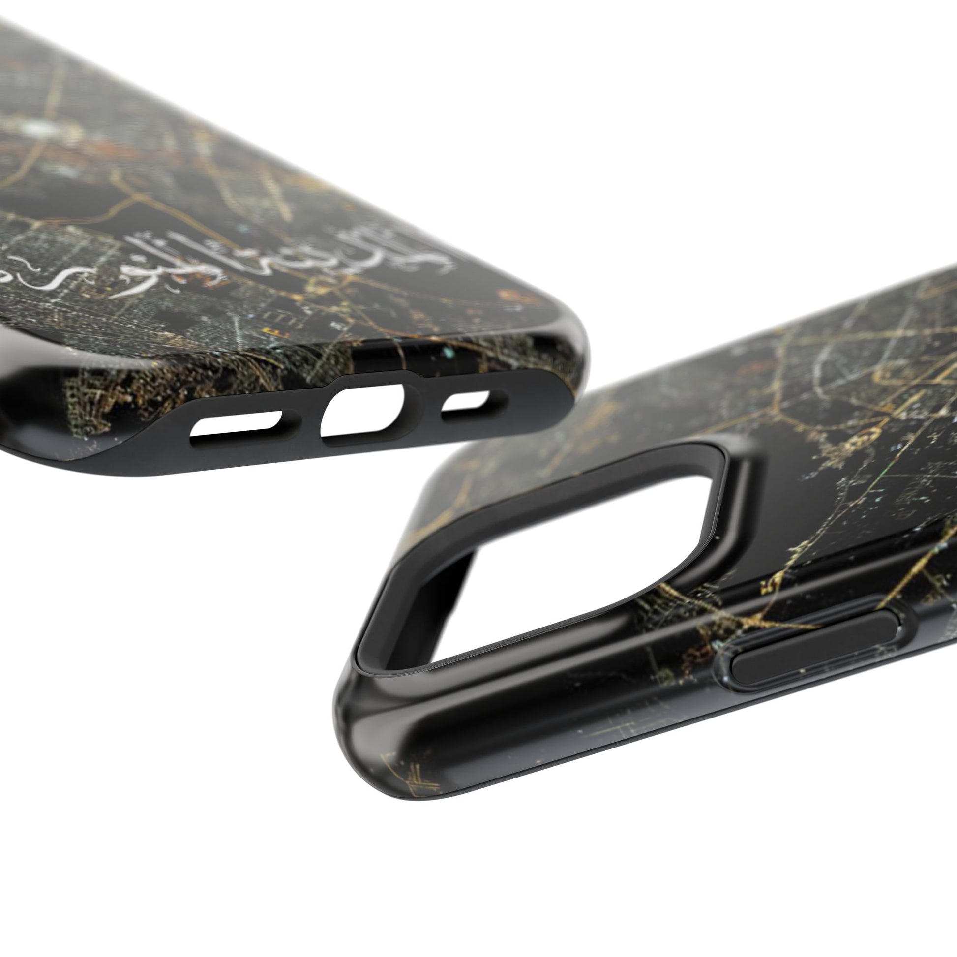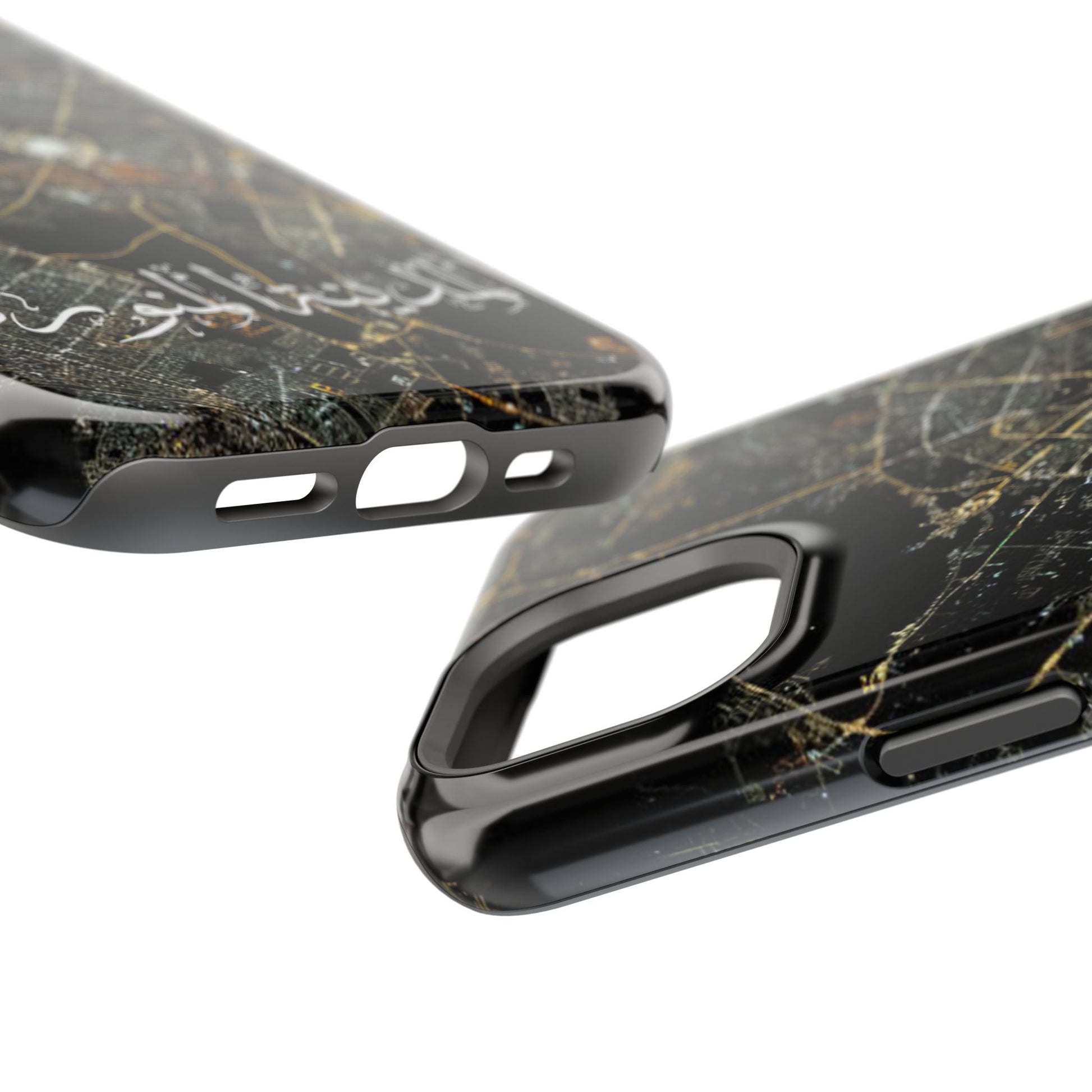 Al Madina Al Munawarah from Space- city of lights- magnetic tough case is is to remind you of your identity. Equipped with an outer polycarbonate shell and inner black TPU lining, this case delivers robust protection thanks to its durable, flexible, impact-resistant nature. Available in a matte or glossy finish, each case comes with an embedded magnet module that is compatible with MagSafe® accessories and a stunning print that fully wraps around your case's exterior.