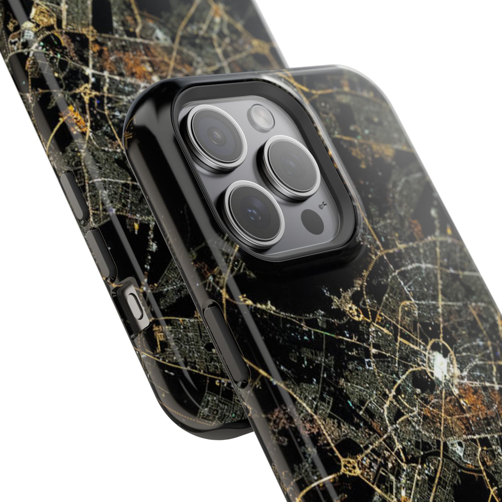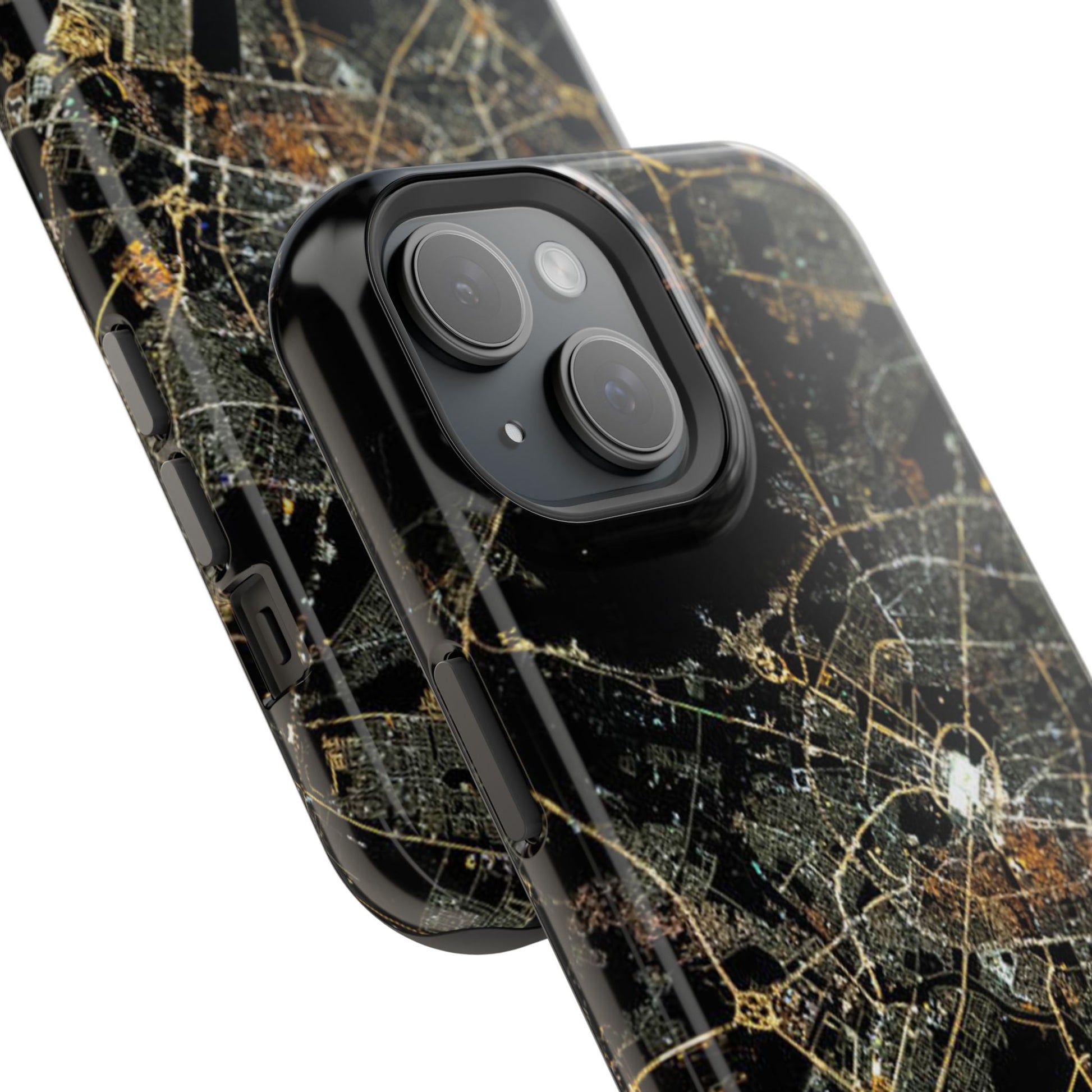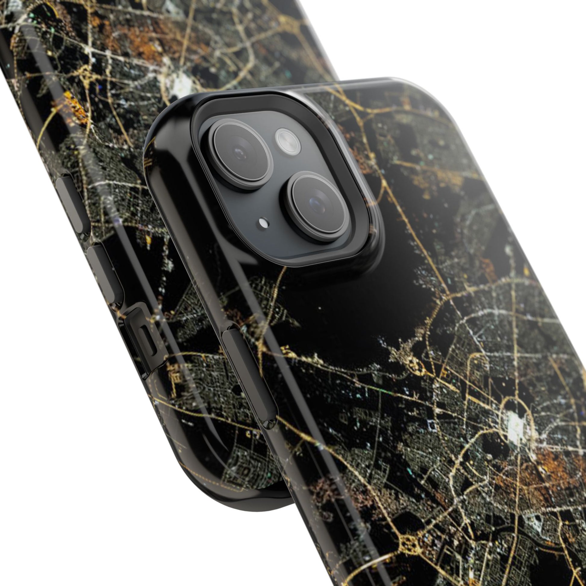 Al Madina Al Munawarah from Space- city of lights- magnetic tough case is is to remind you of your identity. Equipped with an outer polycarbonate shell and inner black TPU lining, this case delivers robust protection thanks to its durable, flexible, impact-resistant nature. Available in a matte or glossy finish, each case comes with an embedded magnet module that is compatible with MagSafe® accessories and a stunning print that fully wraps around your case's exterior.