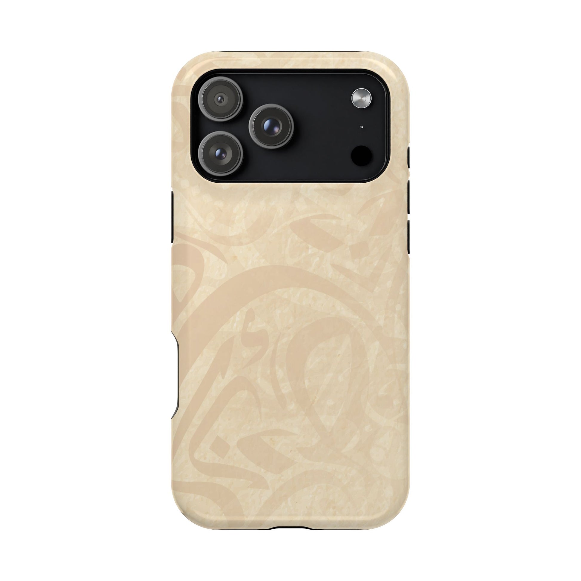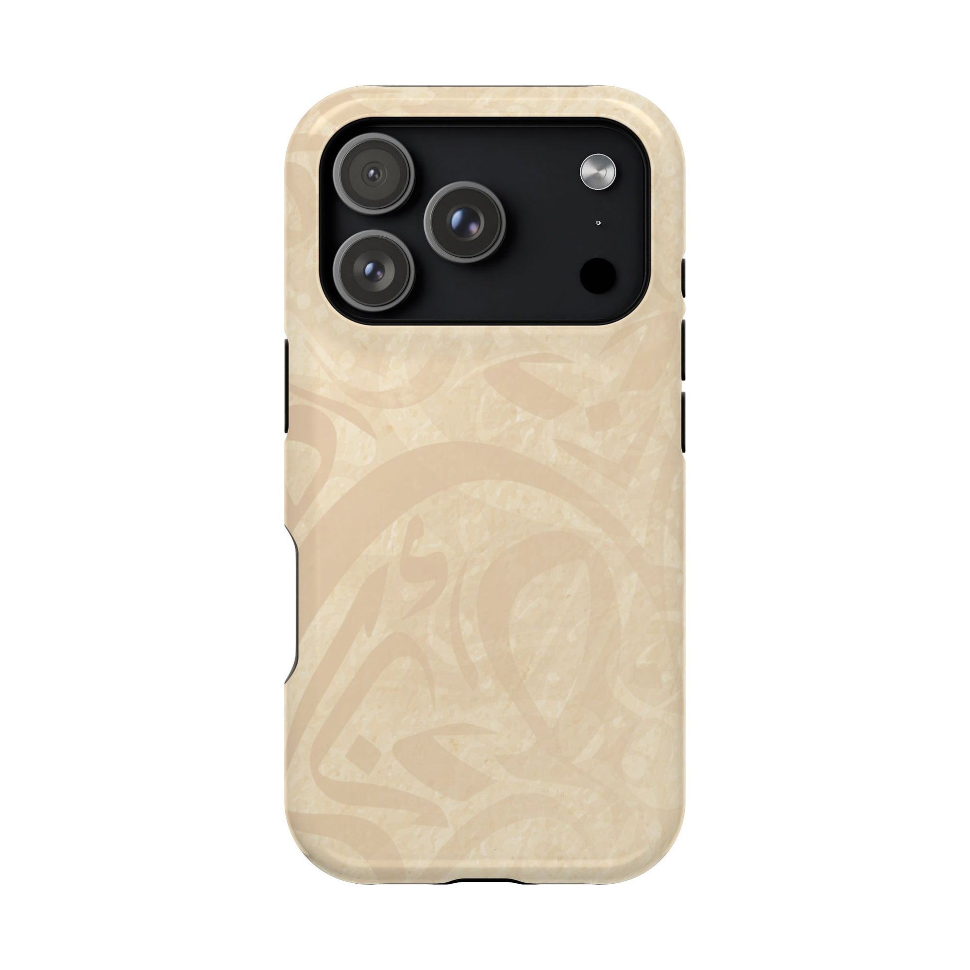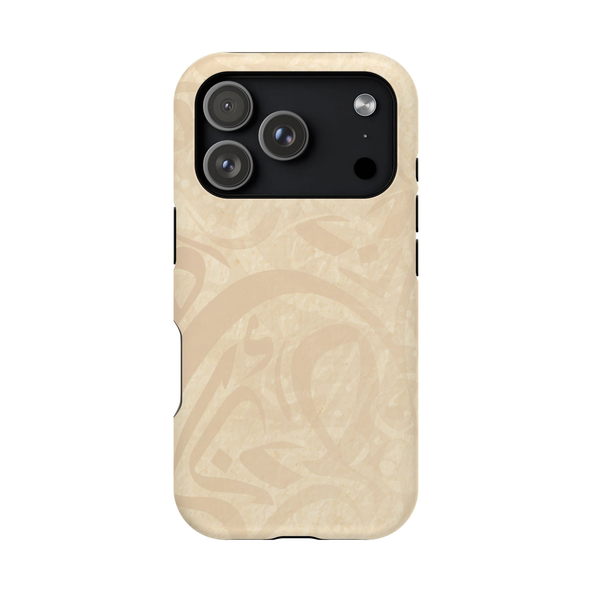 Arabic Flare magnetic phone case. Equipped with an outer polycarbonate shell and inner black TPU lining, this case delivers robust protection thanks to its durable, flexible, impact-resistant nature. Available in a matte or glossy finish, each case comes with an embedded magnet module that is compatible with MagSafe® accessories and a stunning print that fully wraps around your case's exterior.