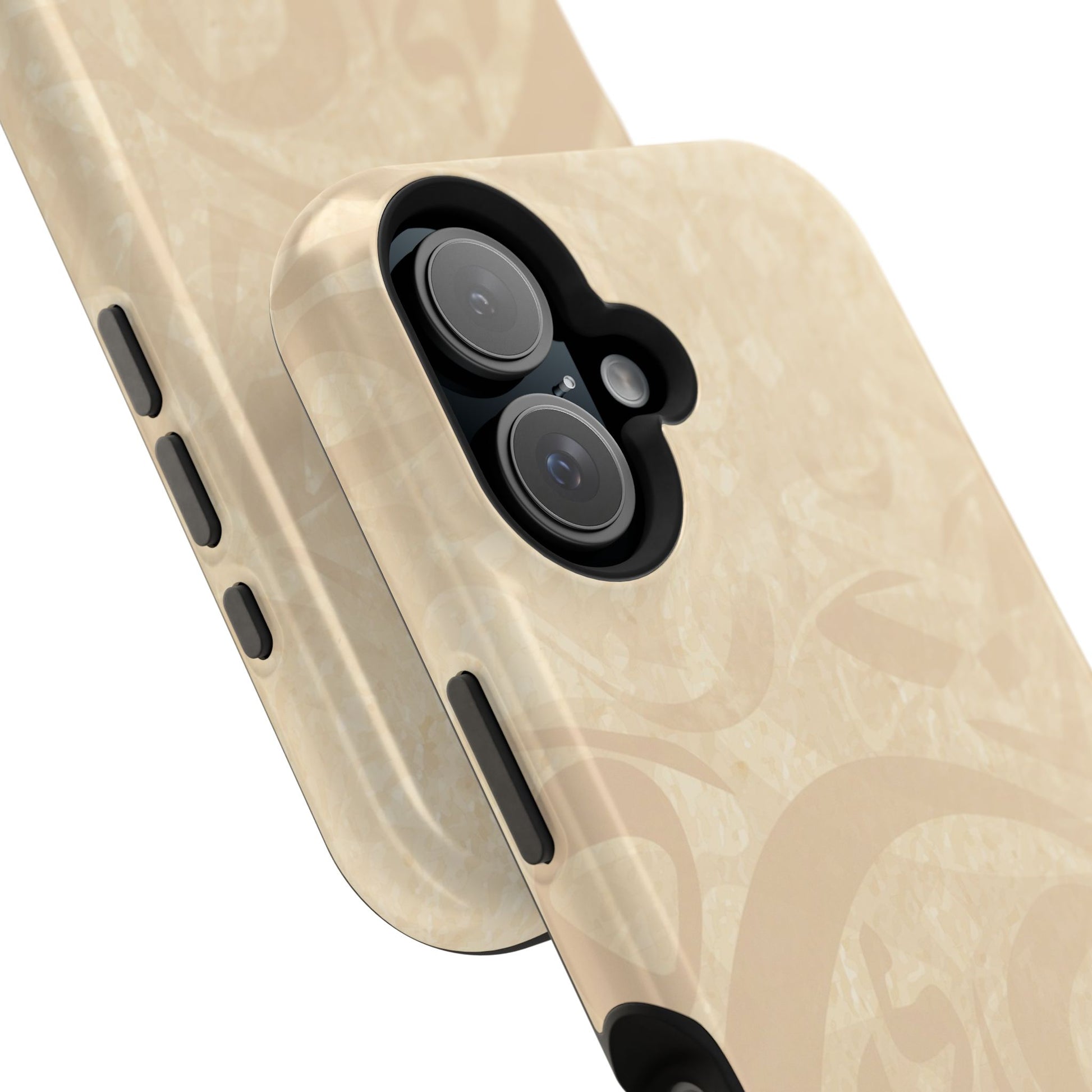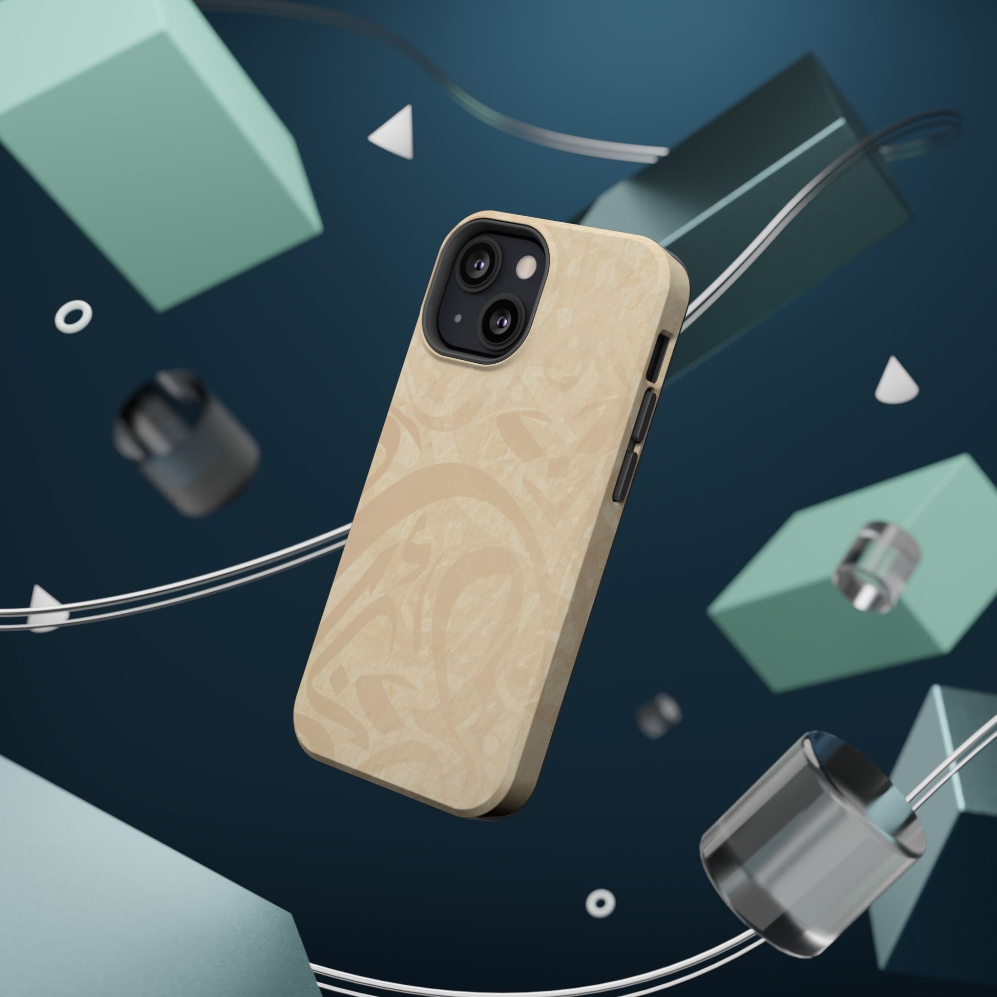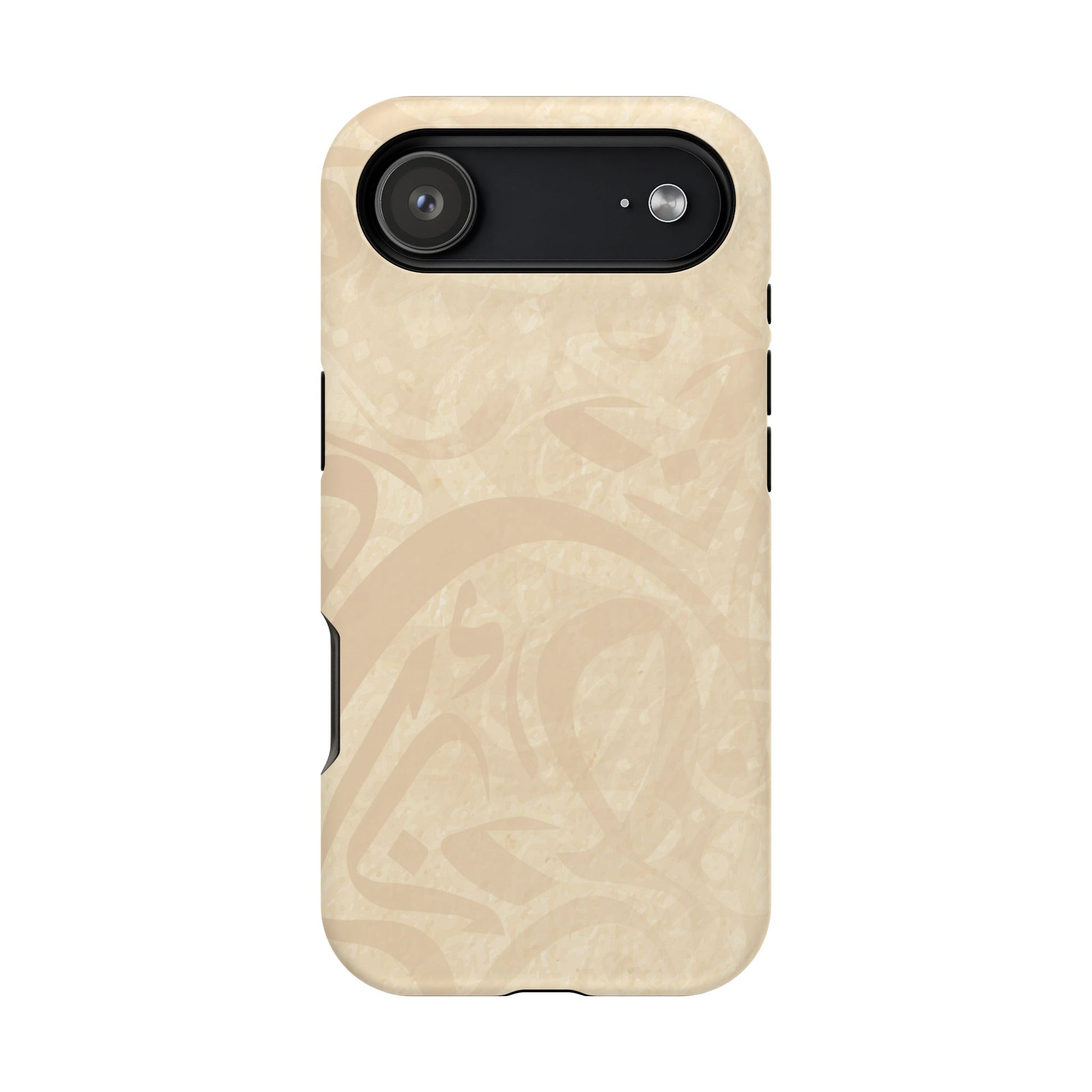 Arabic Flare magnetic phone case. Equipped with an outer polycarbonate shell and inner black TPU lining, this case delivers robust protection thanks to its durable, flexible, impact-resistant nature. Available in a matte or glossy finish, each case comes with an embedded magnet module that is compatible with MagSafe® accessories and a stunning print that fully wraps around your case's exterior.