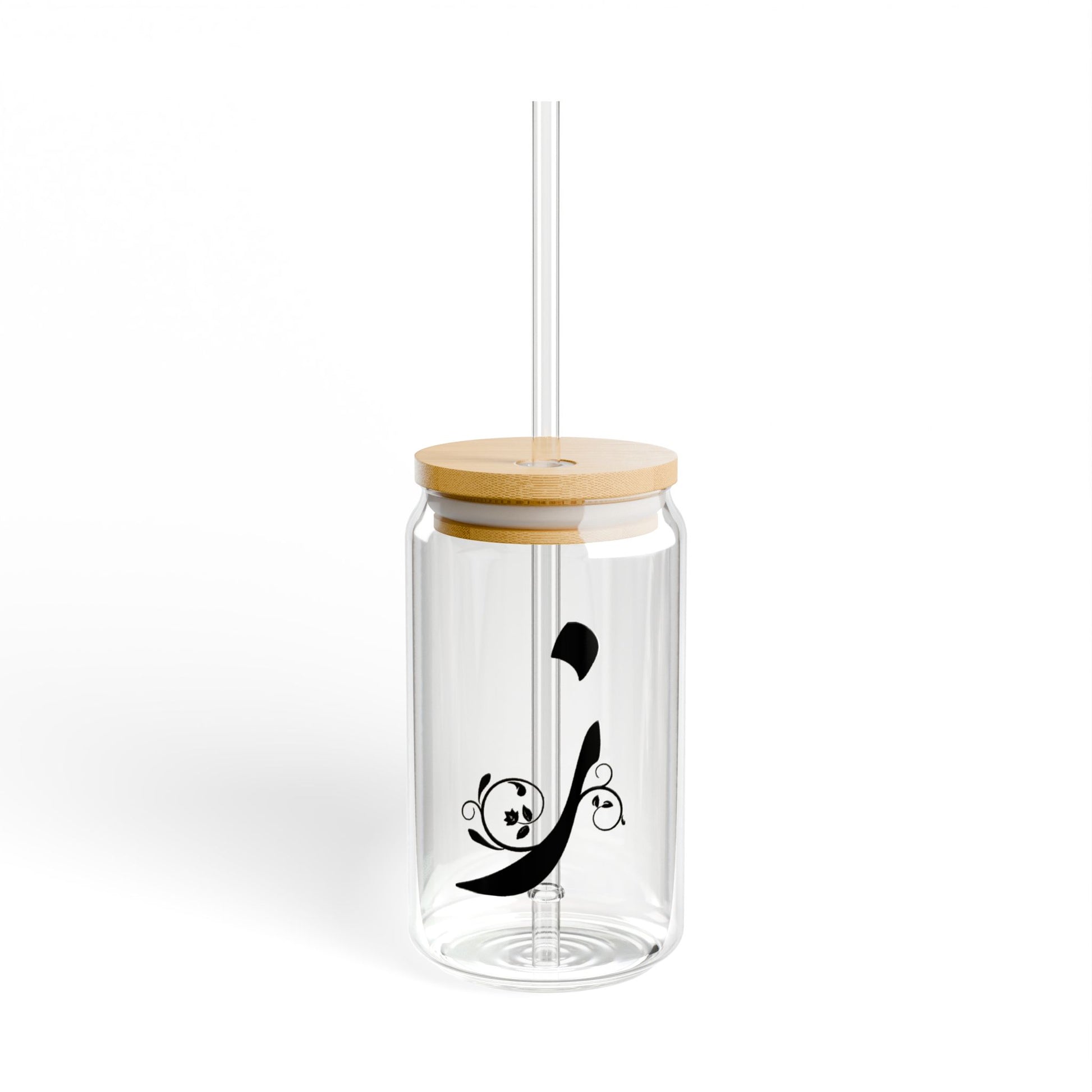 Arabic Letter “Zain” "ز" Monogram Sipper Glass, 16oz | Eco-Friendly Beverage Container | Perfect for Home, picnics, Gifts, and Parties