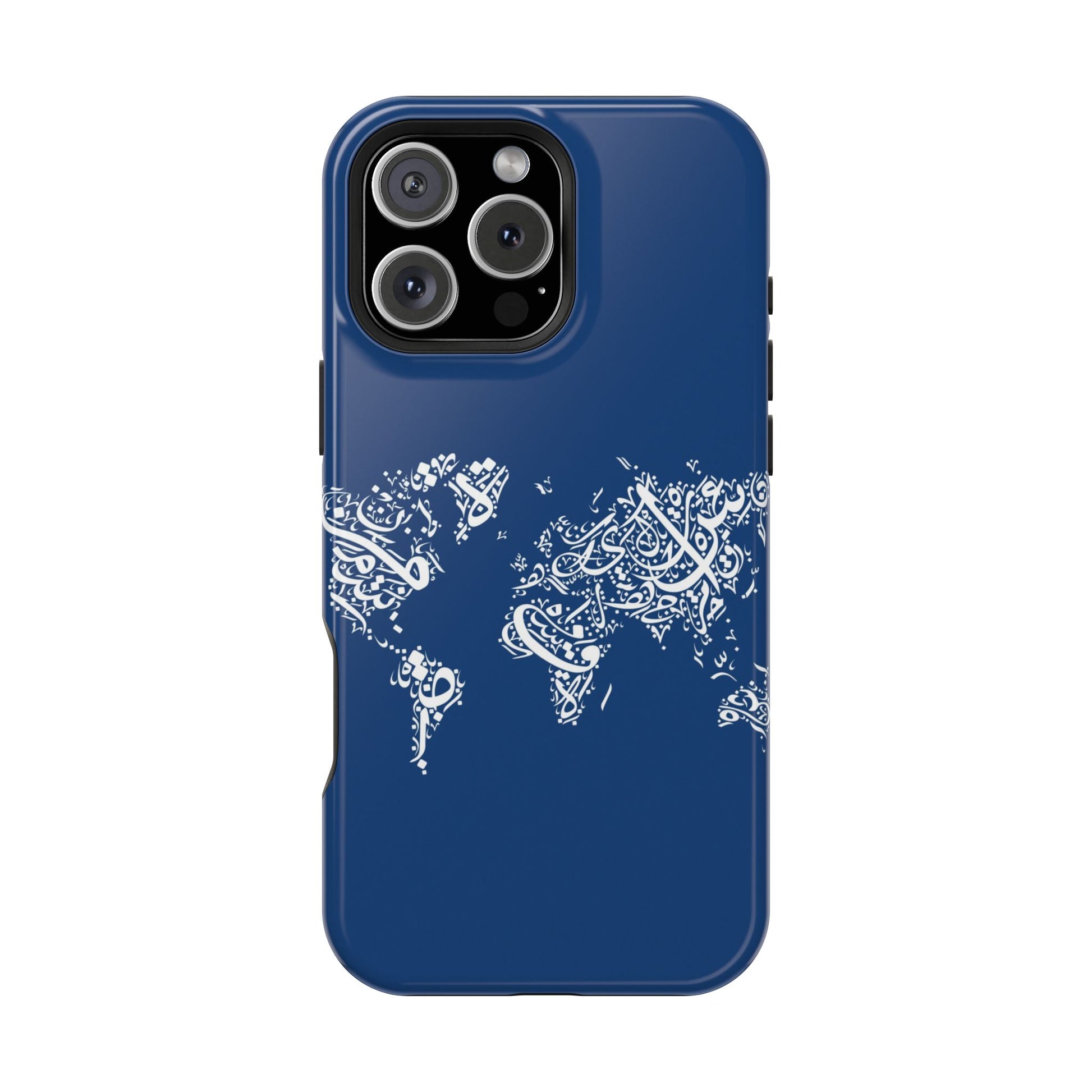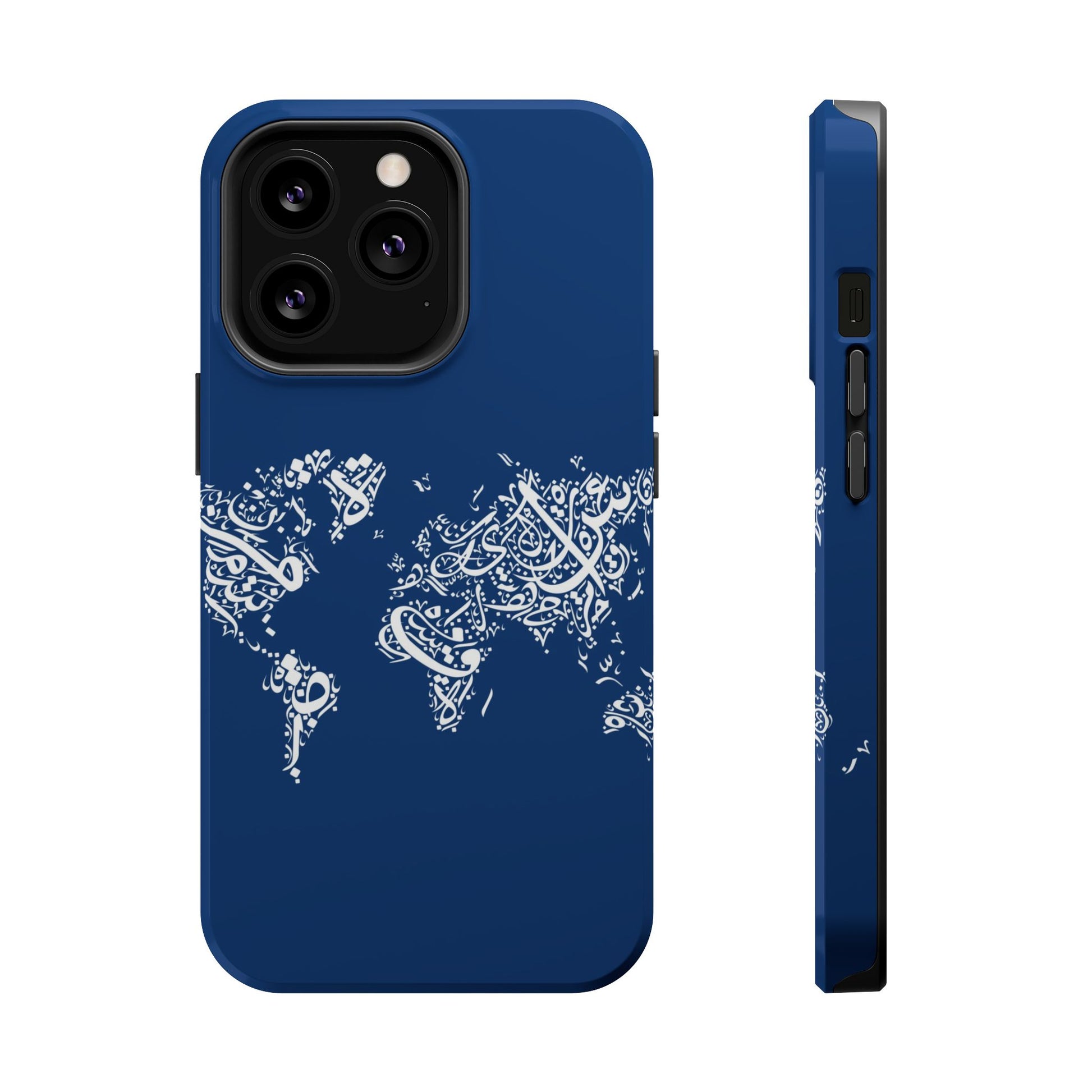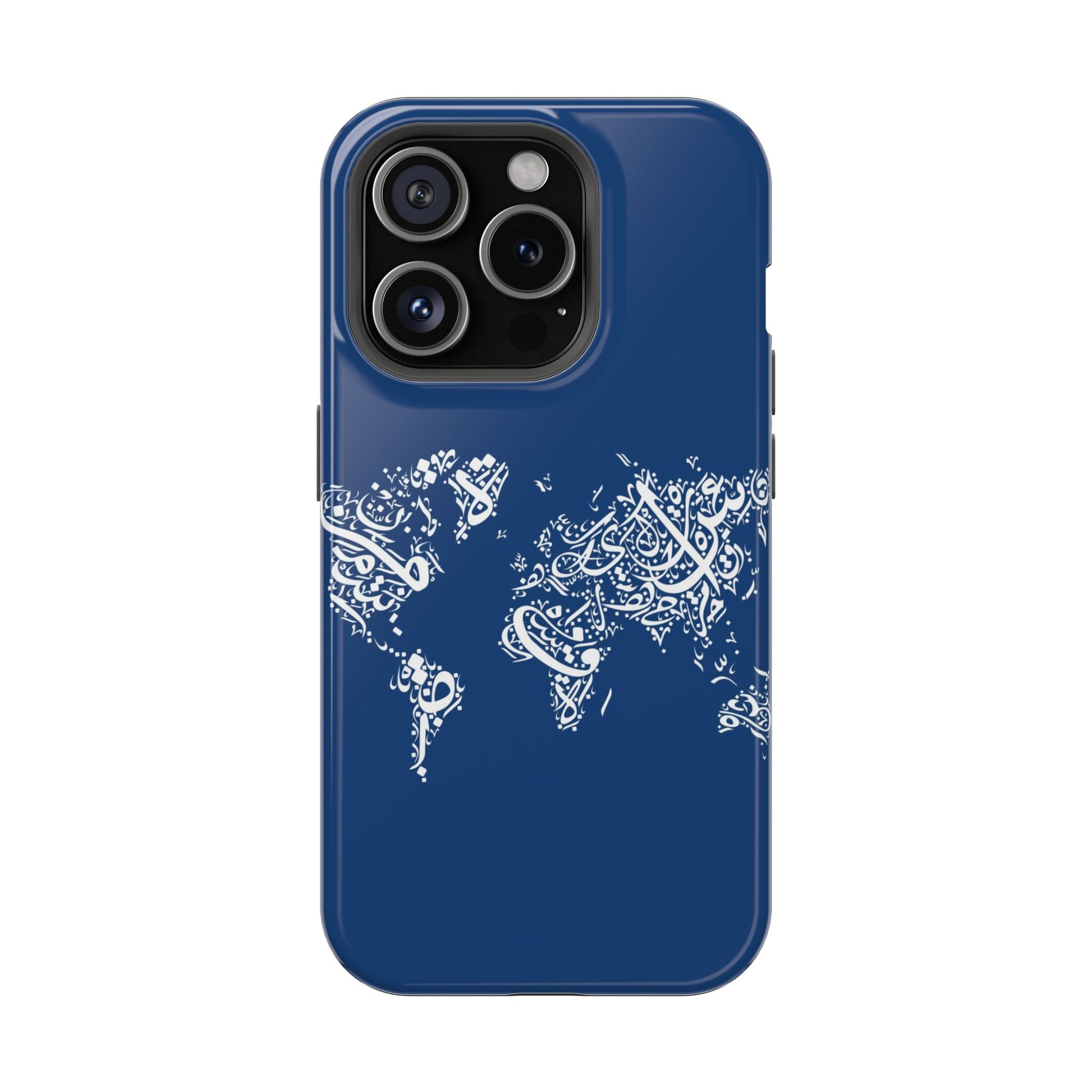 Arabic World 🌎 magnetic phone case. Equipped with an outer polycarbonate shell and inner black TPU lining, this case delivers robust protection thanks to its durable, flexible, impact-resistant nature. Available in a matte or glossy finish, each case comes with an embedded magnet module that is compatible with MagSafe® accessories and a stunning print that fully wraps around your case's exterior.
