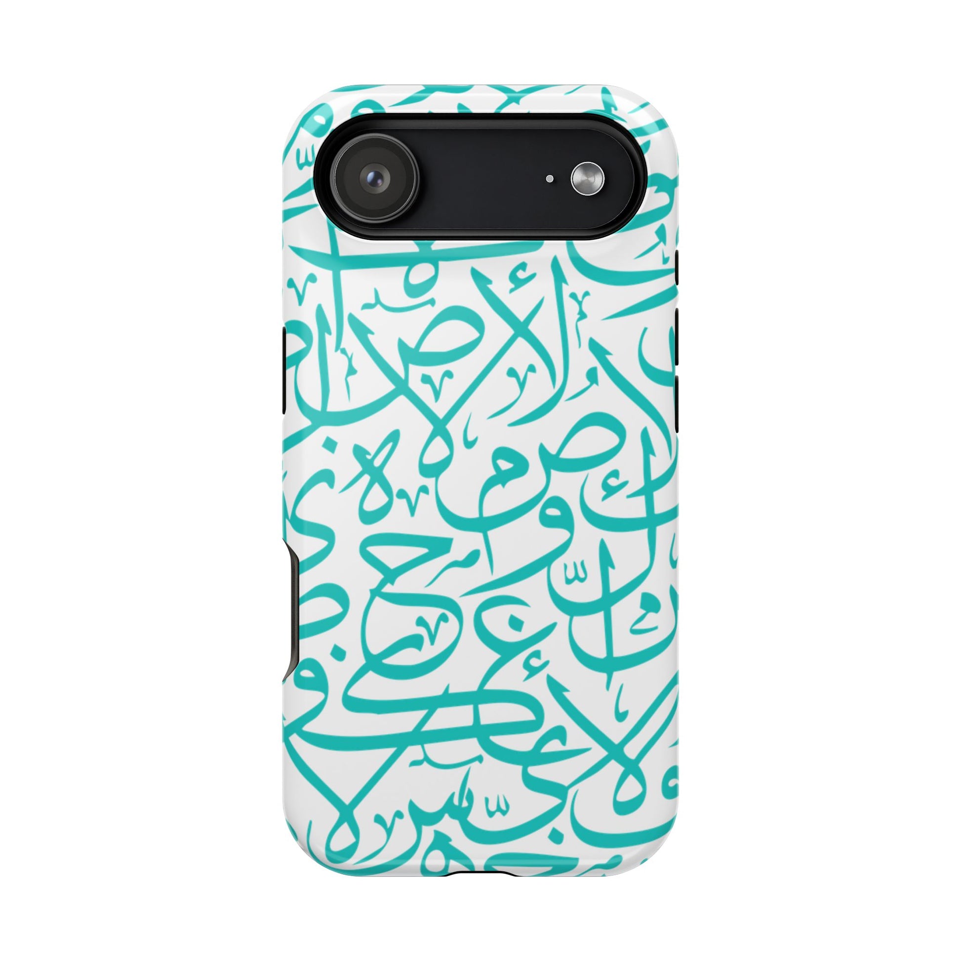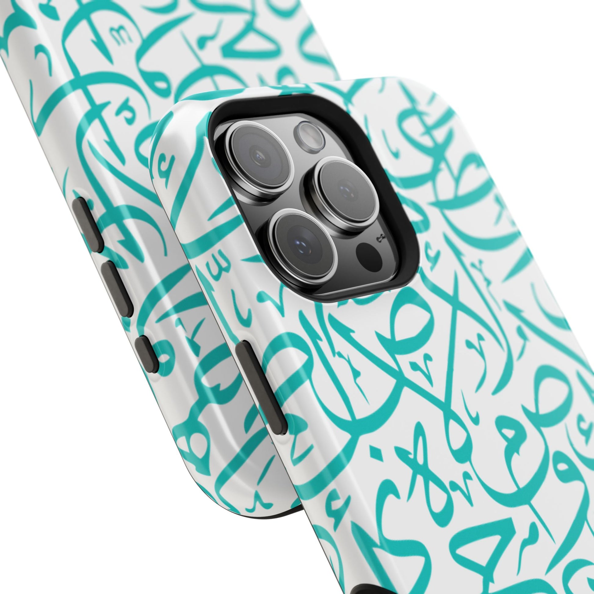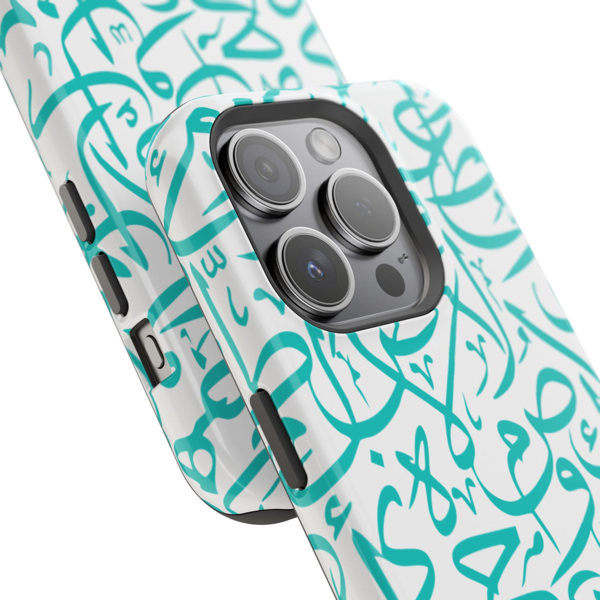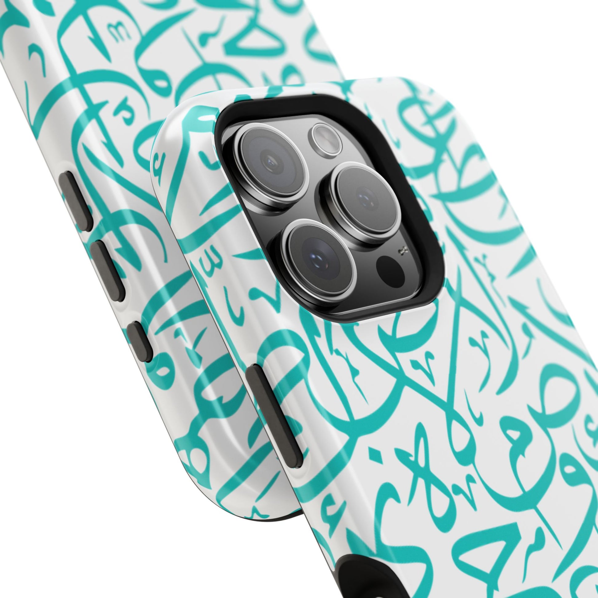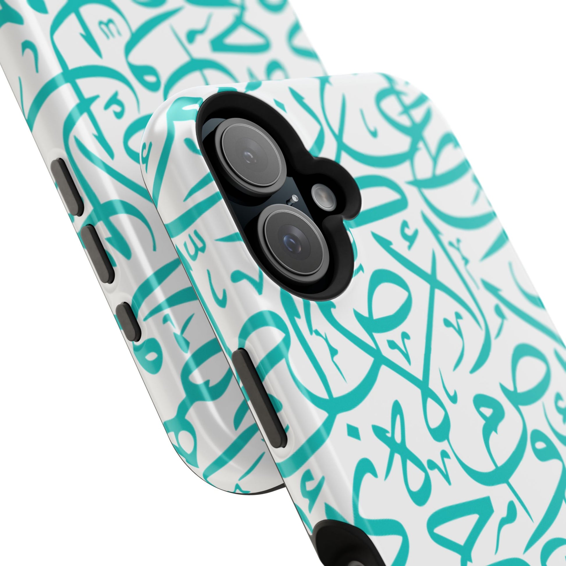 Arabic letters magnetic tough case is is to remind you of your identity. Equipped with an outer polycarbonate shell and inner black TPU lining, this case delivers robust protection thanks to its durable, flexible, impact-resistant nature. Available in a matte or glossy finish, each case comes with an embedded magnet module that is compatible with MagSafe® accessories and a stunning print that fully wraps around your case's exterior.