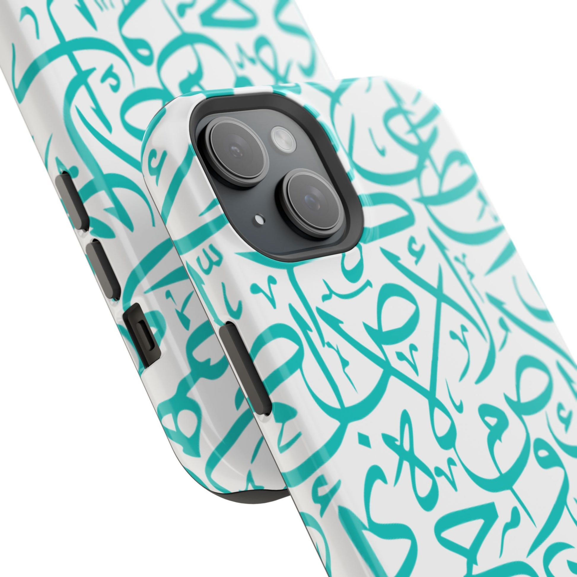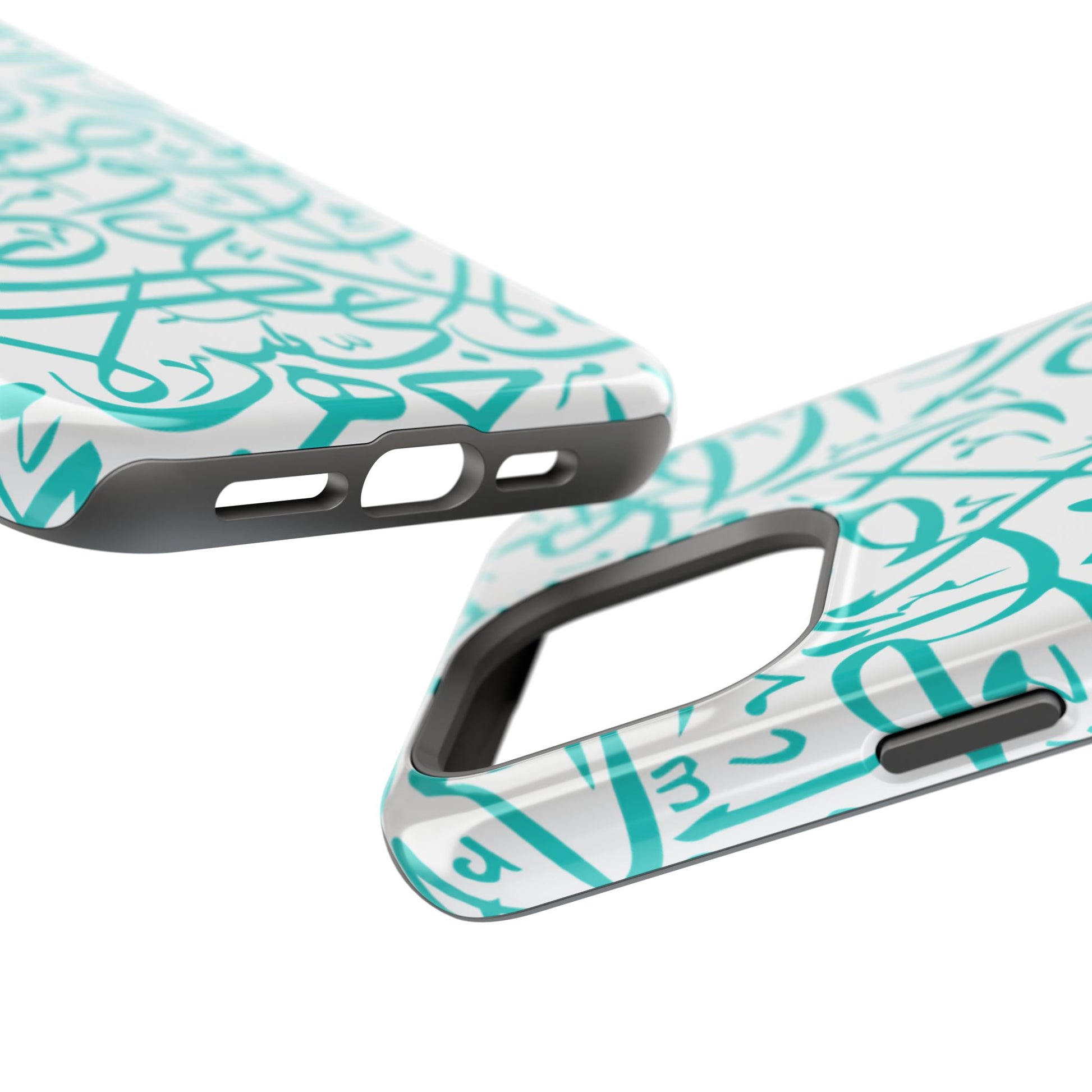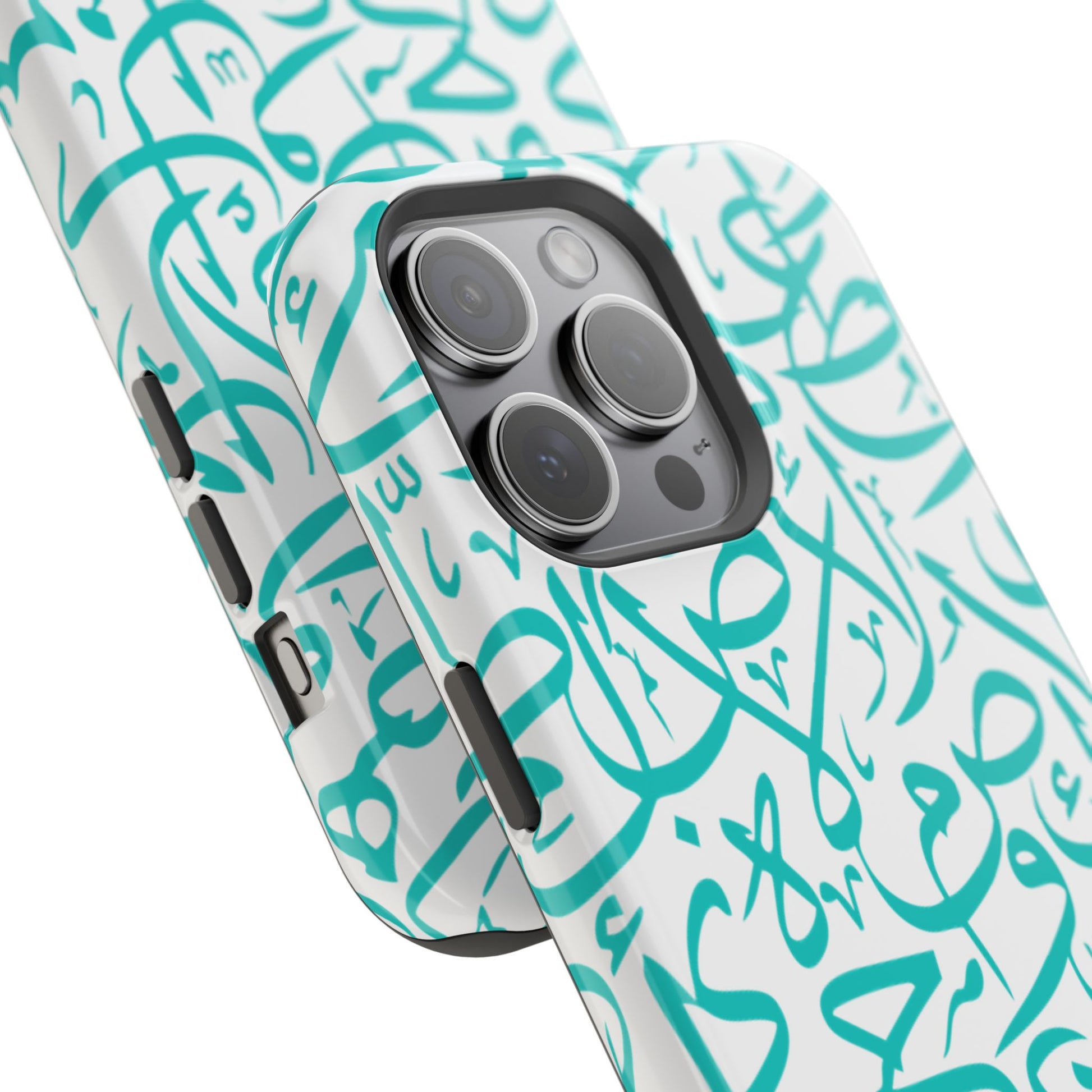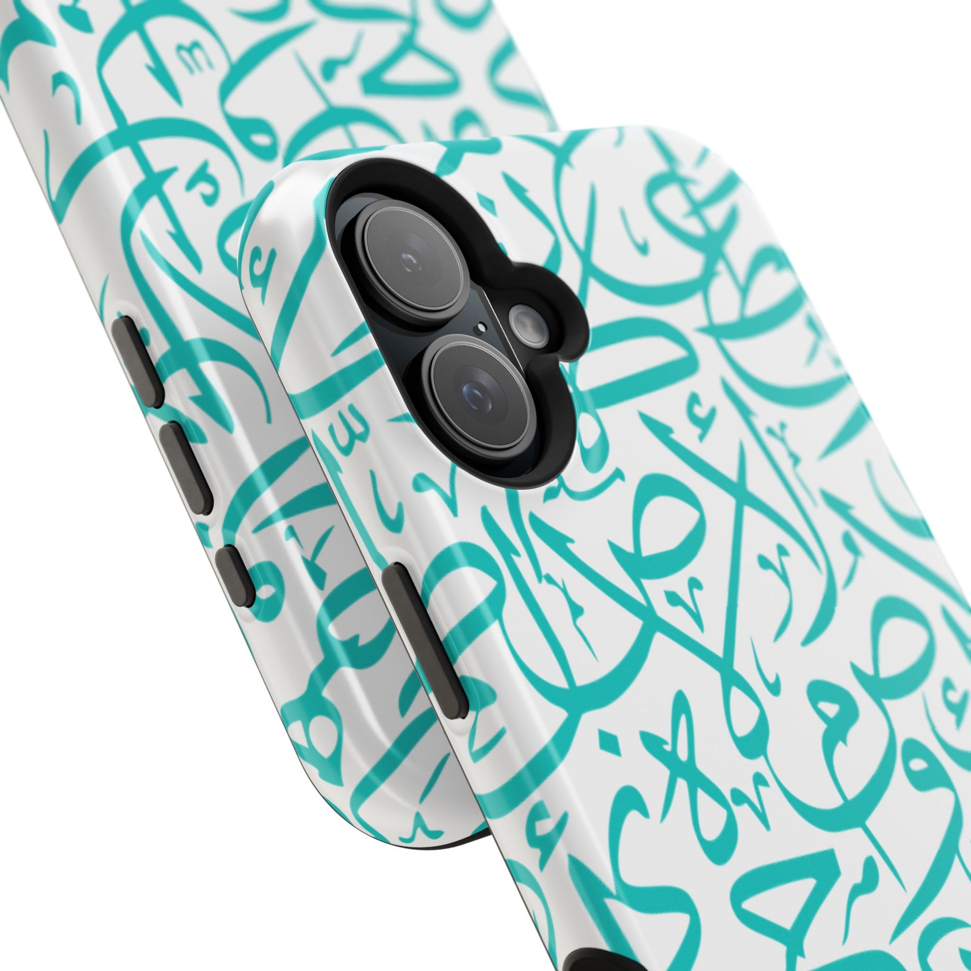 Arabic letters magnetic tough case is is to remind you of your identity. Equipped with an outer polycarbonate shell and inner black TPU lining, this case delivers robust protection thanks to its durable, flexible, impact-resistant nature. Available in a matte or glossy finish, each case comes with an embedded magnet module that is compatible with MagSafe® accessories and a stunning print that fully wraps around your case's exterior.