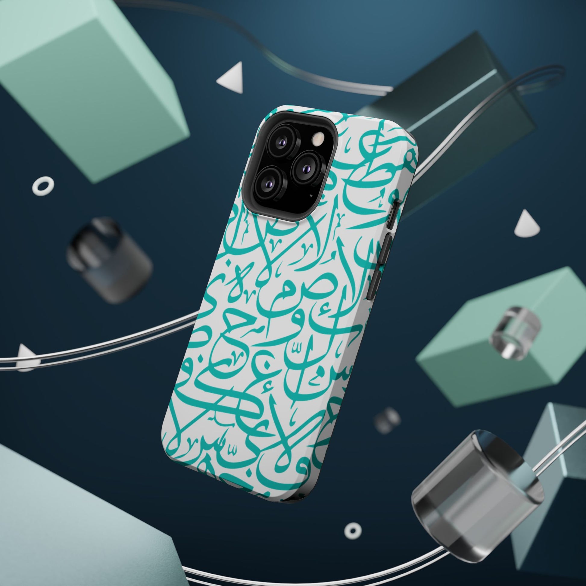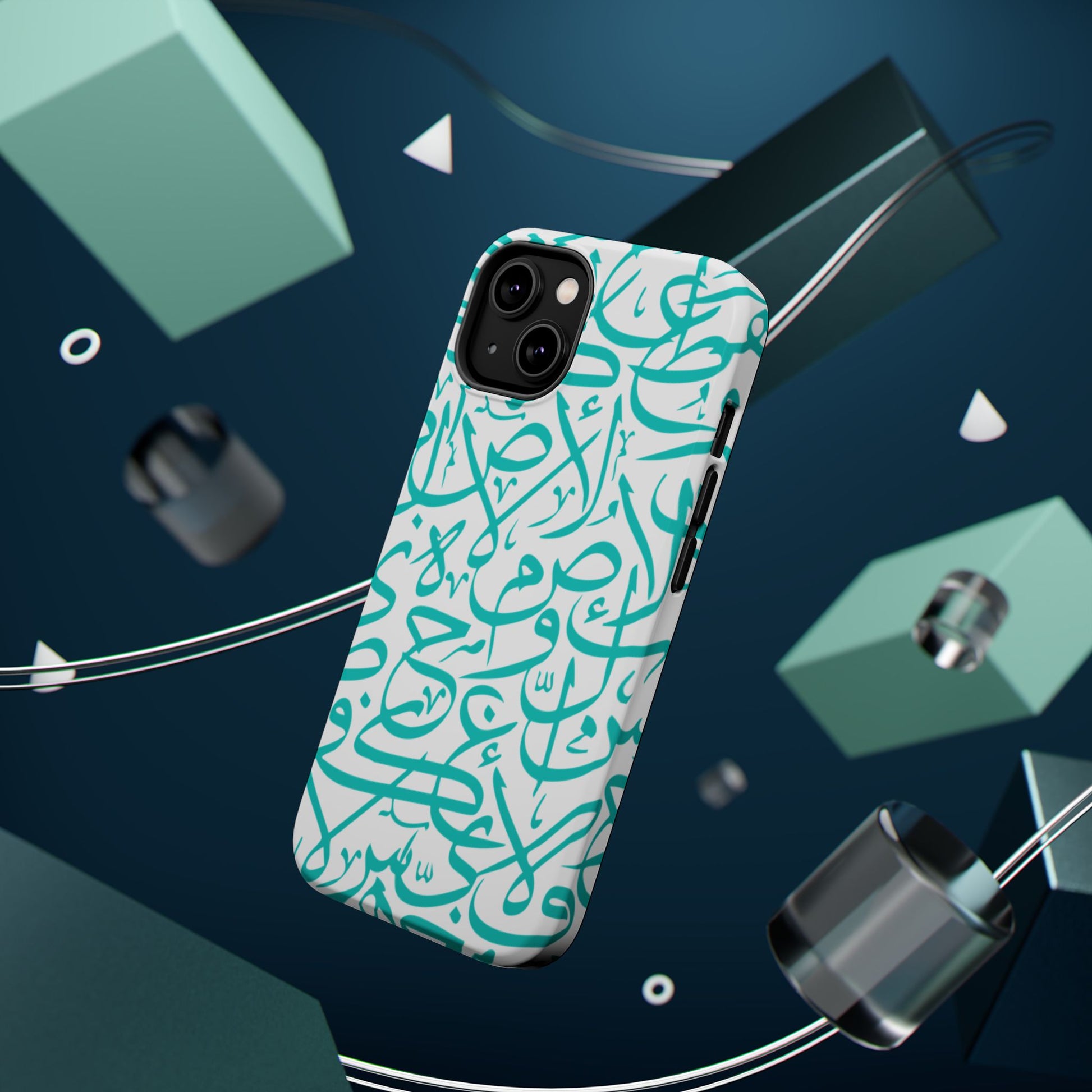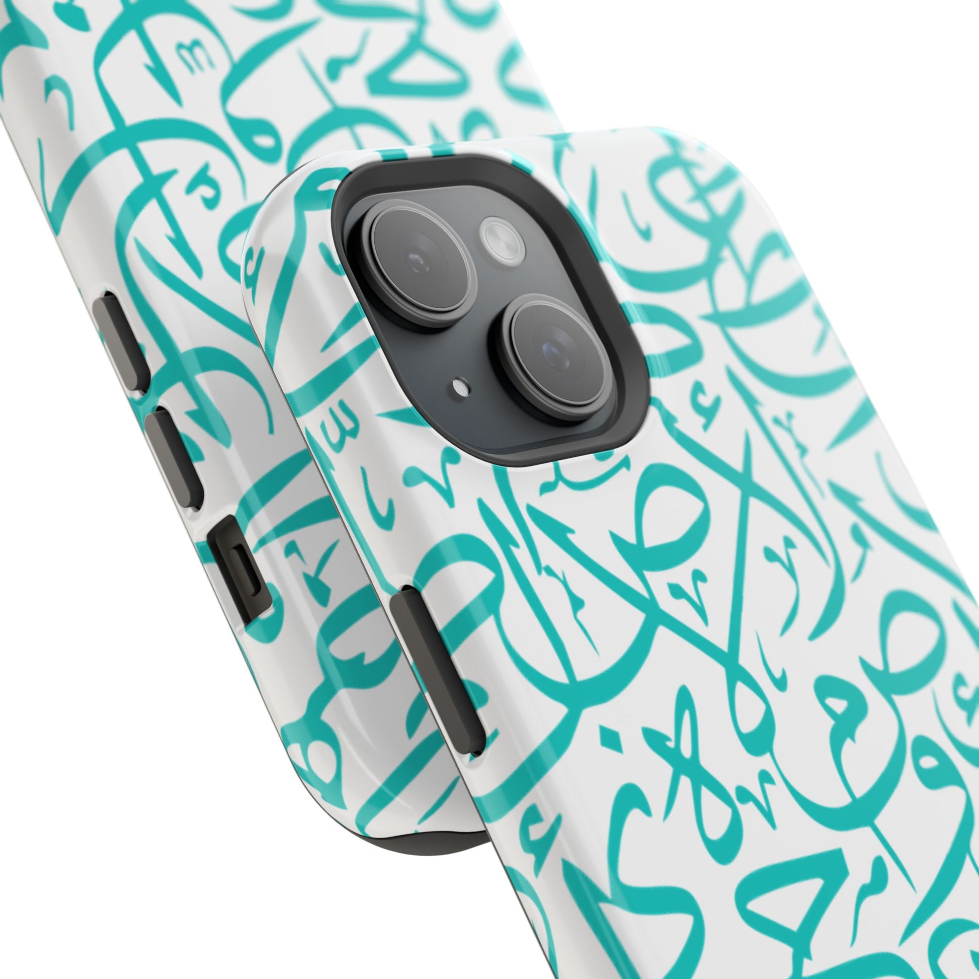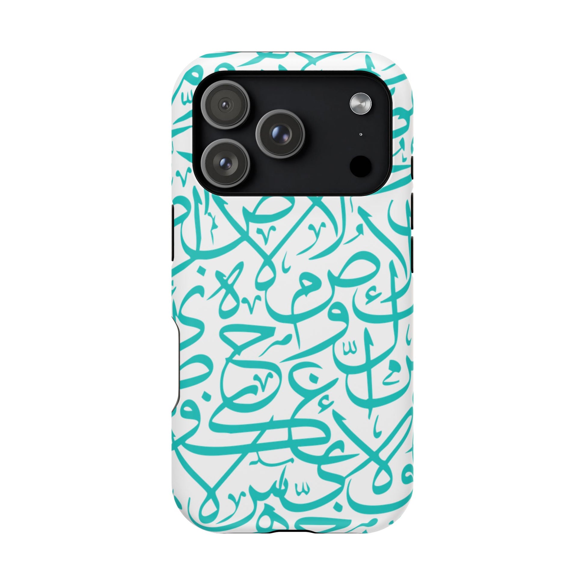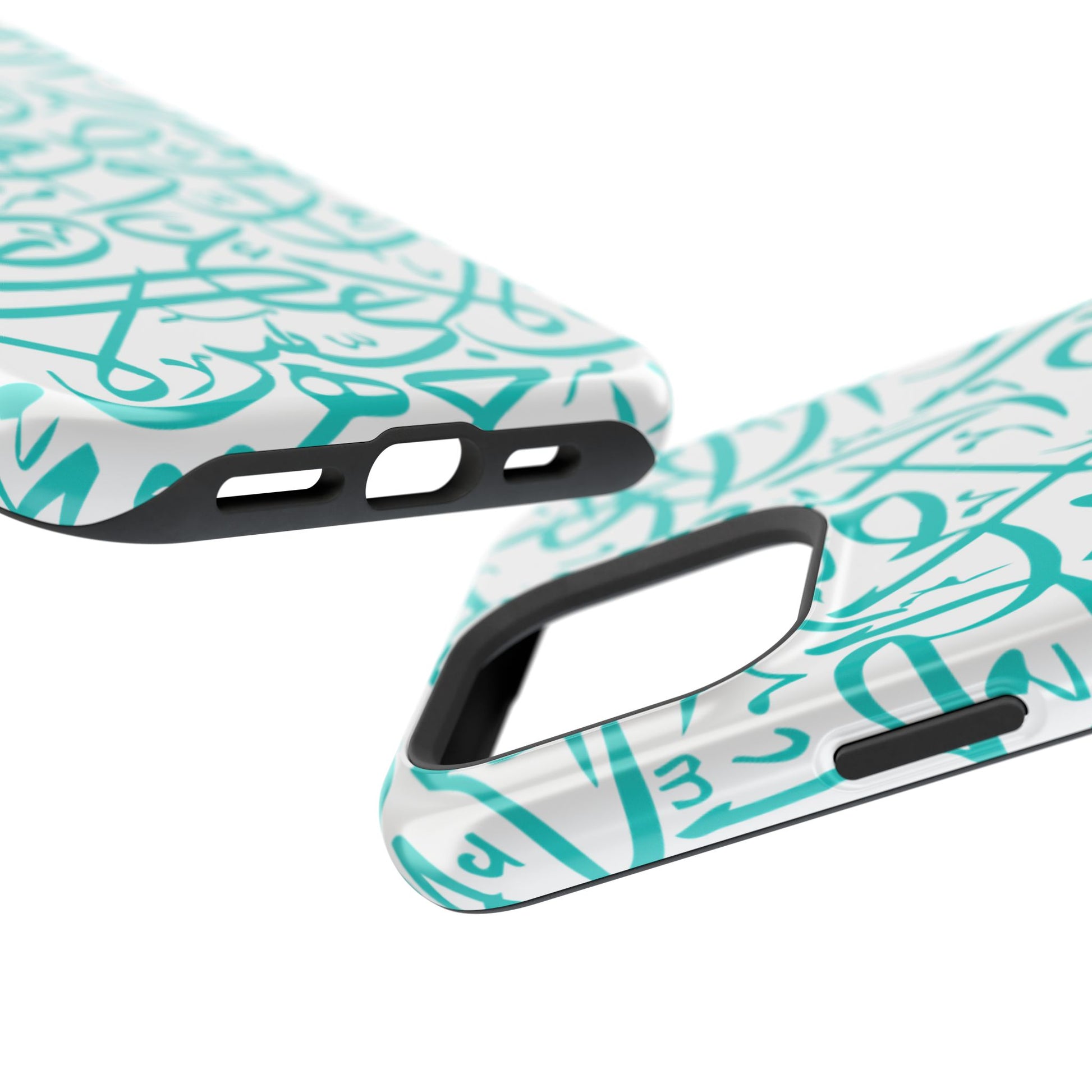 Arabic letters magnetic tough case is is to remind you of your identity. Equipped with an outer polycarbonate shell and inner black TPU lining, this case delivers robust protection thanks to its durable, flexible, impact-resistant nature. Available in a matte or glossy finish, each case comes with an embedded magnet module that is compatible with MagSafe® accessories and a stunning print that fully wraps around your case's exterior.