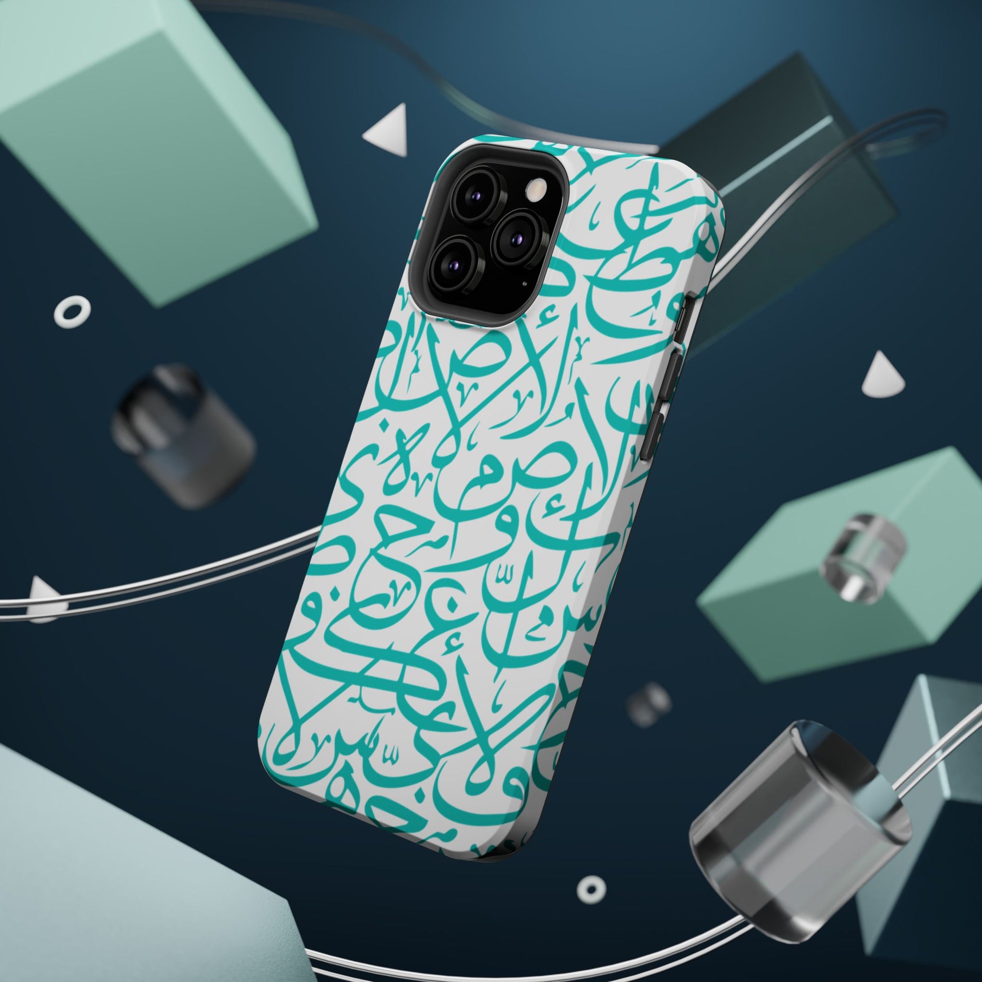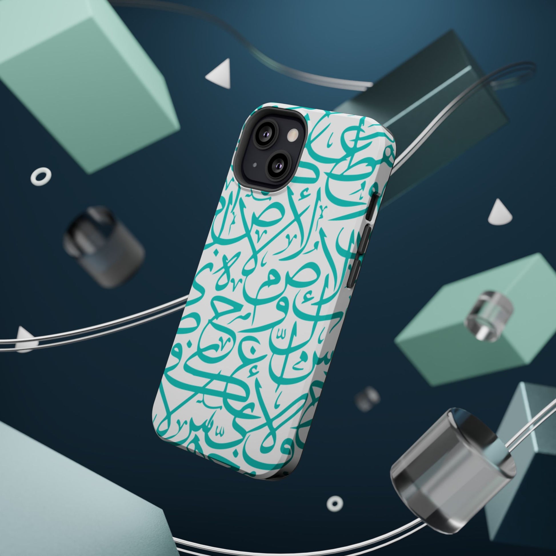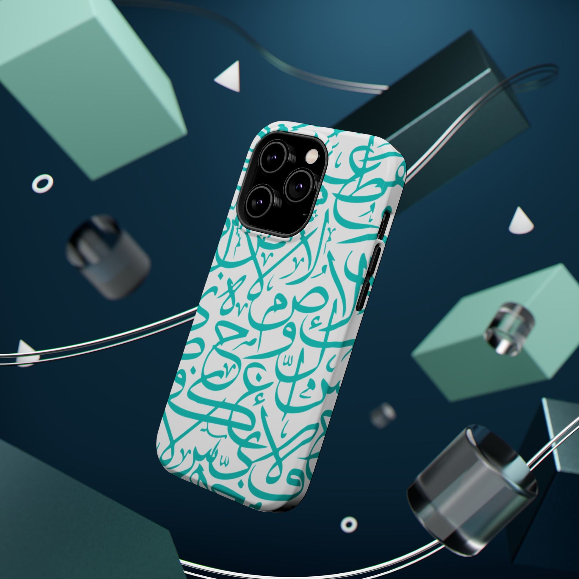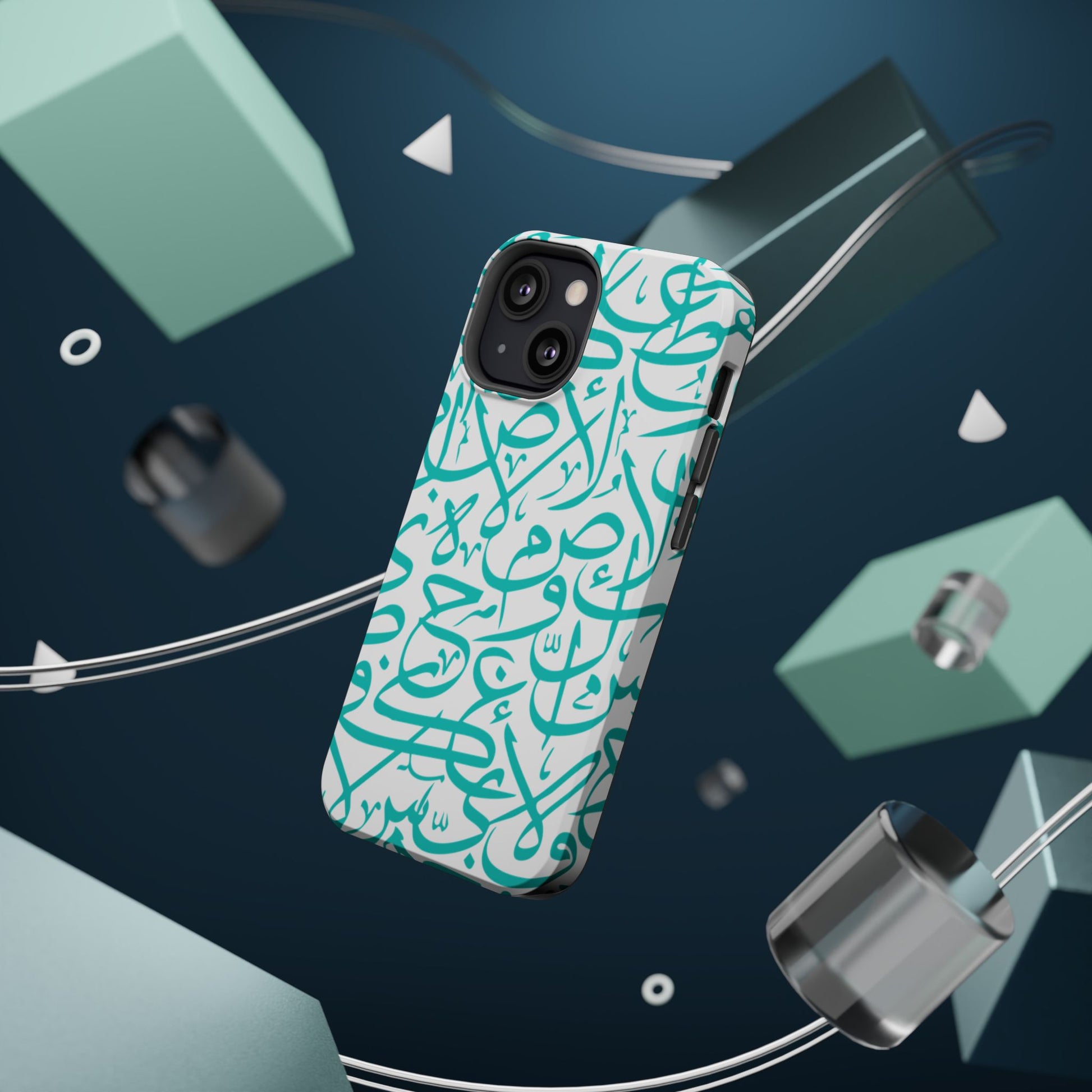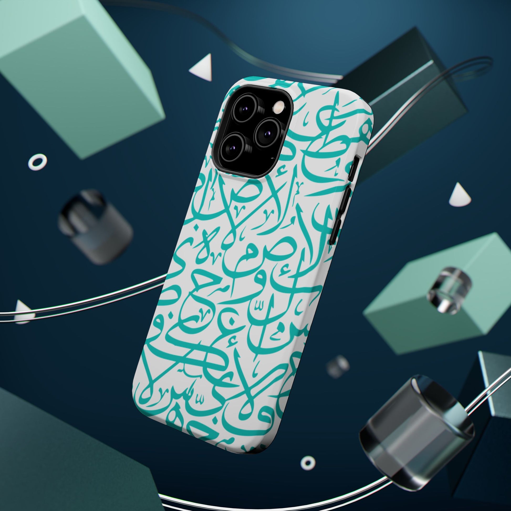 Arabic letters magnetic tough case is is to remind you of your identity. Equipped with an outer polycarbonate shell and inner black TPU lining, this case delivers robust protection thanks to its durable, flexible, impact-resistant nature. Available in a matte or glossy finish, each case comes with an embedded magnet module that is compatible with MagSafe® accessories and a stunning print that fully wraps around your case's exterior.