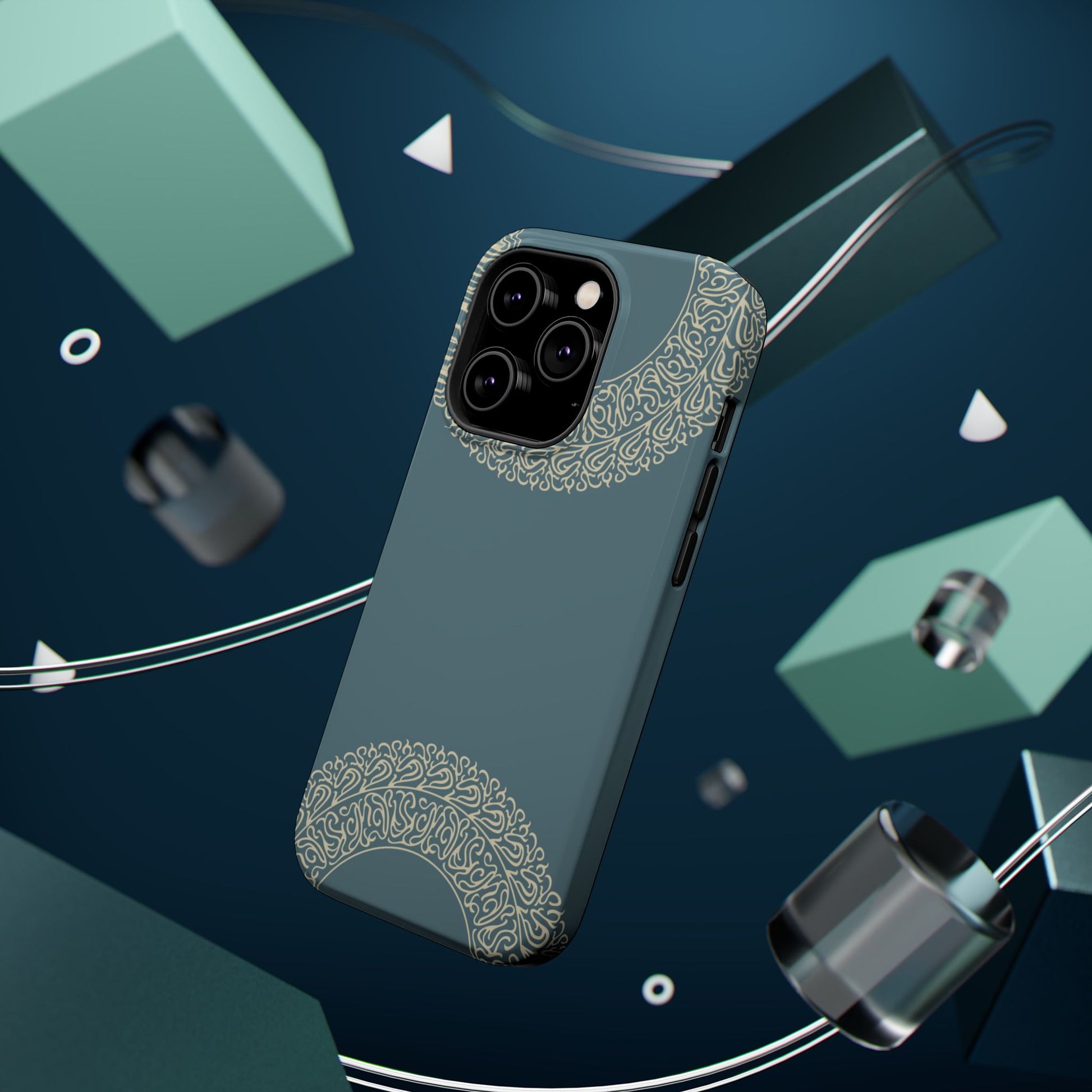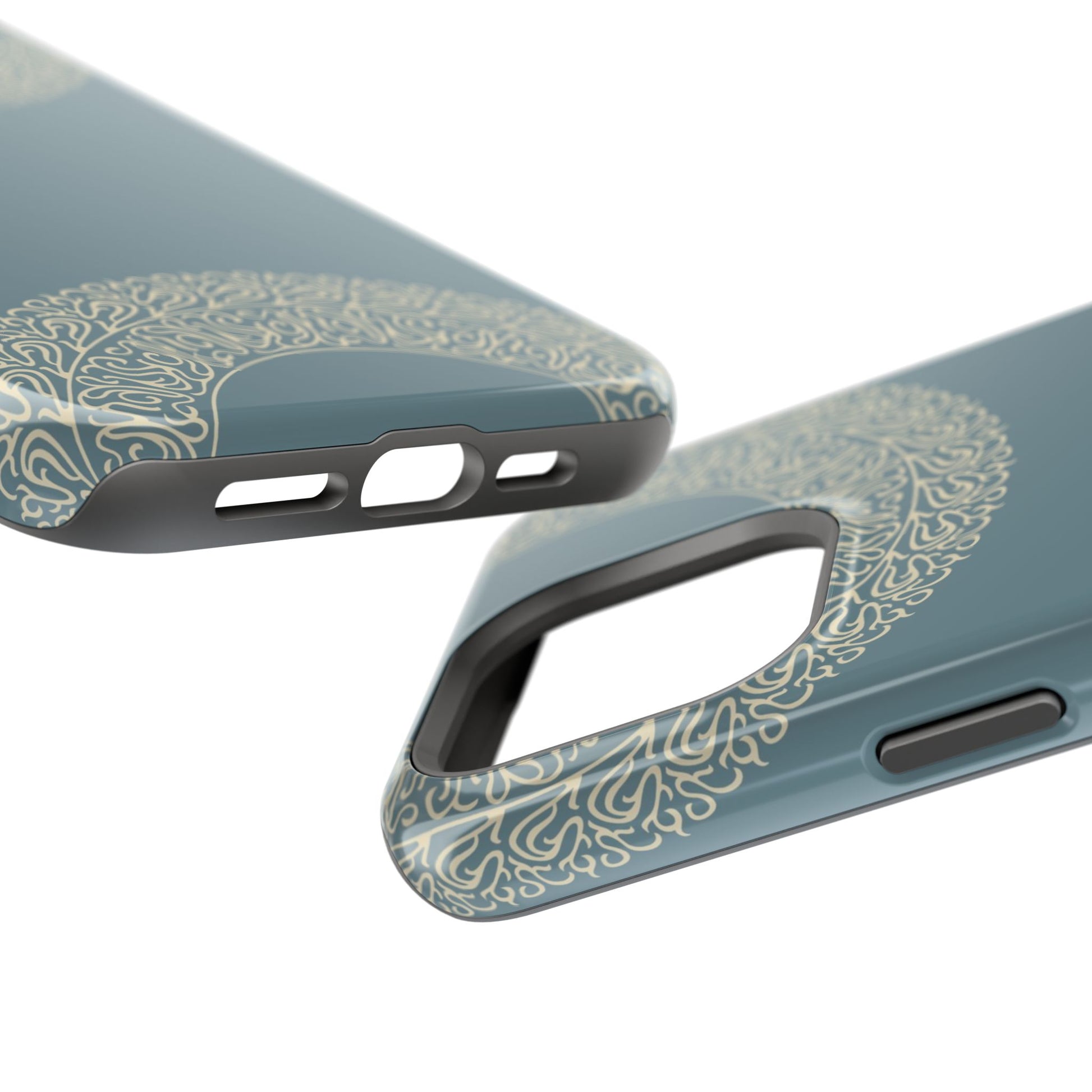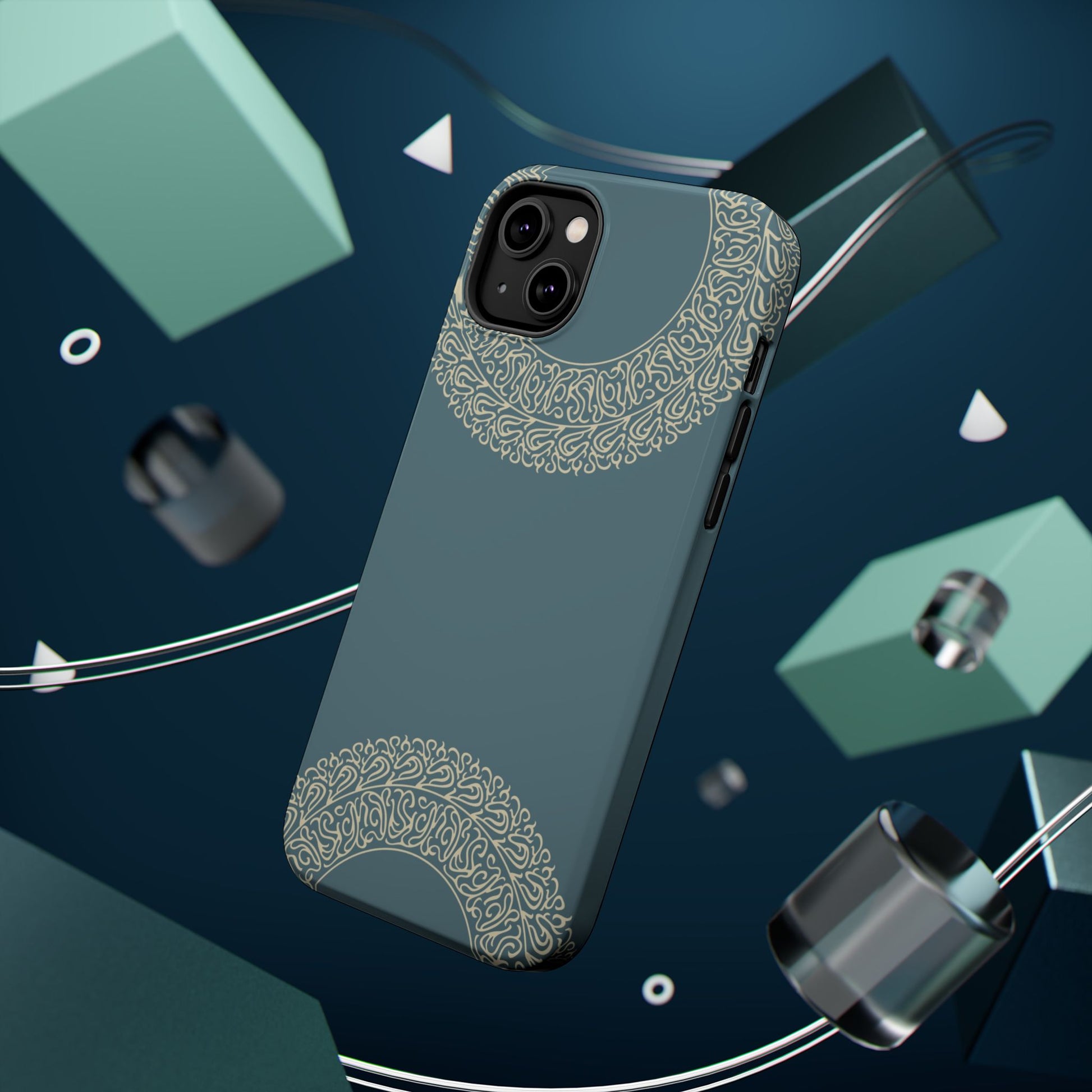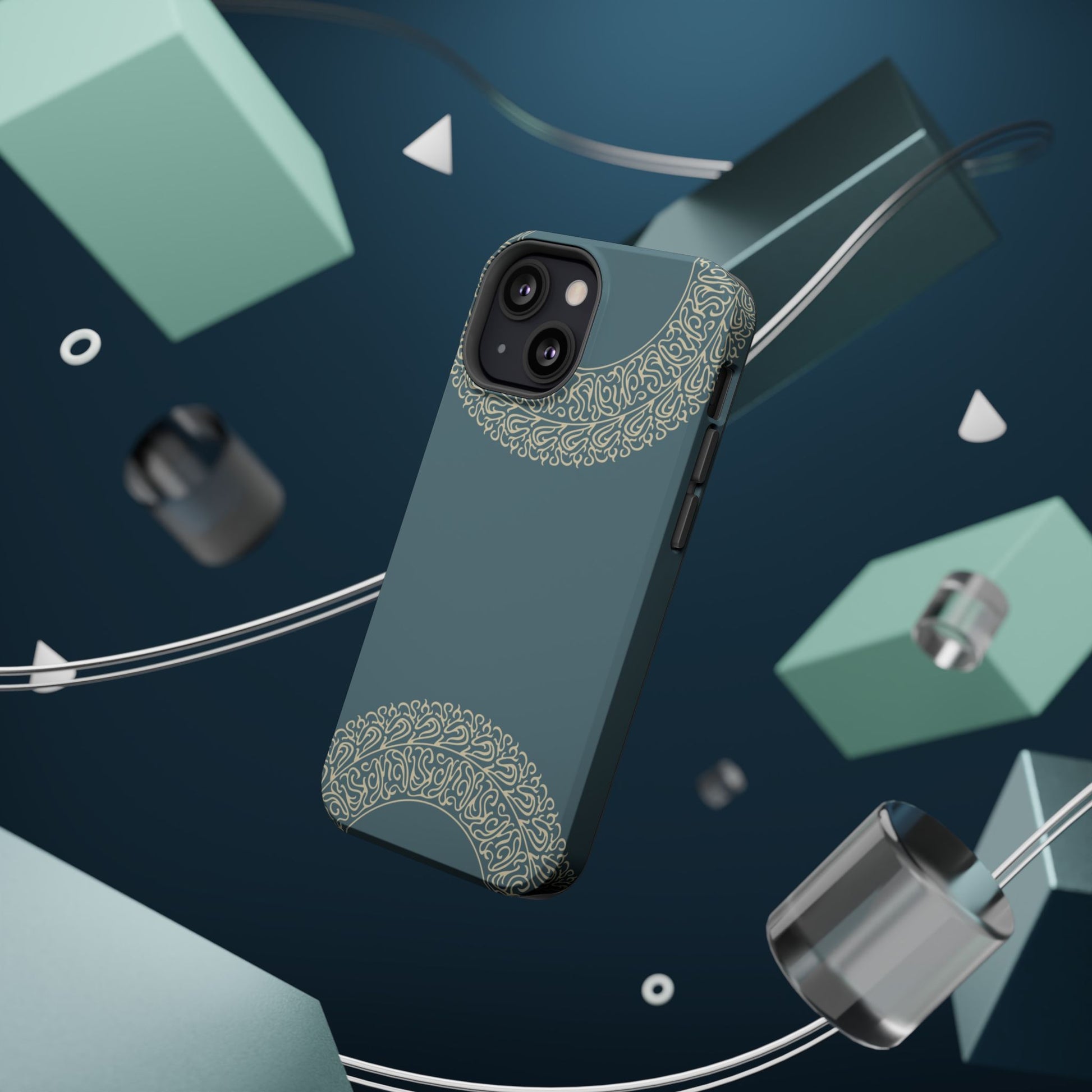 Magnetic phone case. Equipped with an outer polycarbonate shell and inner black TPU lining, this case delivers robust protection thanks to its durable, flexible, impact-resistant nature. Available in a matte or glossy finish, each case comes with an embedded magnet module that is compatible with MagSafe® accessories and a stunning print that fully wraps around your case's exterior.