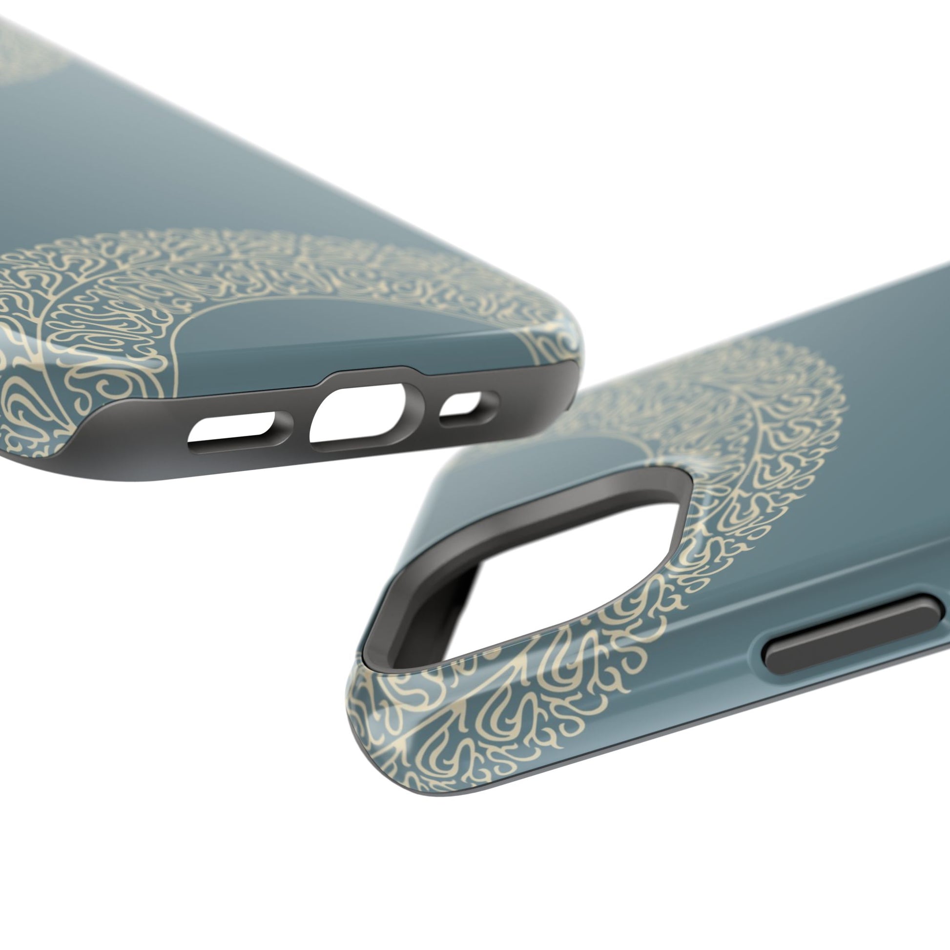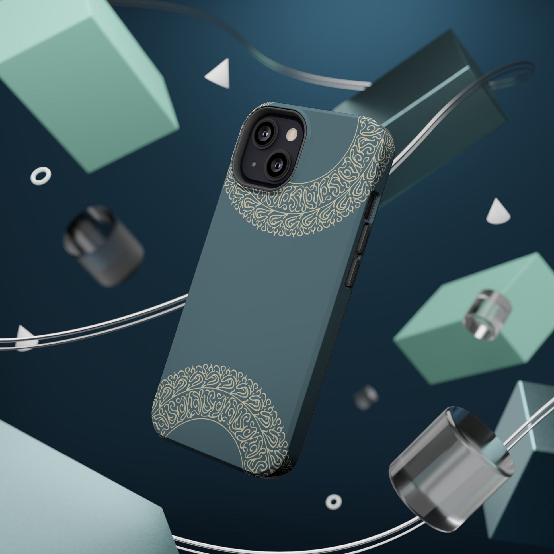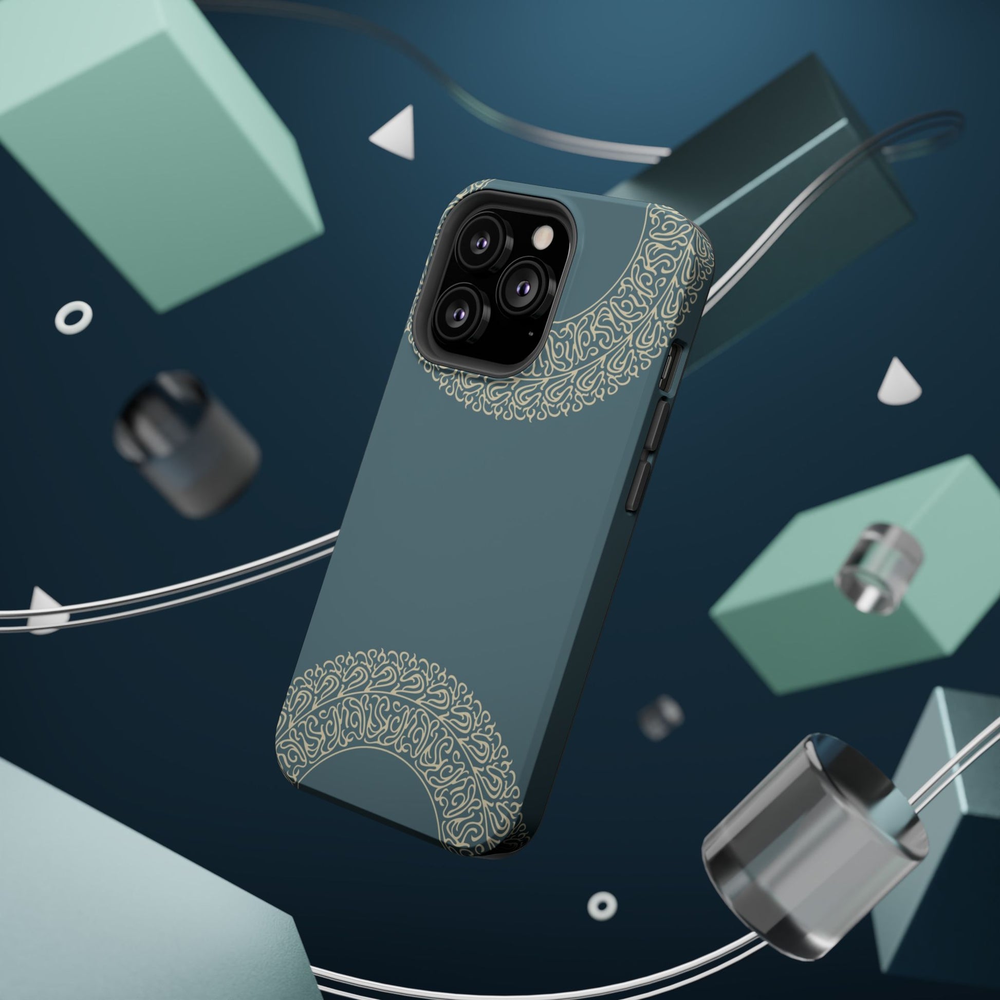 Magnetic phone case. Equipped with an outer polycarbonate shell and inner black TPU lining, this case delivers robust protection thanks to its durable, flexible, impact-resistant nature. Available in a matte or glossy finish, each case comes with an embedded magnet module that is compatible with MagSafe® accessories and a stunning print that fully wraps around your case's exterior.