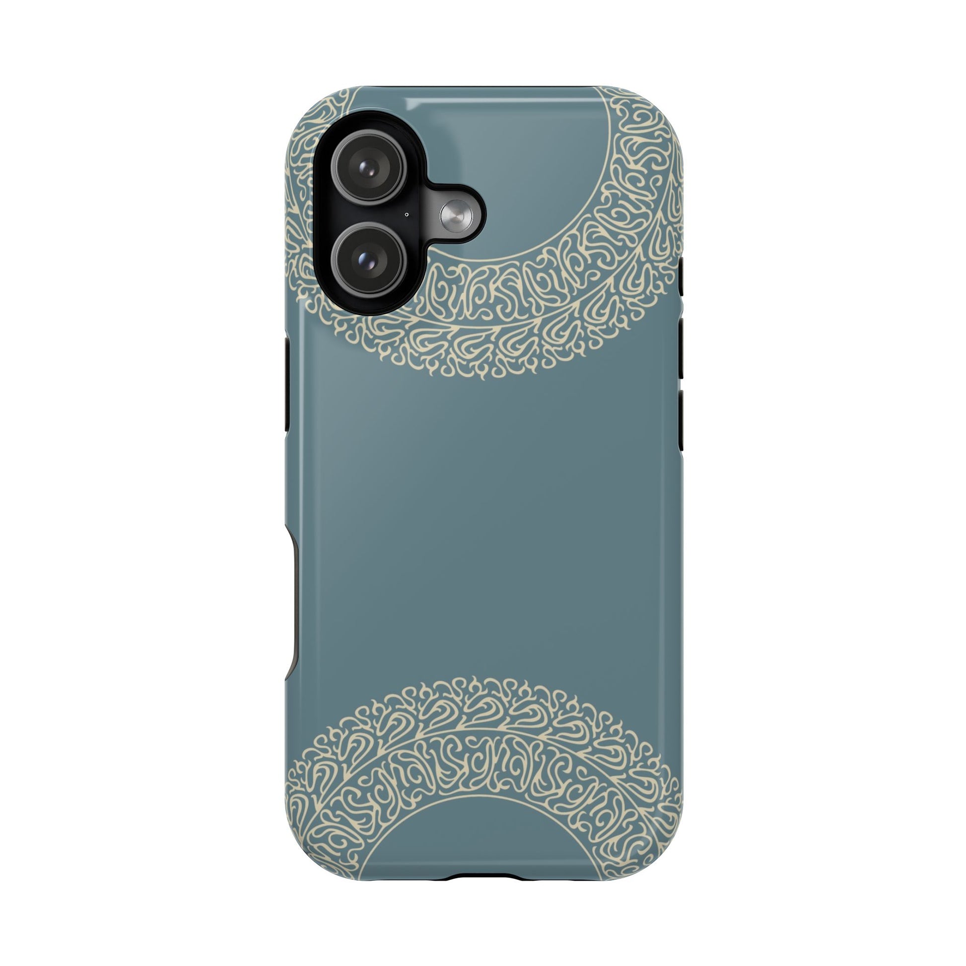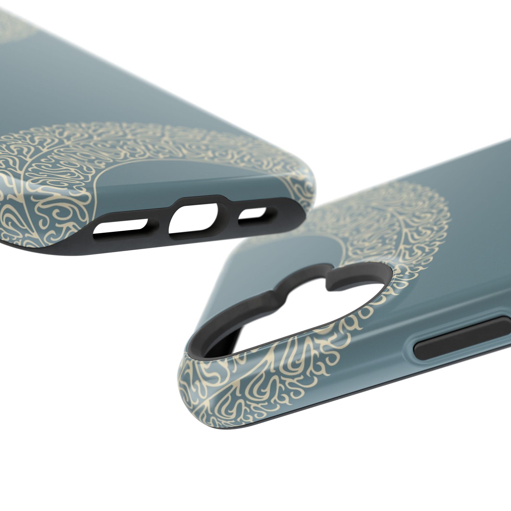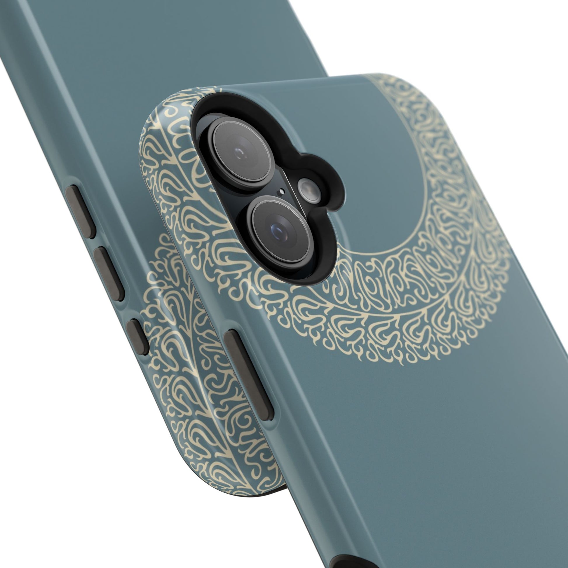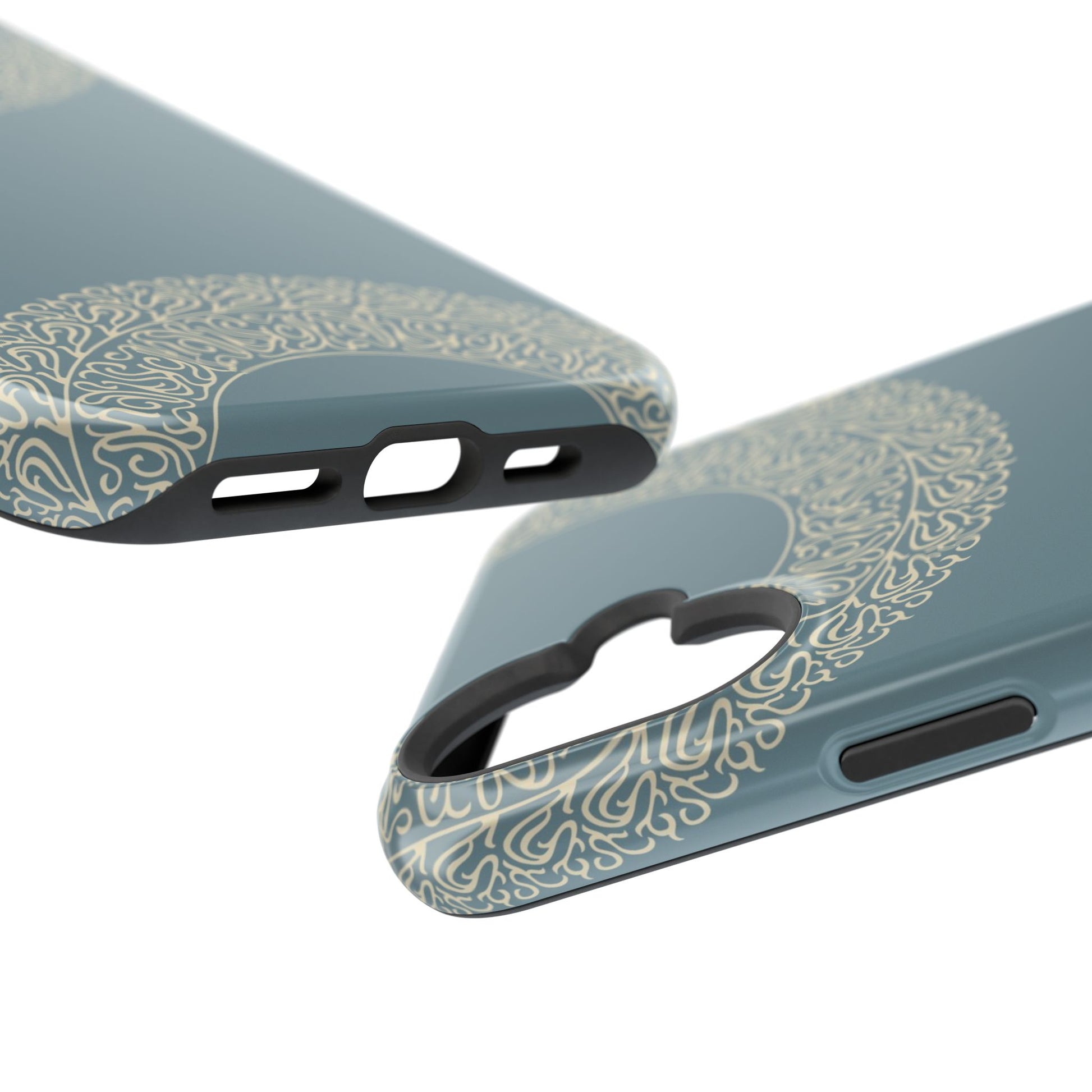 Magnetic phone case. Equipped with an outer polycarbonate shell and inner black TPU lining, this case delivers robust protection thanks to its durable, flexible, impact-resistant nature. Available in a matte or glossy finish, each case comes with an embedded magnet module that is compatible with MagSafe® accessories and a stunning print that fully wraps around your case's exterior.