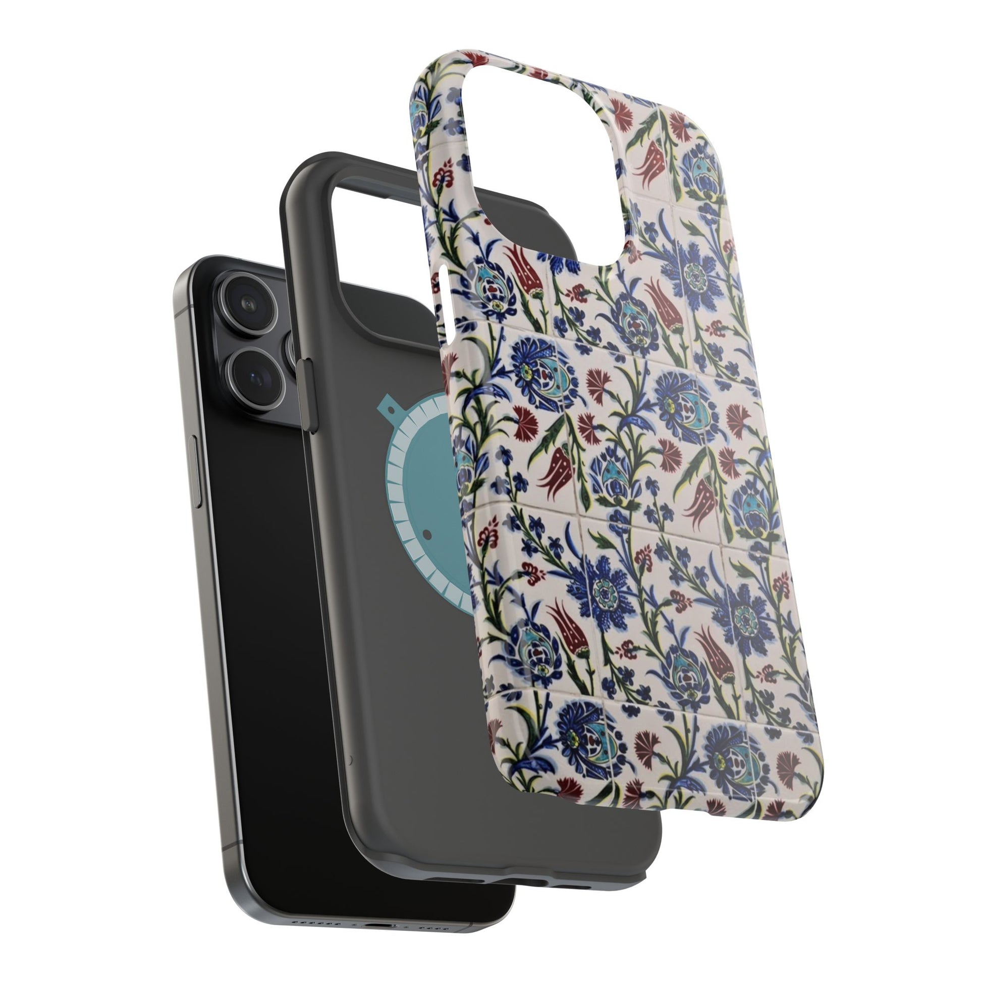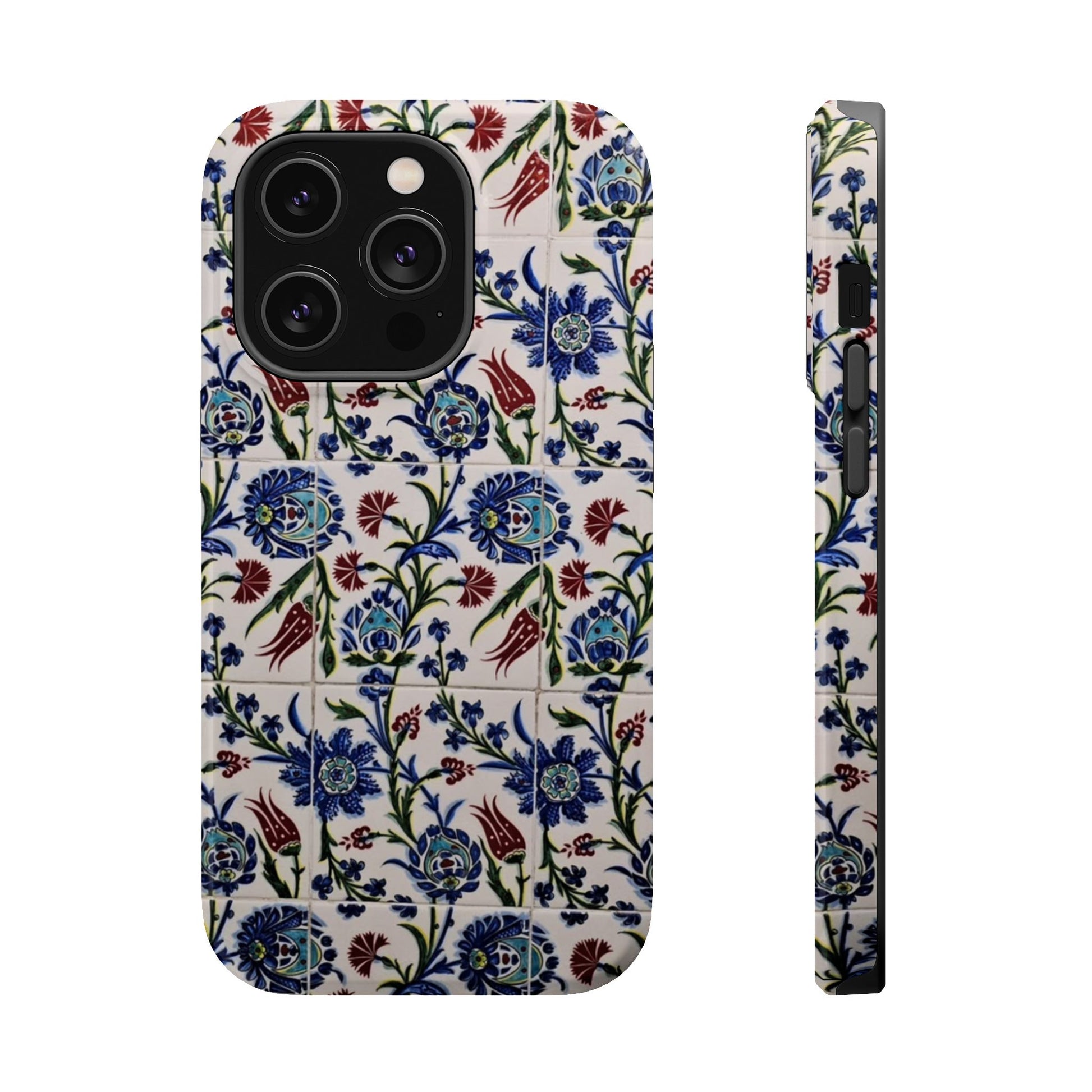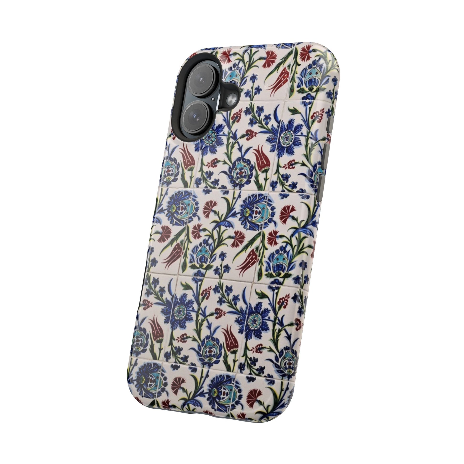 Blue ceramic Floral Design - Iphone Magnetic Tough Case