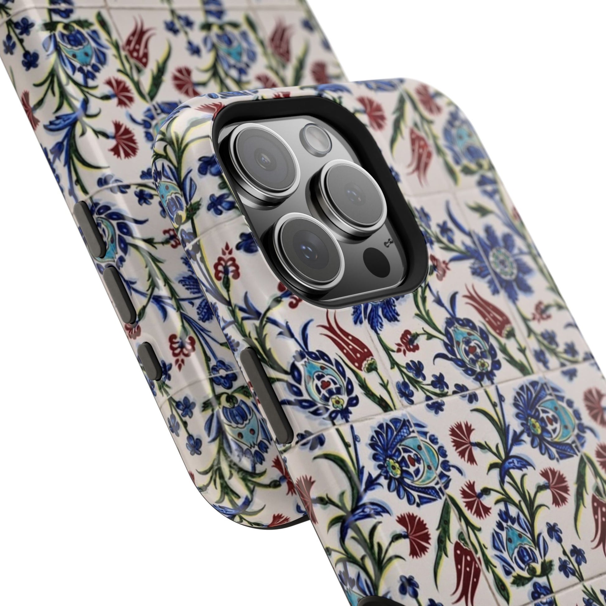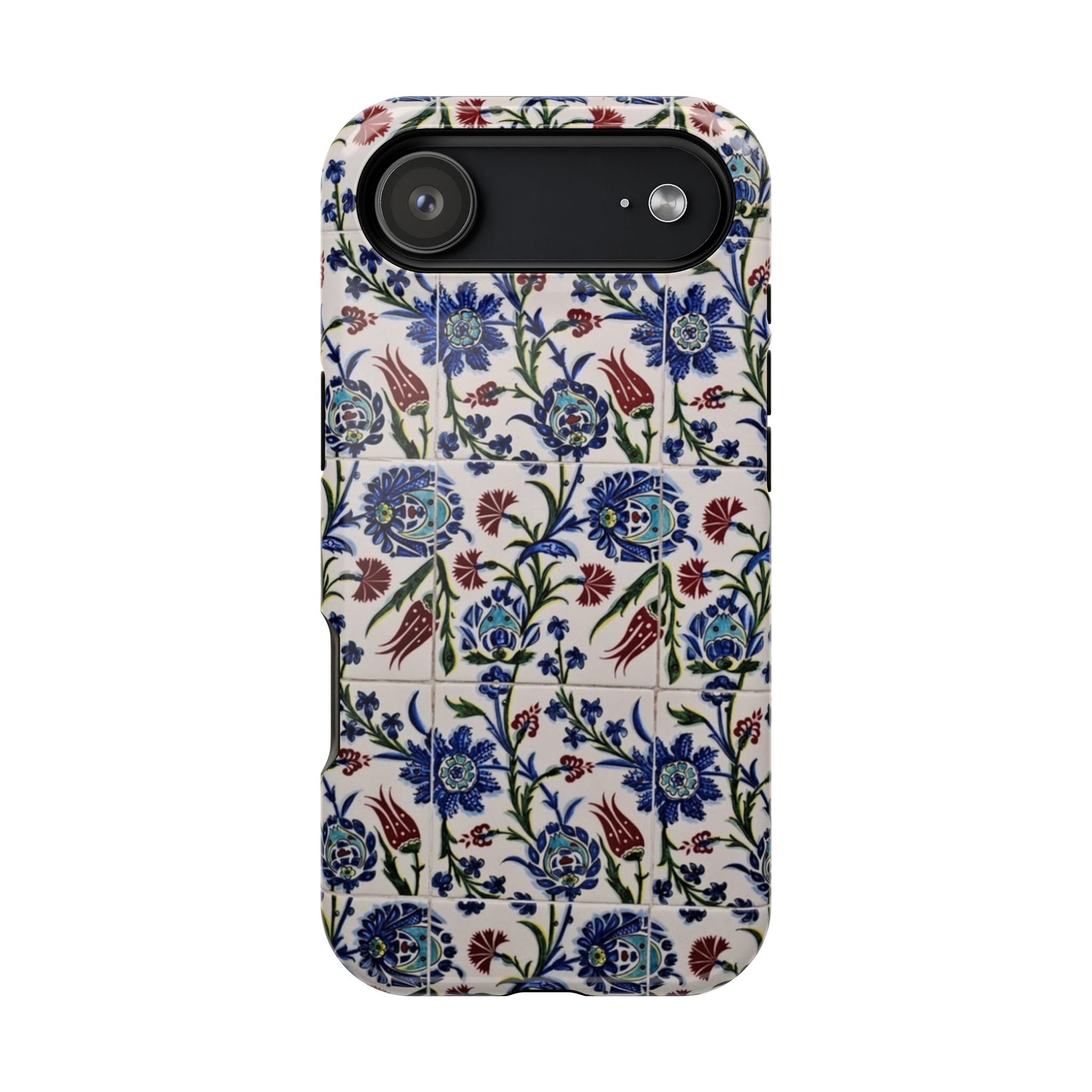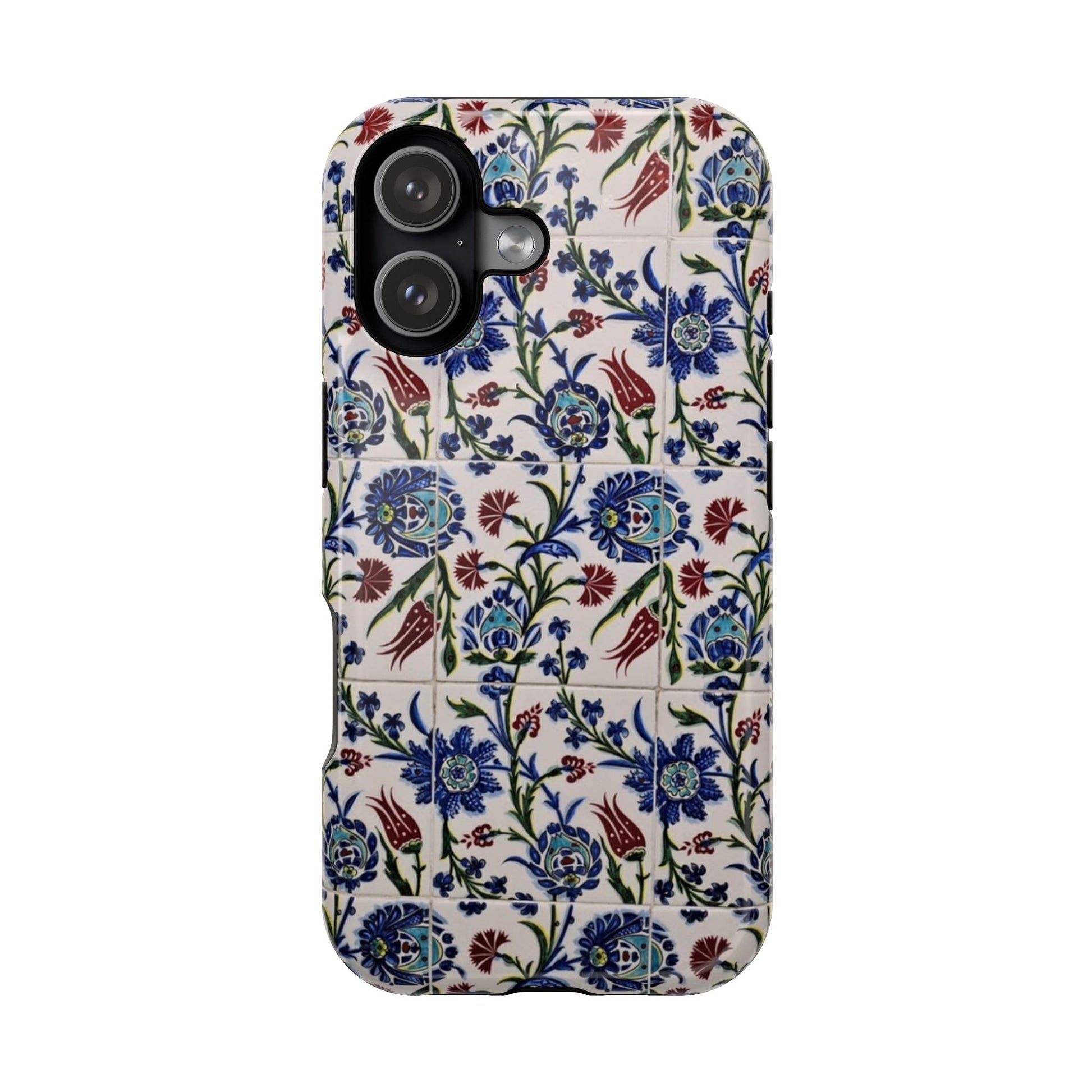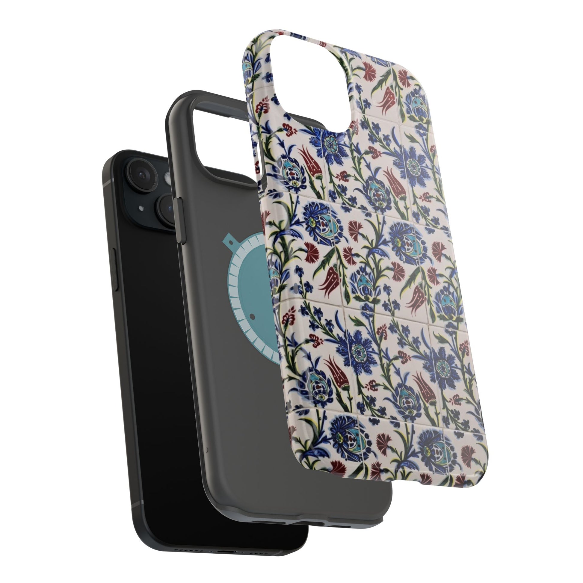 Blue ceramic Floral Design - Iphone Magnetic Tough Case