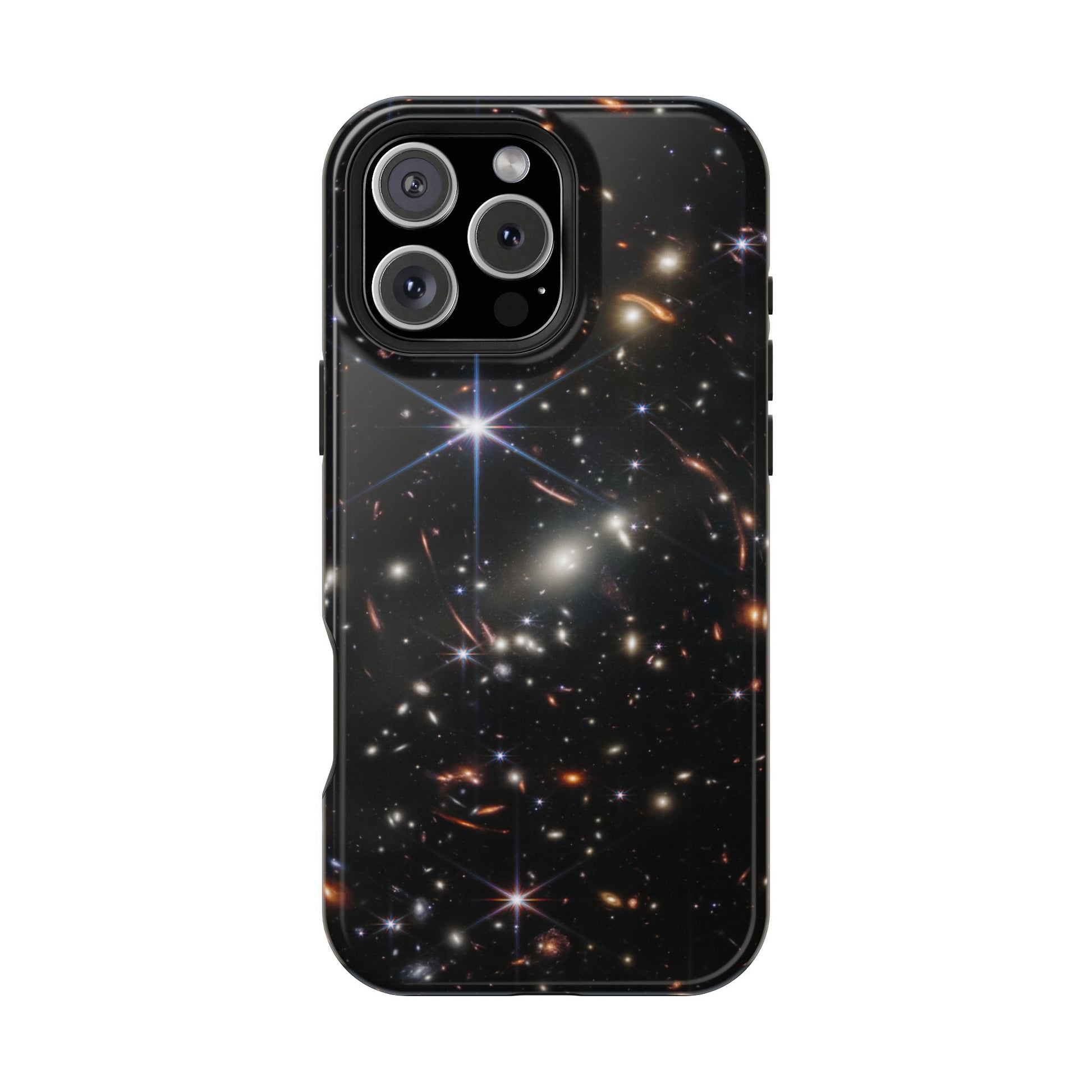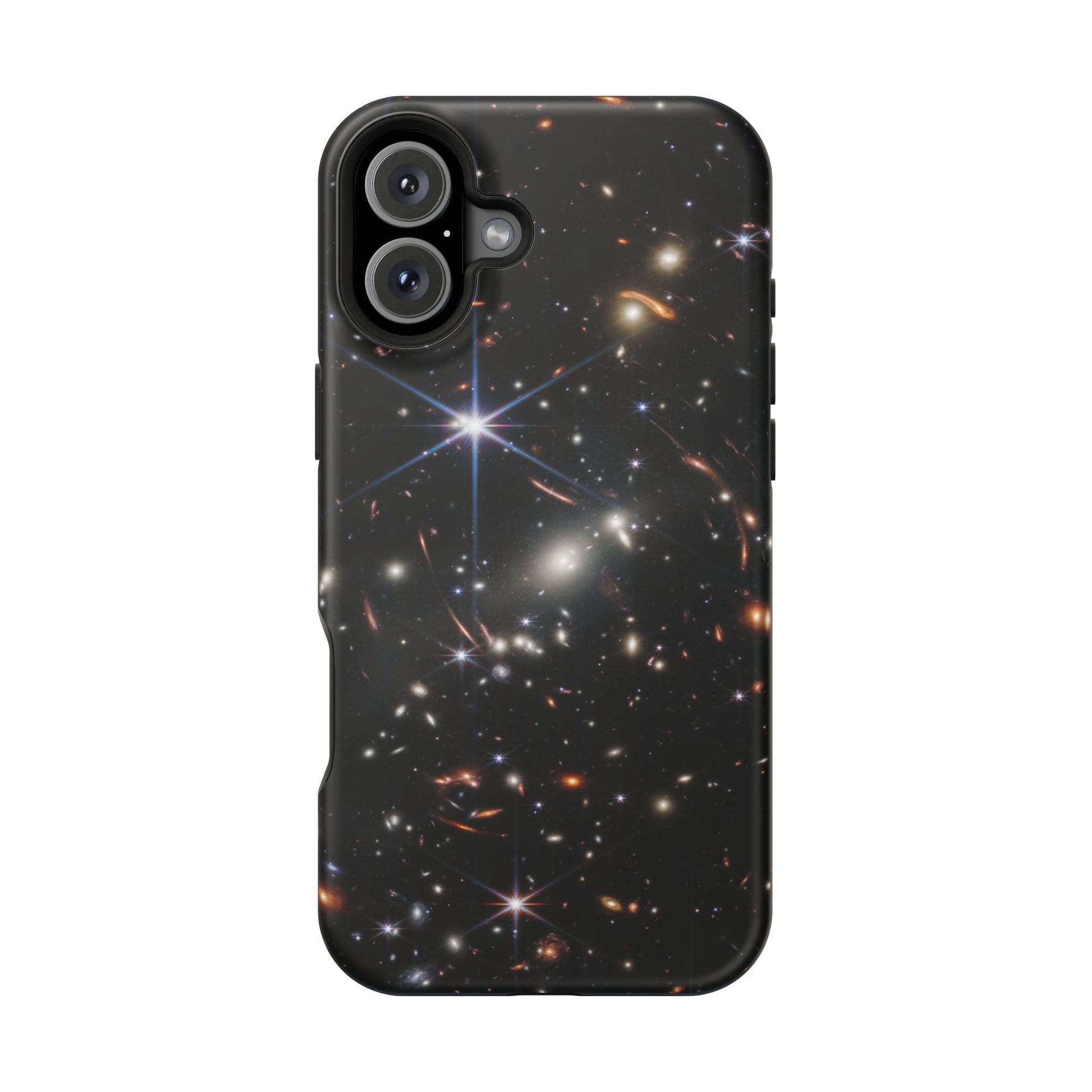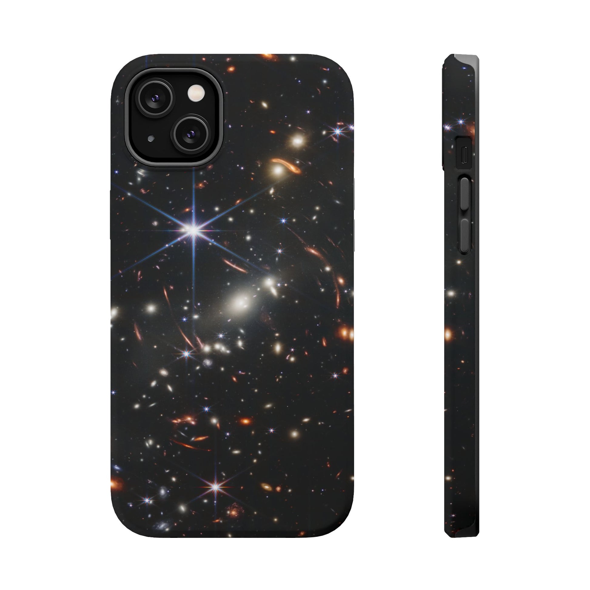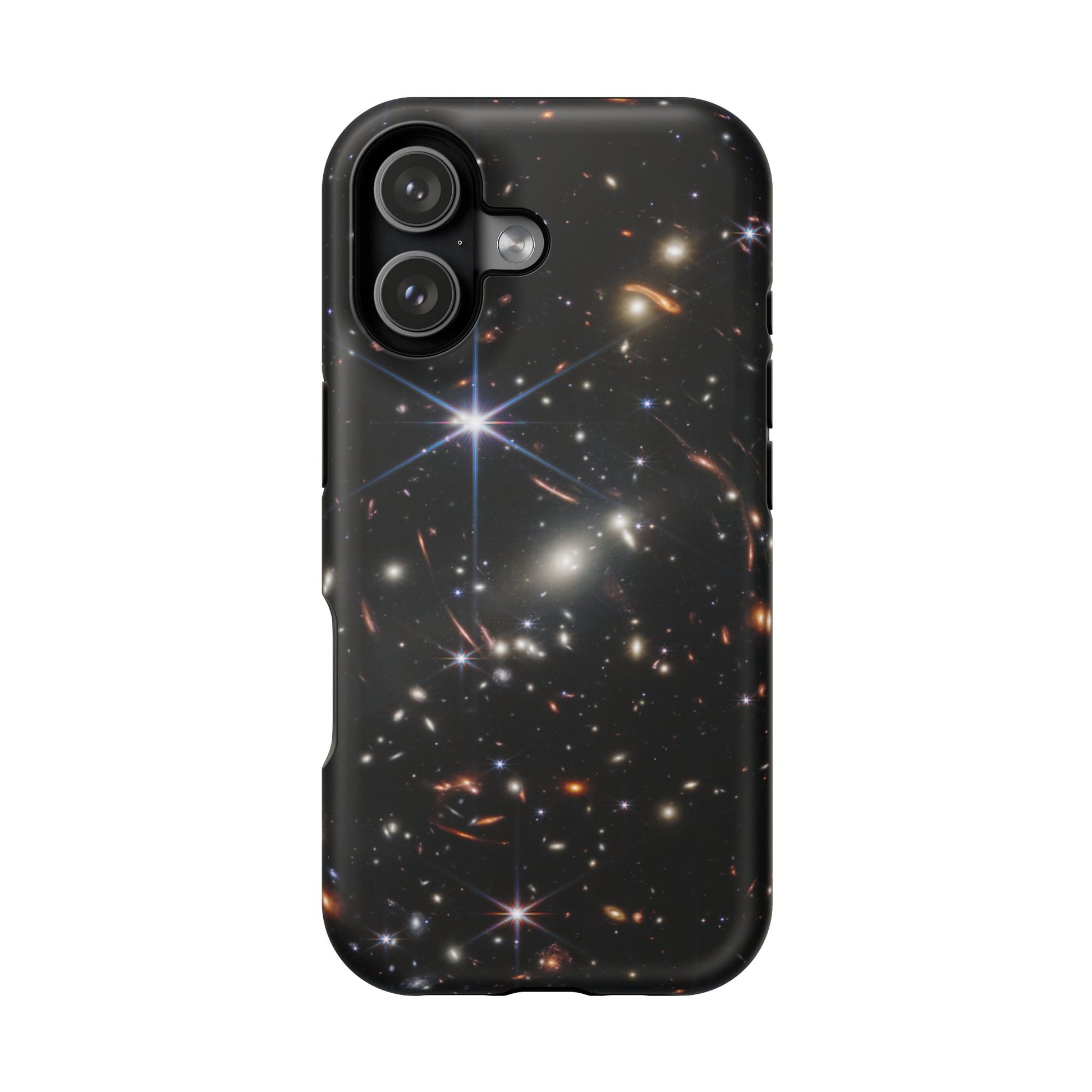 Webb's early universe magnetic tough case is is to remind you of how beautiful the Universe is. Equipped with an outer polycarbonate shell and inner black TPU lining, this case delivers robust protection thanks to its durable, flexible, impact-resistant nature. Available in a matte or glossy finish, each case comes with an embedded magnet module that is compatible with MagSafe® accessories and a stunning print that fully wraps around your case's exterior.
