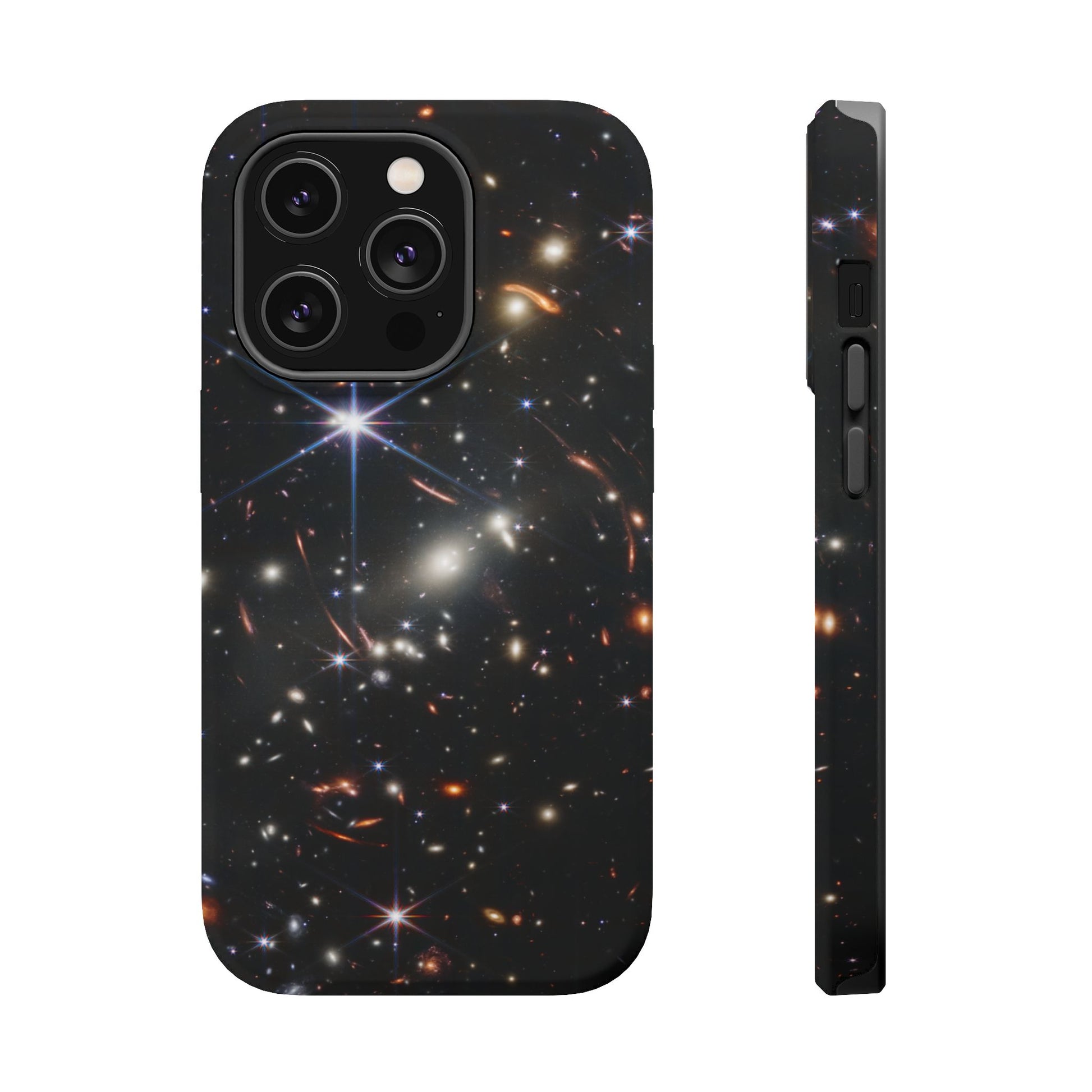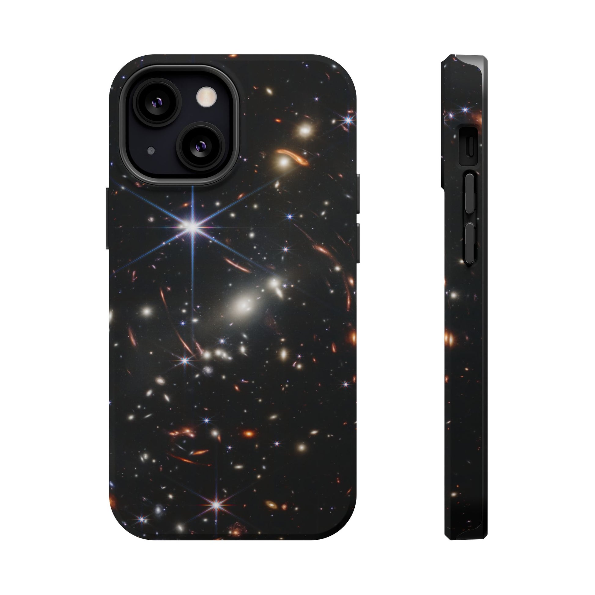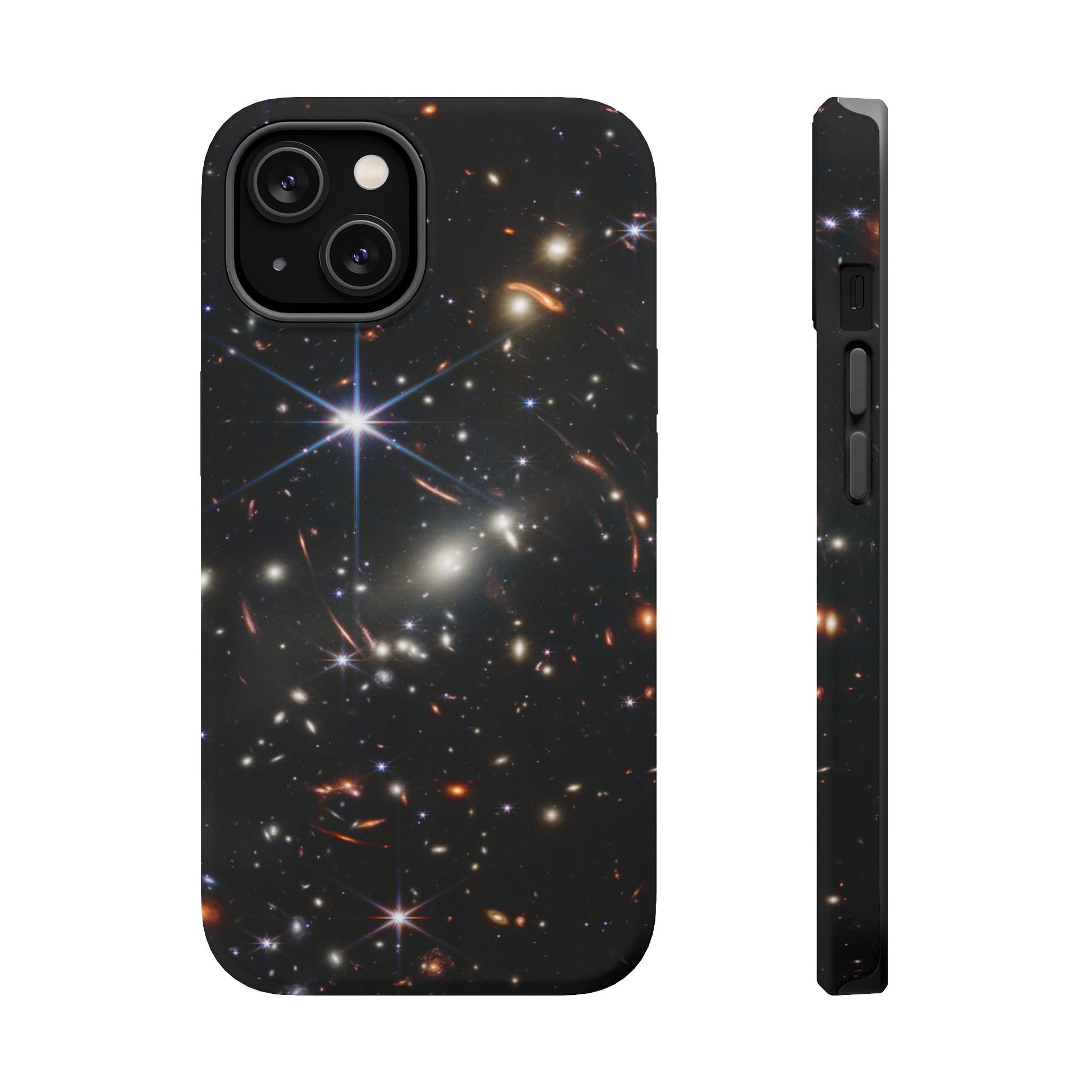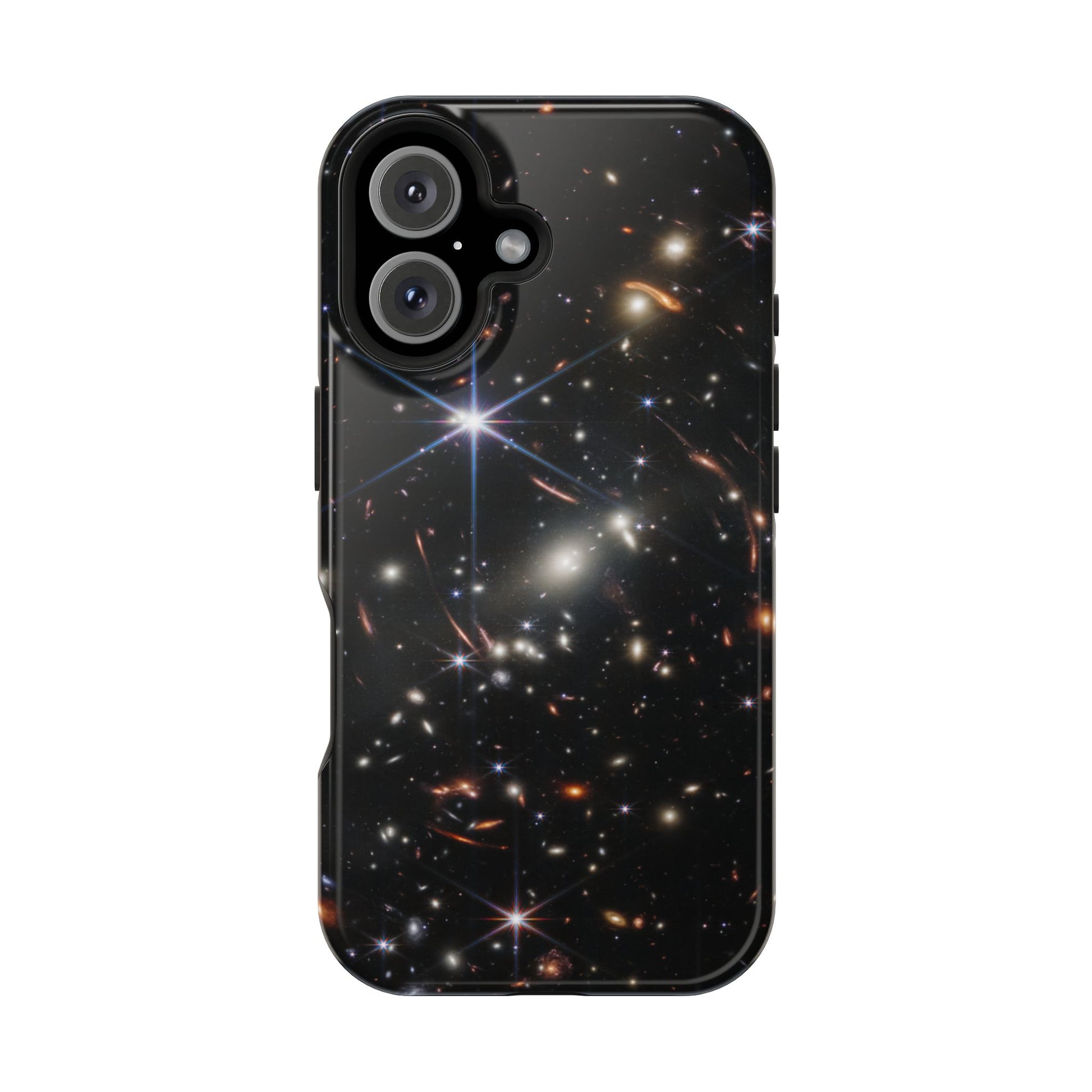 Webb's early universe magnetic tough case is is to remind you of how beautiful the Universe is. Equipped with an outer polycarbonate shell and inner black TPU lining, this case delivers robust protection thanks to its durable, flexible, impact-resistant nature. Available in a matte or glossy finish, each case comes with an embedded magnet module that is compatible with MagSafe® accessories and a stunning print that fully wraps around your case's exterior.
