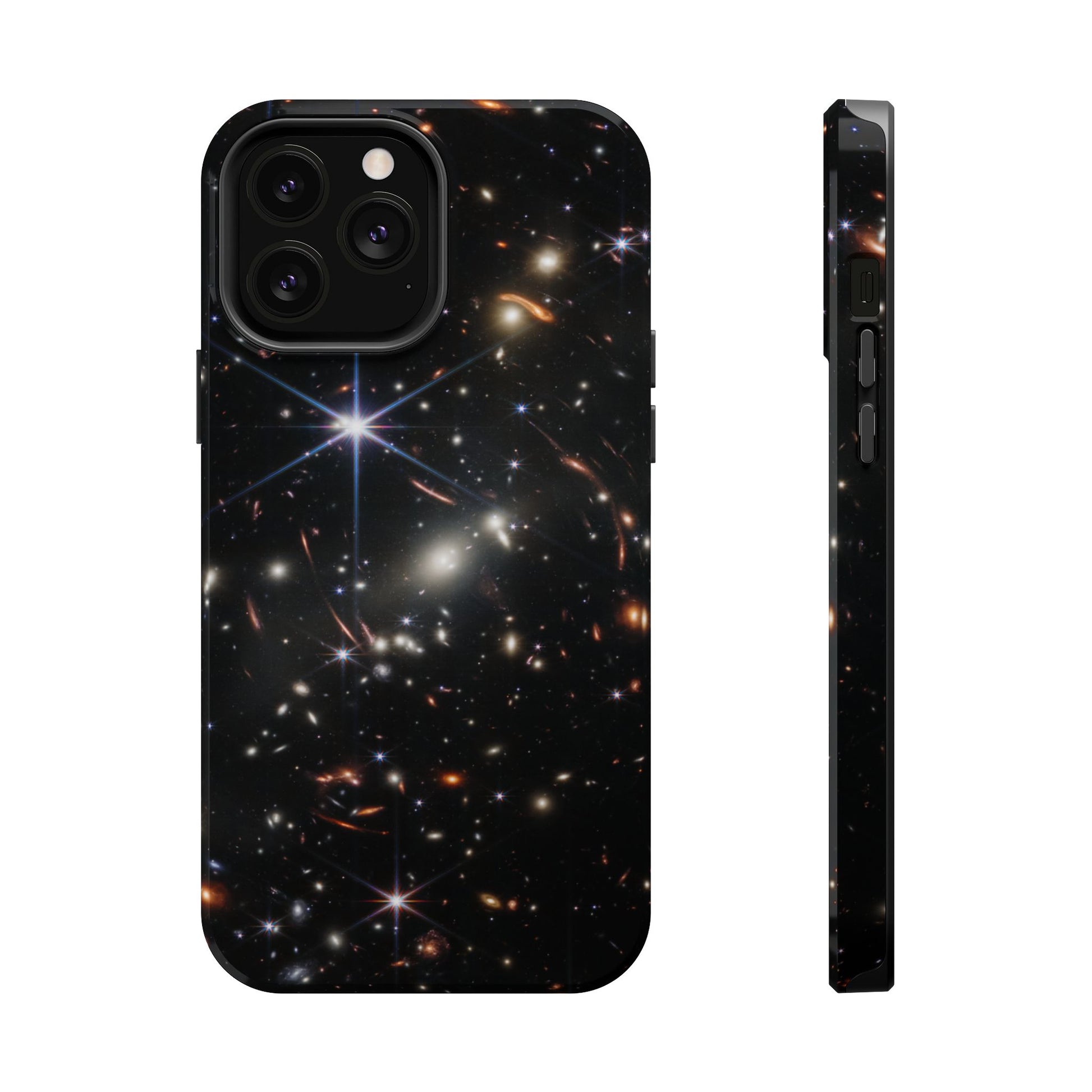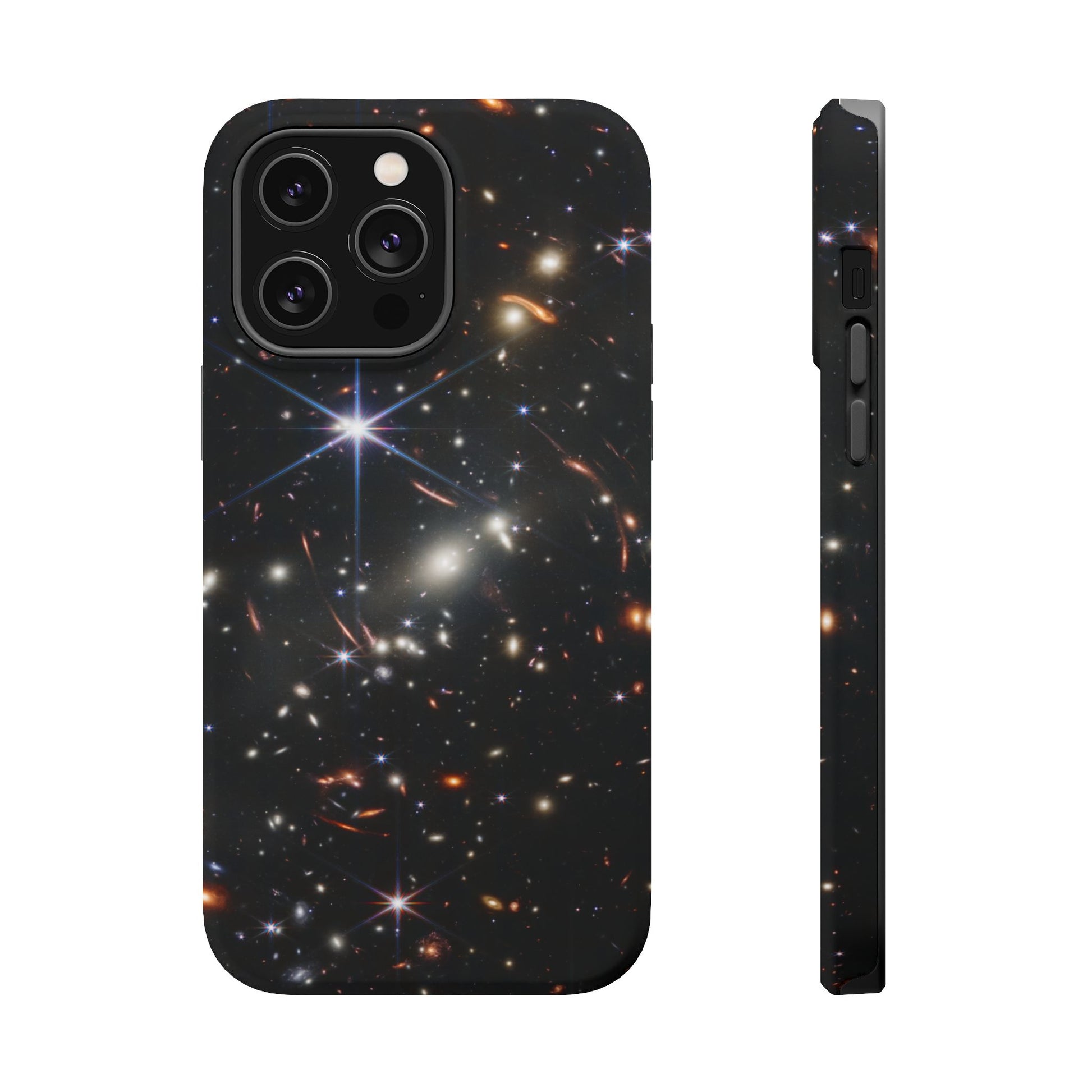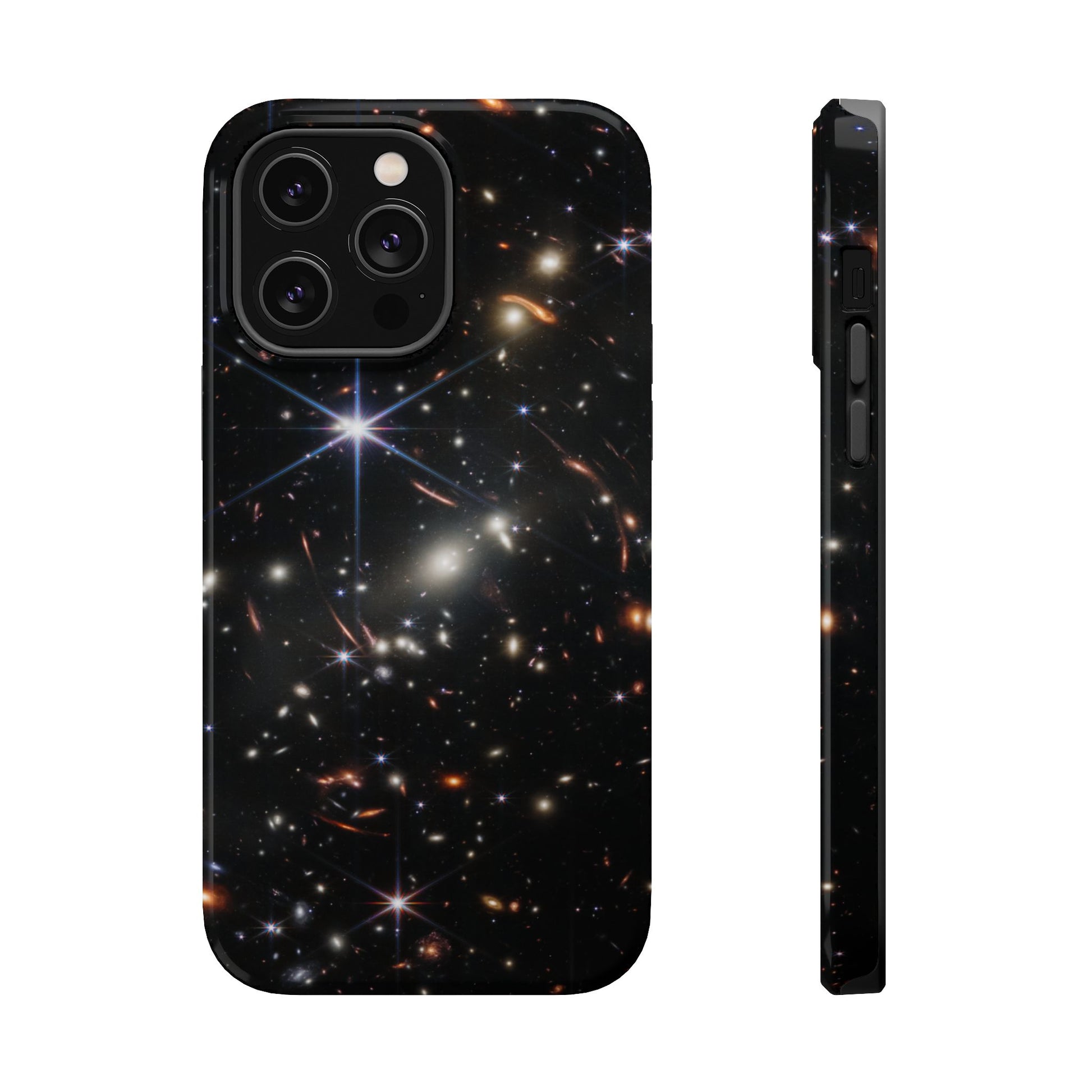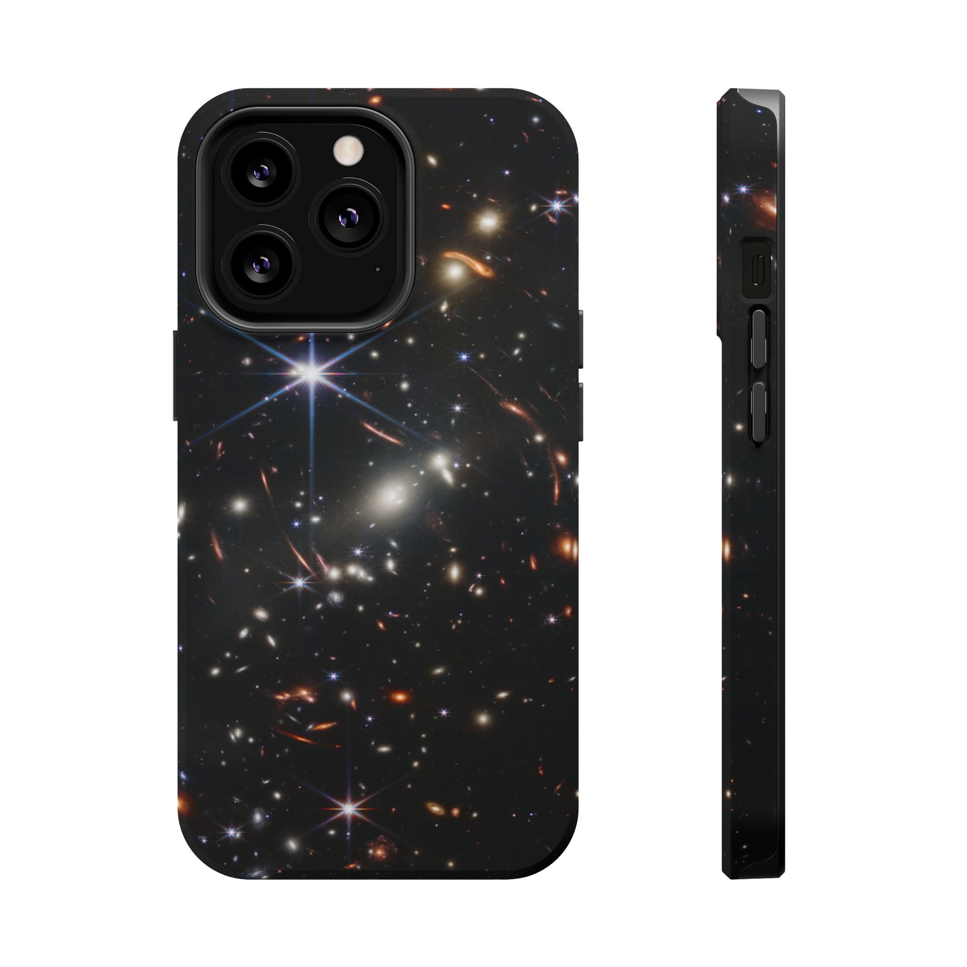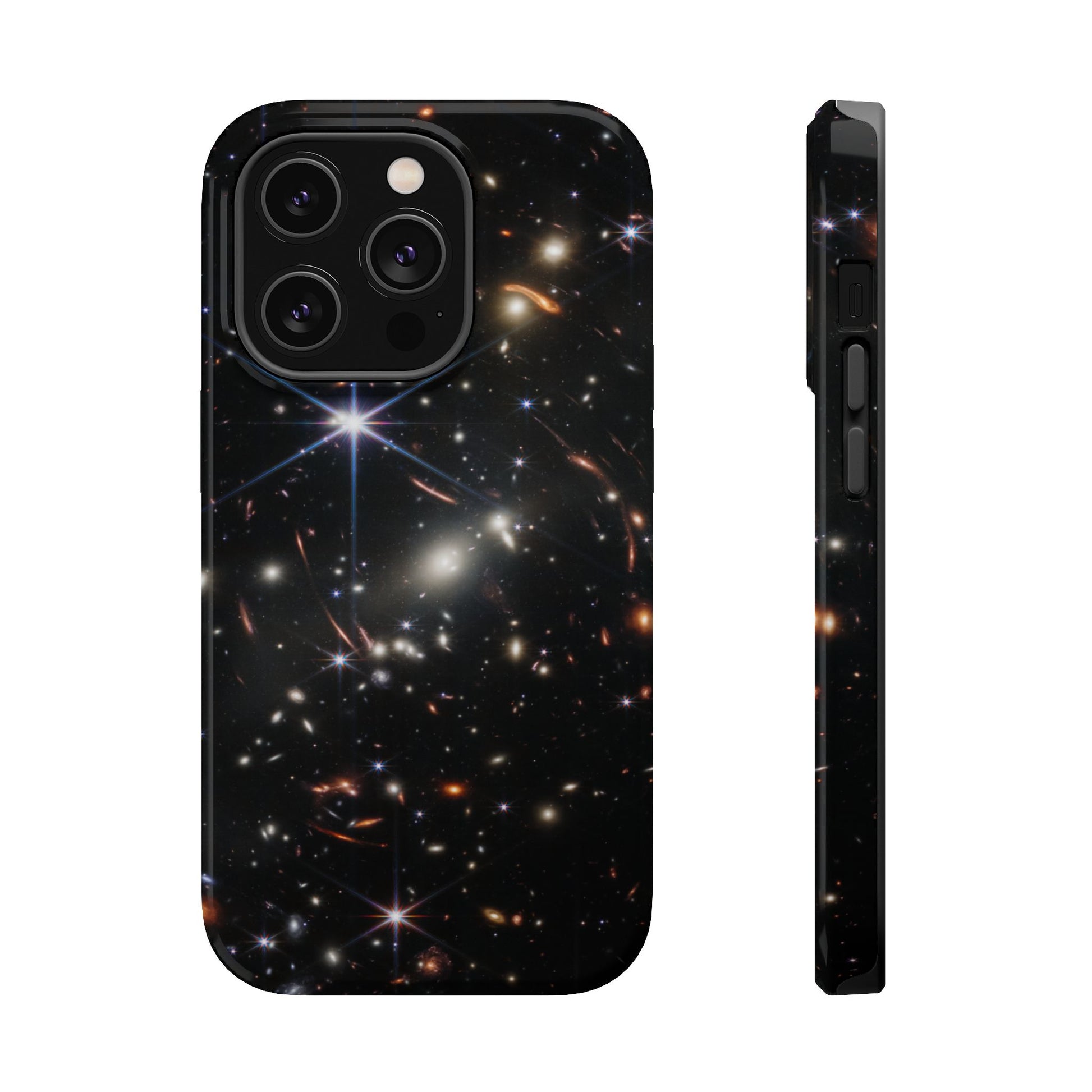 Webb's early universe magnetic tough case is is to remind you of how beautiful the Universe is. Equipped with an outer polycarbonate shell and inner black TPU lining, this case delivers robust protection thanks to its durable, flexible, impact-resistant nature. Available in a matte or glossy finish, each case comes with an embedded magnet module that is compatible with MagSafe® accessories and a stunning print that fully wraps around your case's exterior.