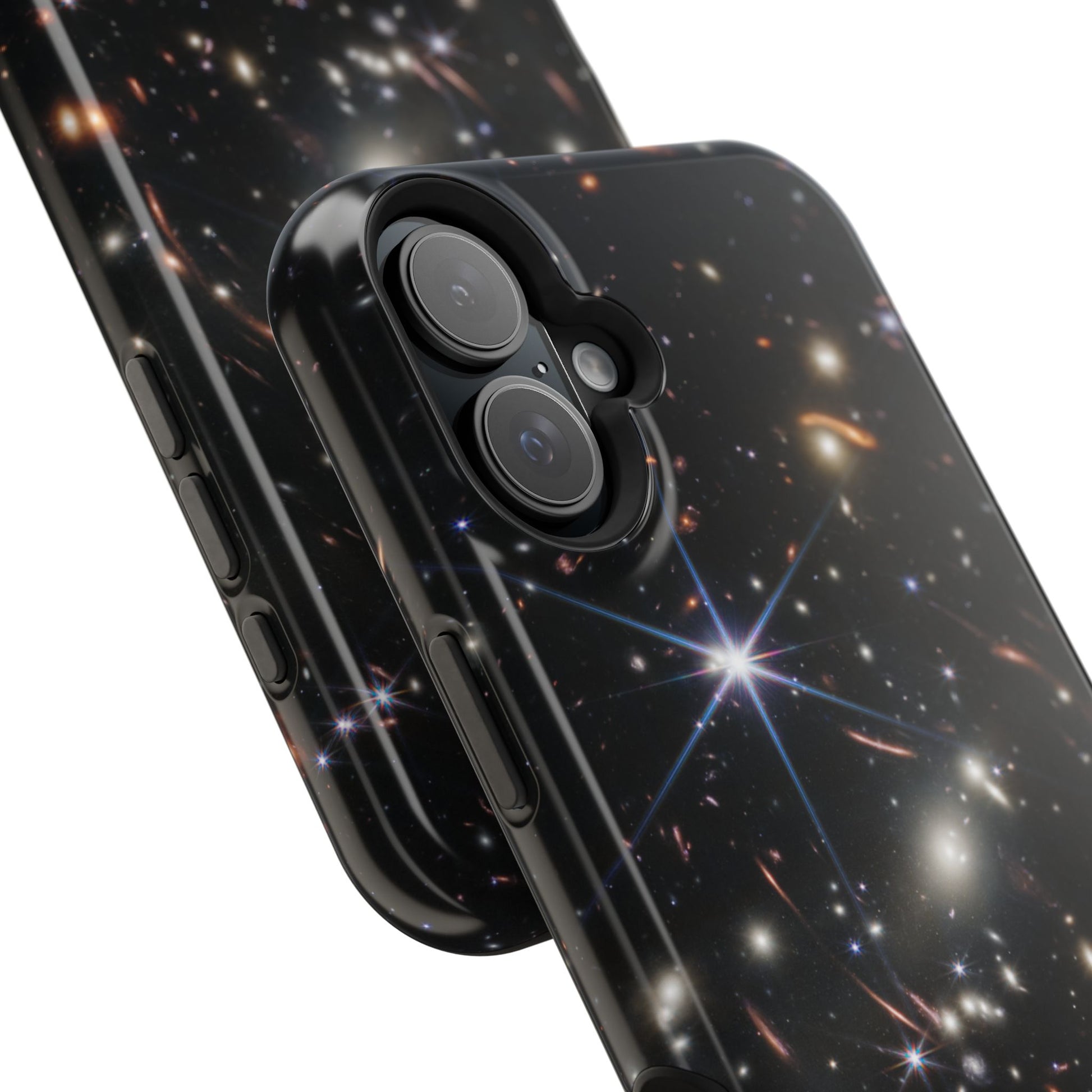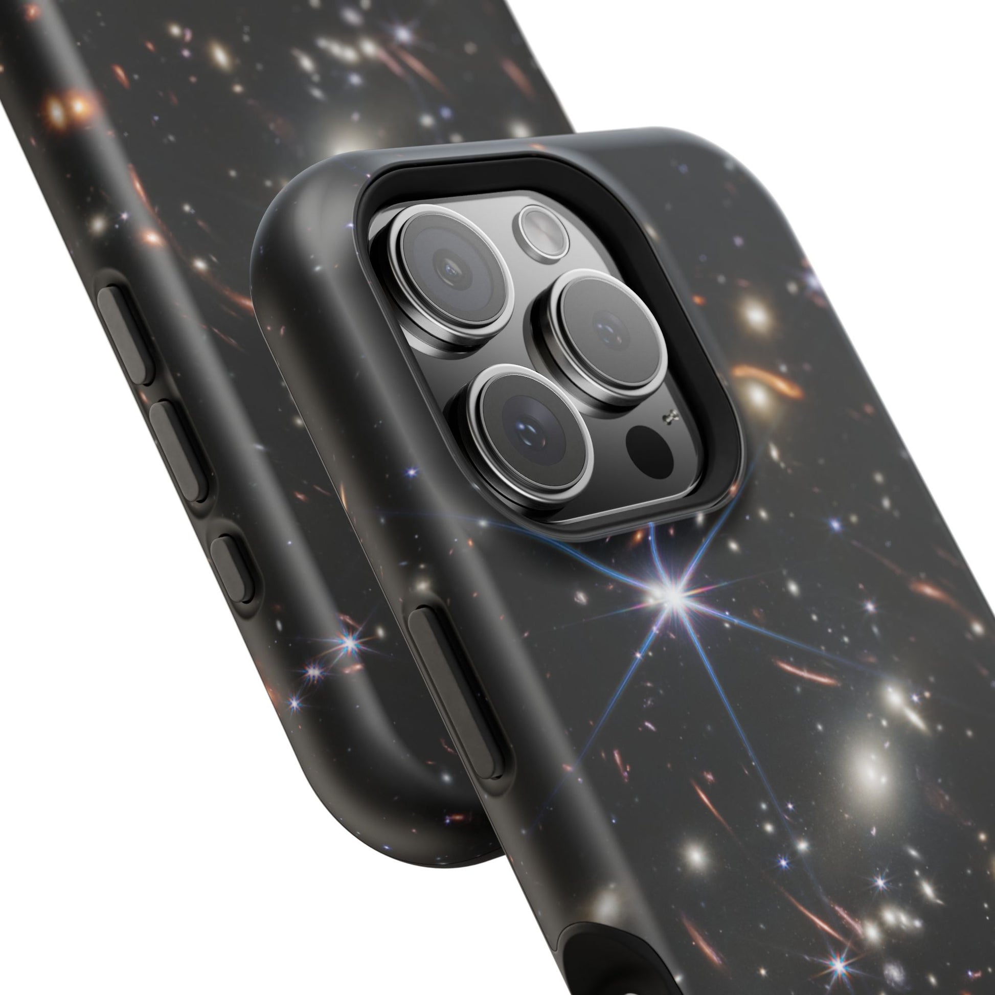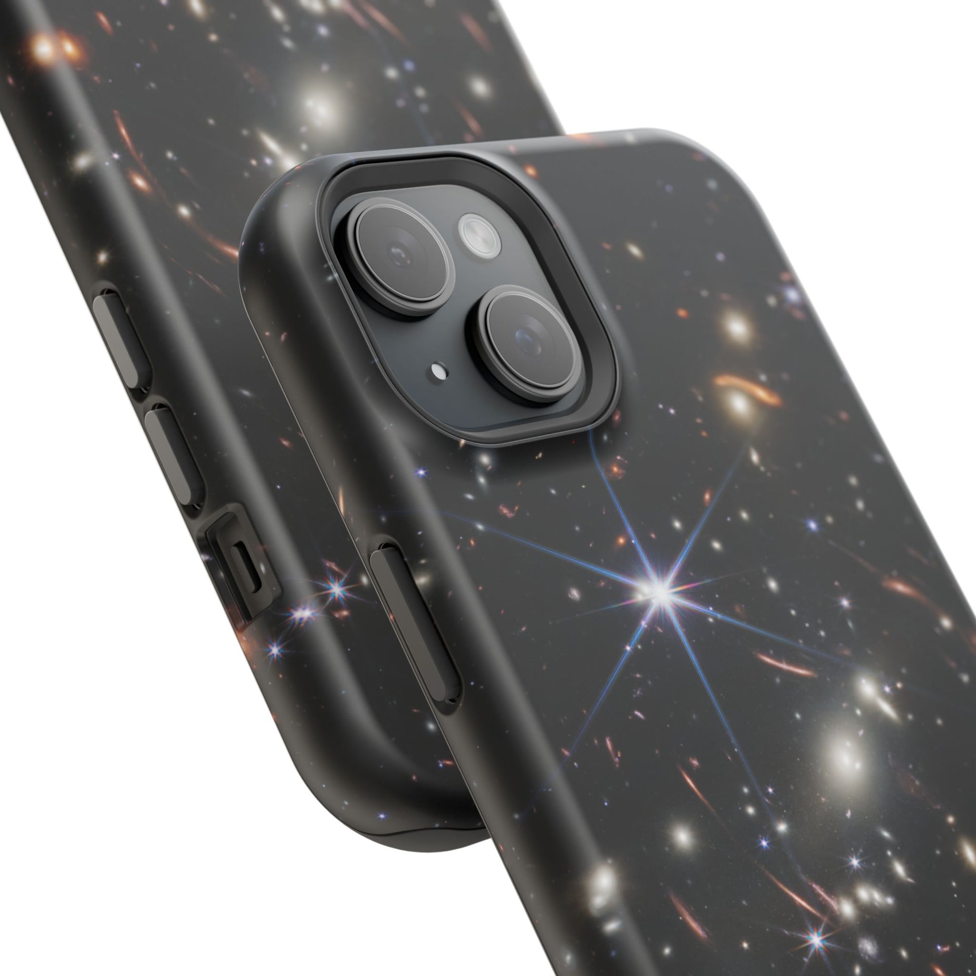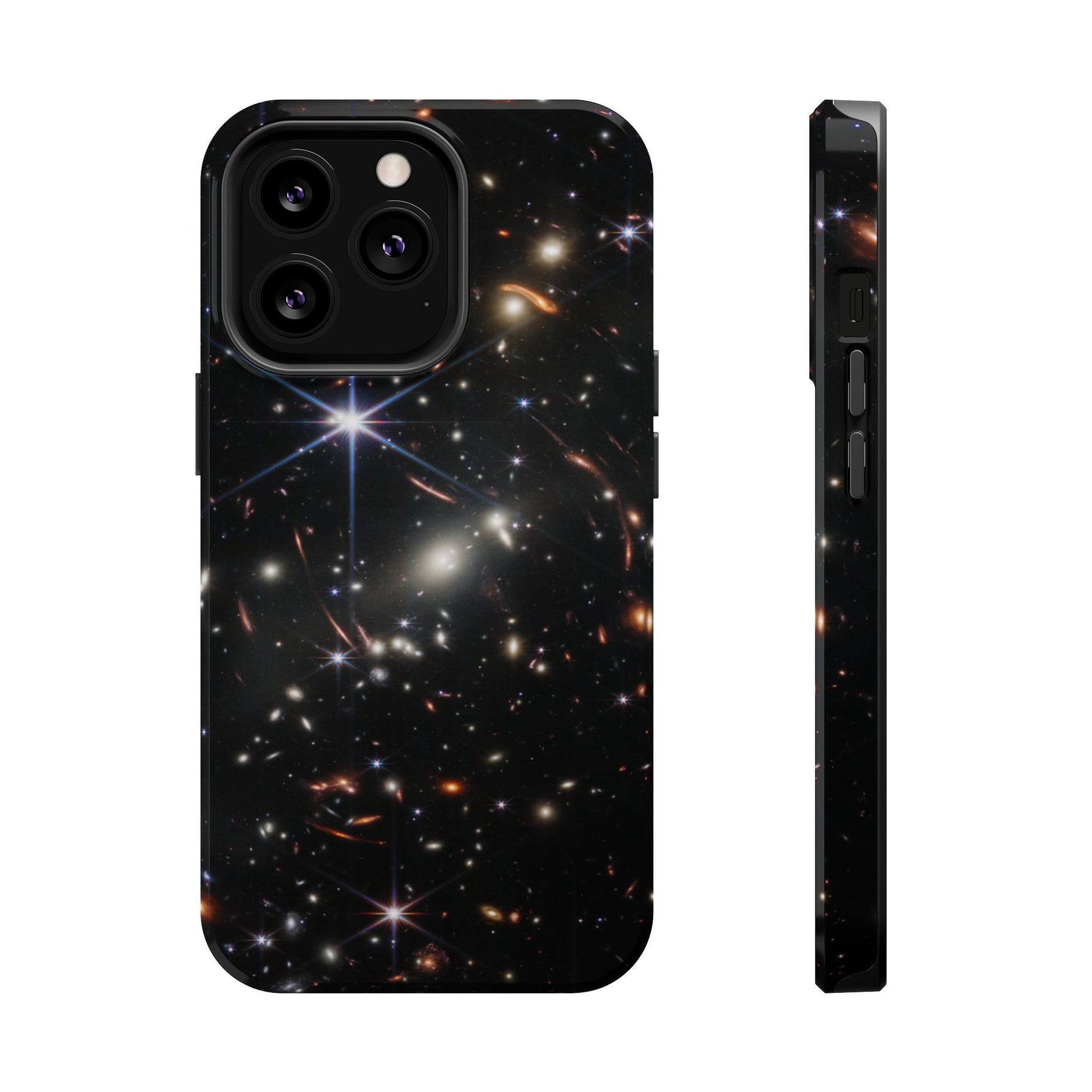 Webb's early universe magnetic tough case is is to remind you of how beautiful the Universe is. Equipped with an outer polycarbonate shell and inner black TPU lining, this case delivers robust protection thanks to its durable, flexible, impact-resistant nature. Available in a matte or glossy finish, each case comes with an embedded magnet module that is compatible with MagSafe® accessories and a stunning print that fully wraps around your case's exterior.