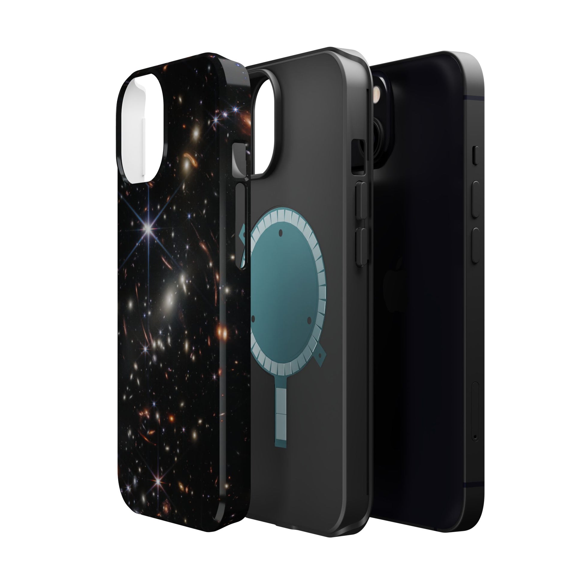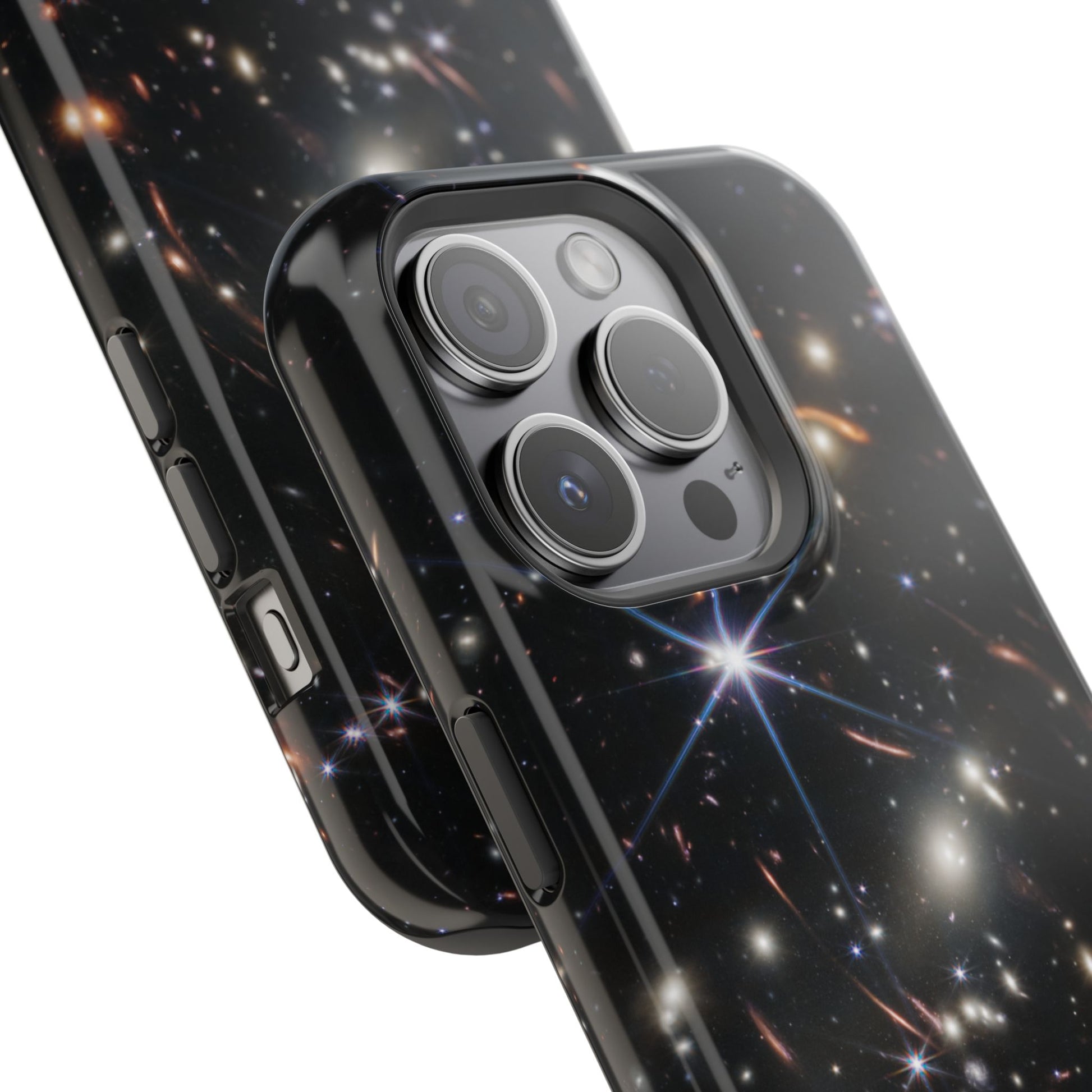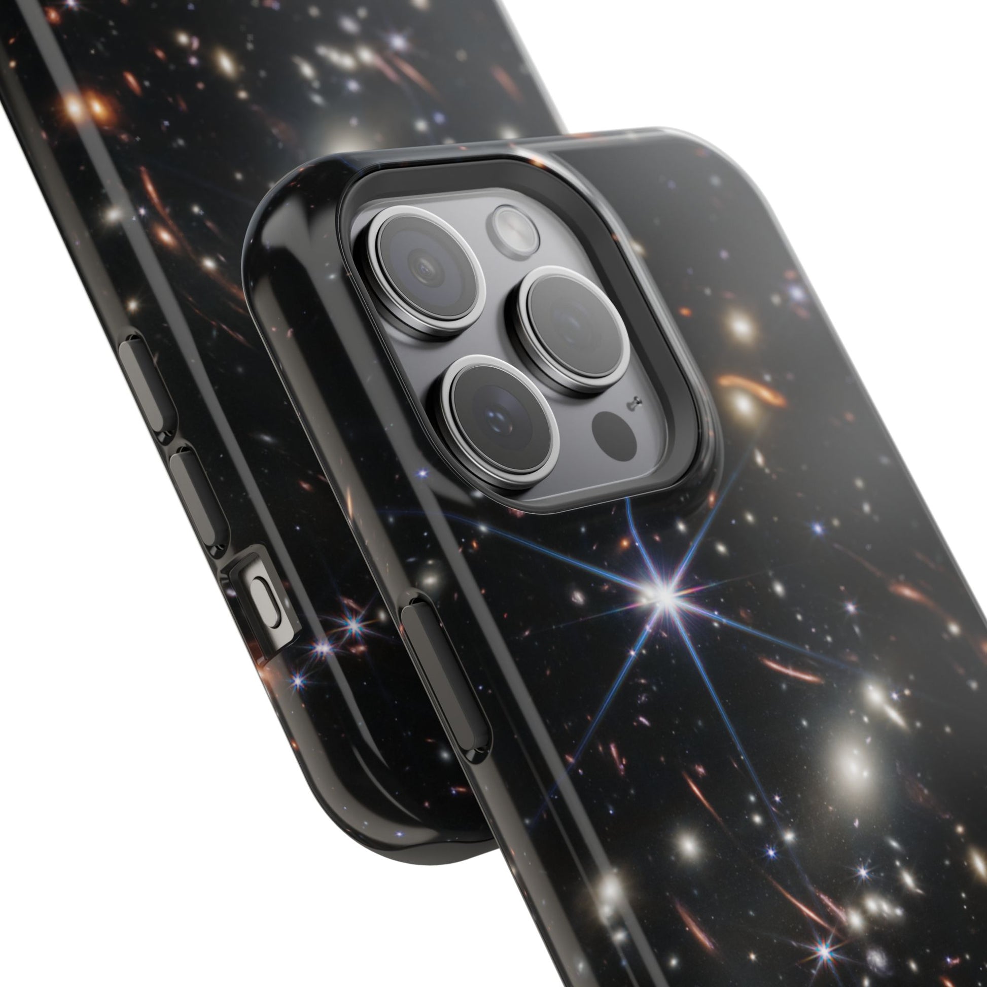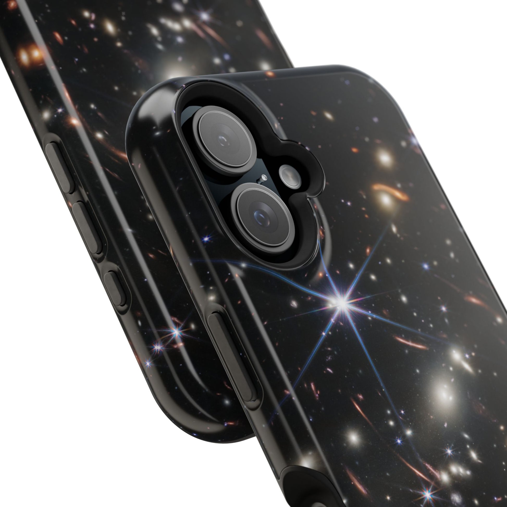Webb's early universe magnetic tough case is is to remind you of how beautiful the Universe is. Equipped with an outer polycarbonate shell and inner black TPU lining, this case delivers robust protection thanks to its durable, flexible, impact-resistant nature. Available in a matte or glossy finish, each case comes with an embedded magnet module that is compatible with MagSafe® accessories and a stunning print that fully wraps around your case's exterior.