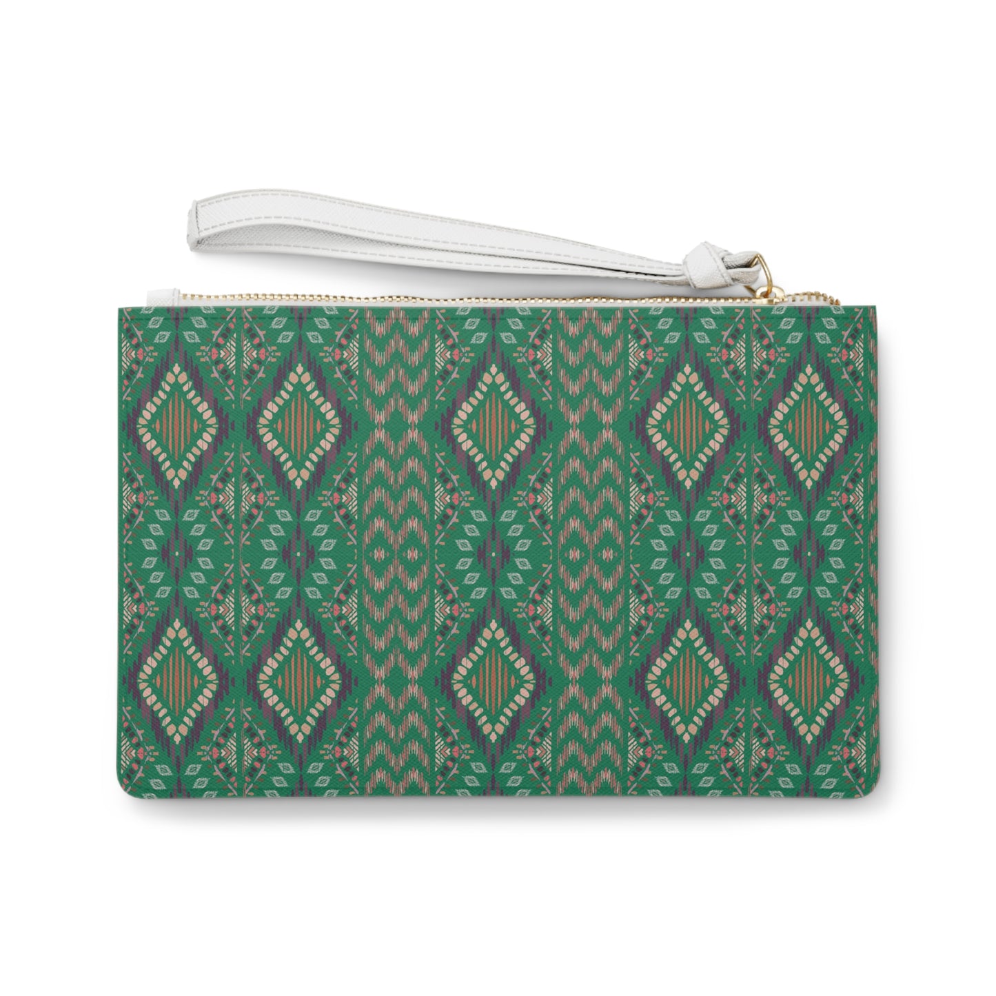 Large * Emerald Green Geometric Themed Clutch Bag, Stylish Purse