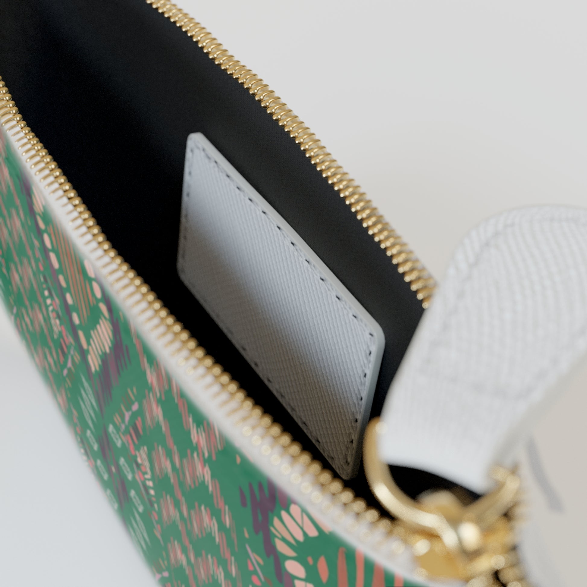 Designed to be chic and highly portable, this mini clutch bag is made for the fashionista on the go. It can hold everyday essentials such as a wallet or keys, or it can hold your favorite 3ood, miswak, lip balm, etc. It features a zip fastener and it is made of vegan, cruelty-free leather.