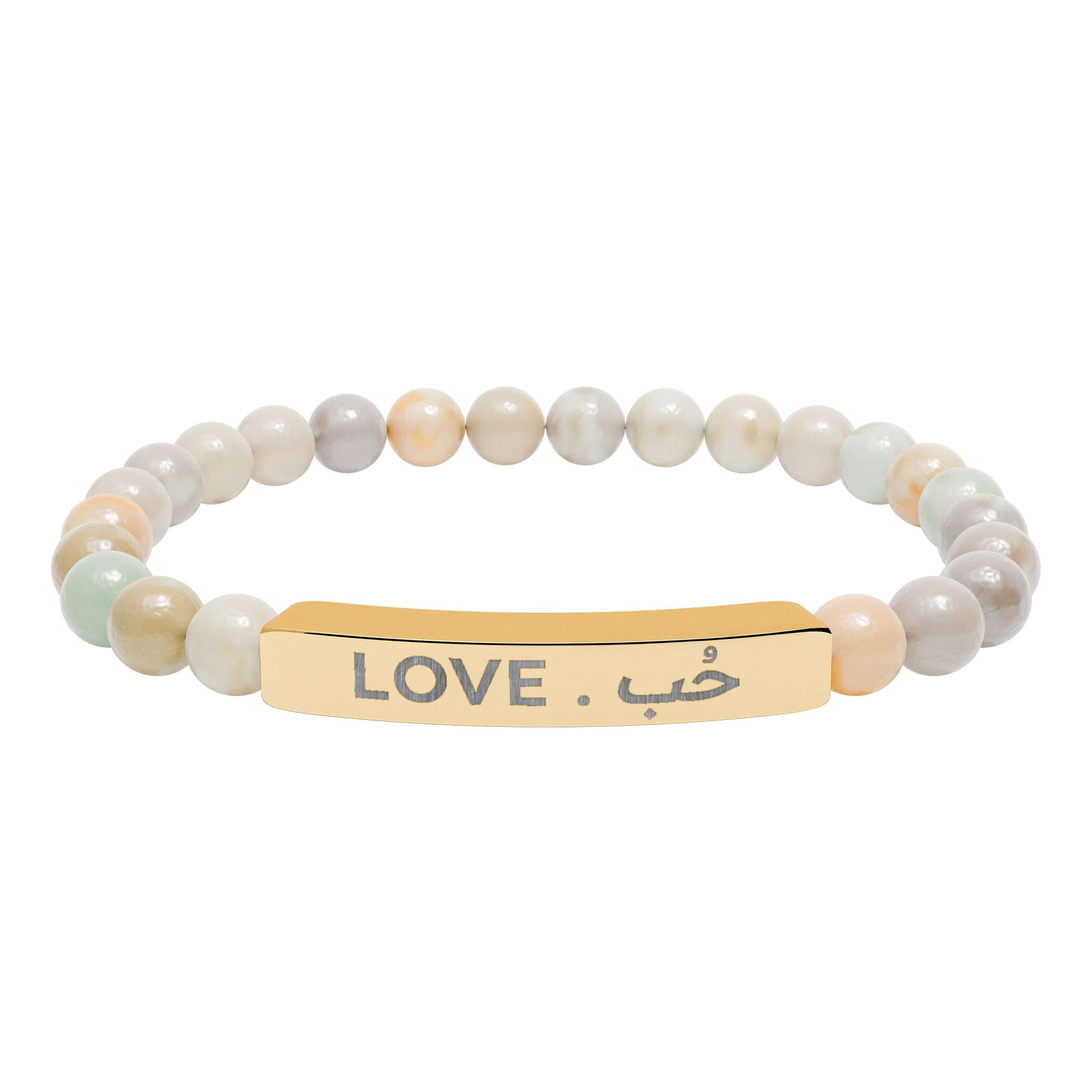 “Love 💕 حب ” Engraved Natural Stone Bracelet - Meaningful Gift for Mindfulness and Style