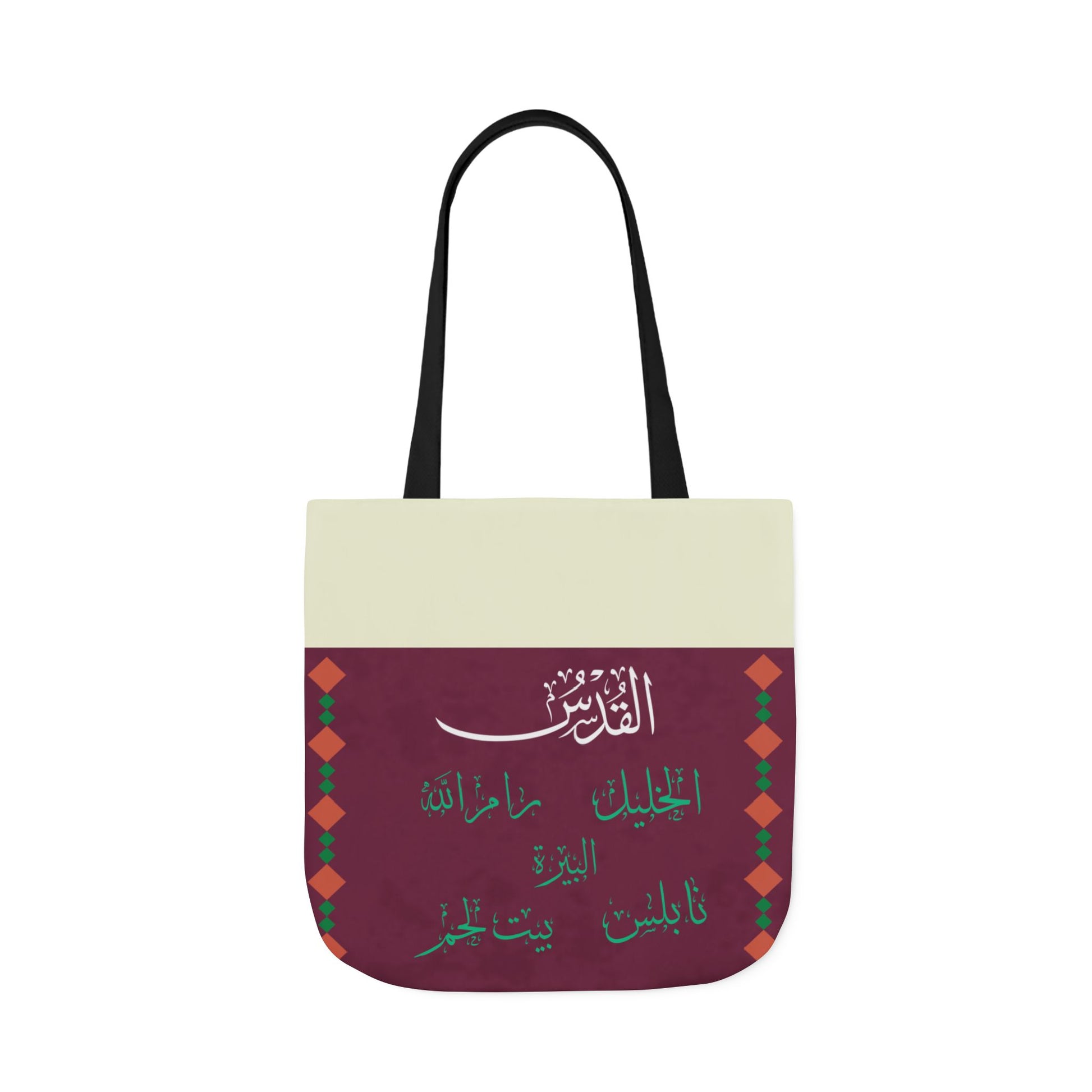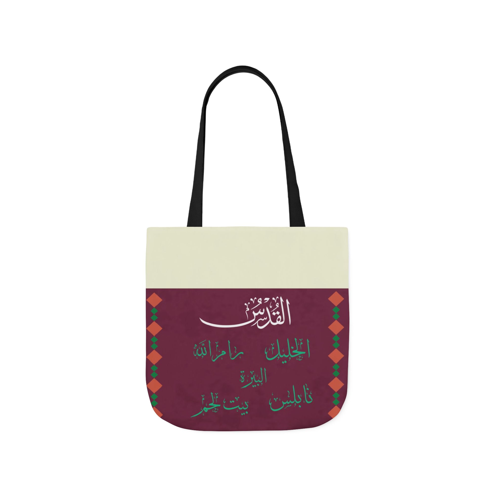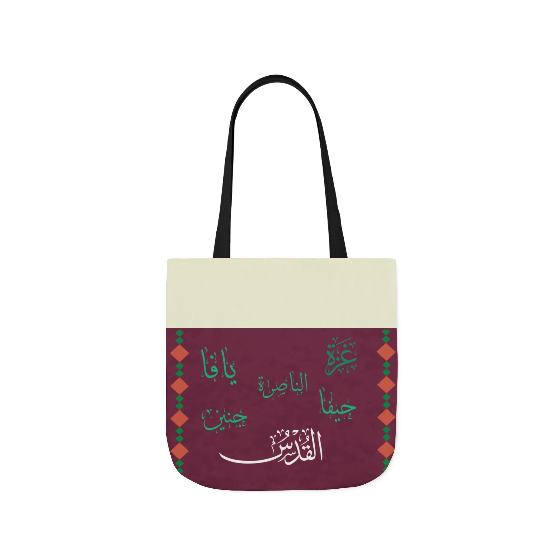 Palestinian Cities Design Tote Bag, 2-Color Straps