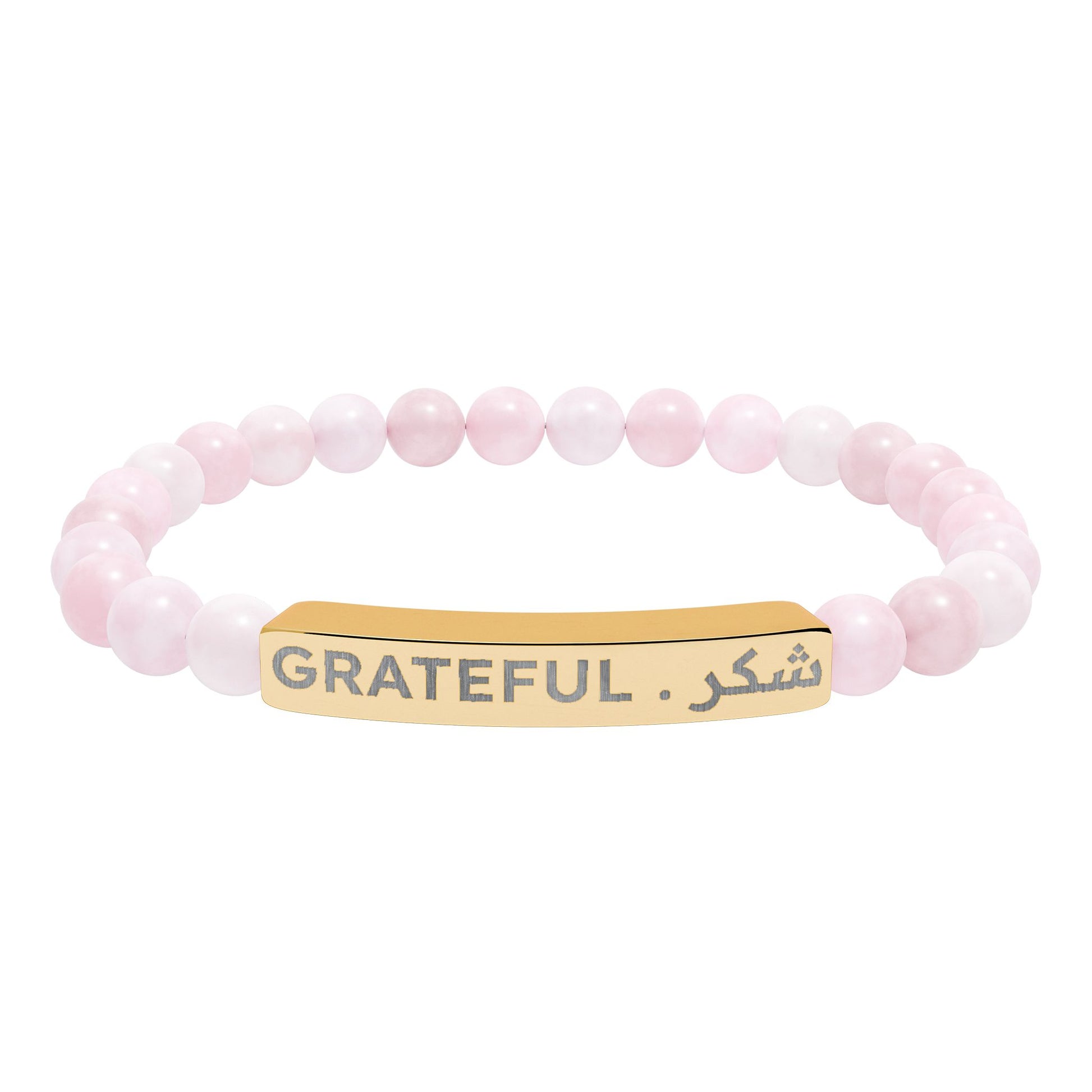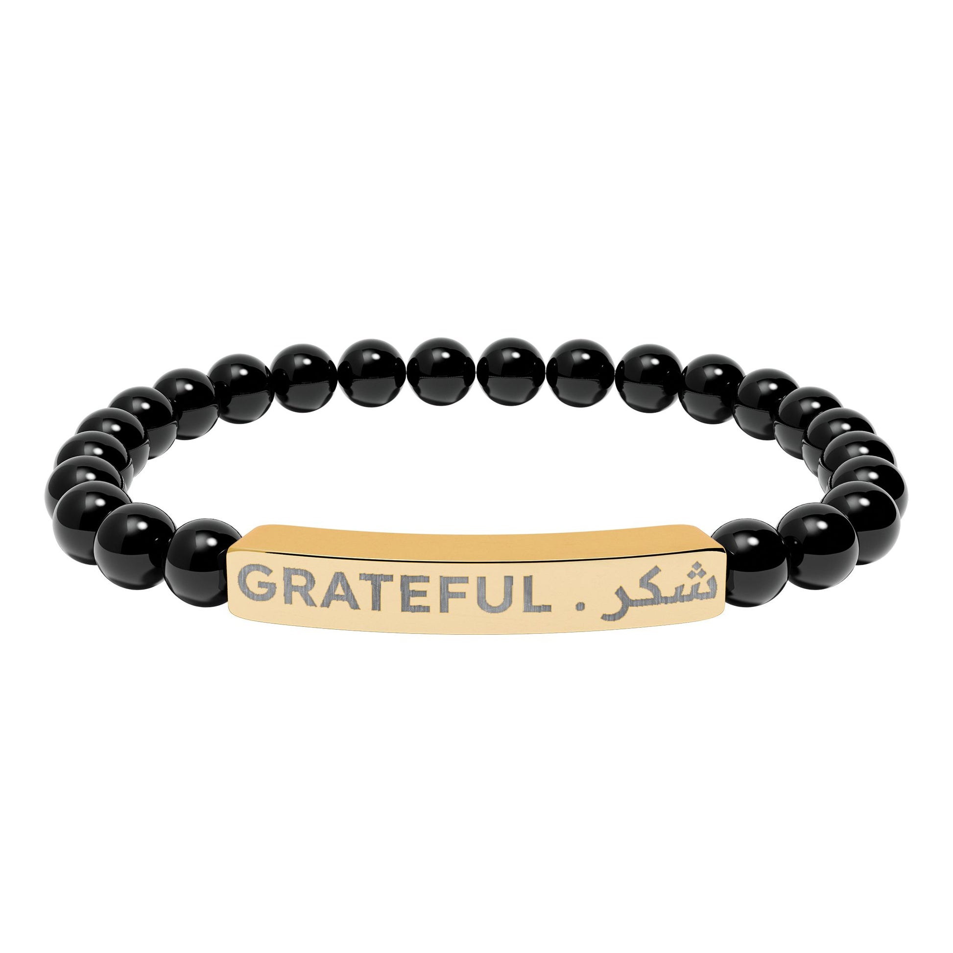 “Grateful . شكر” Engraved -Natural Stone Bracelet