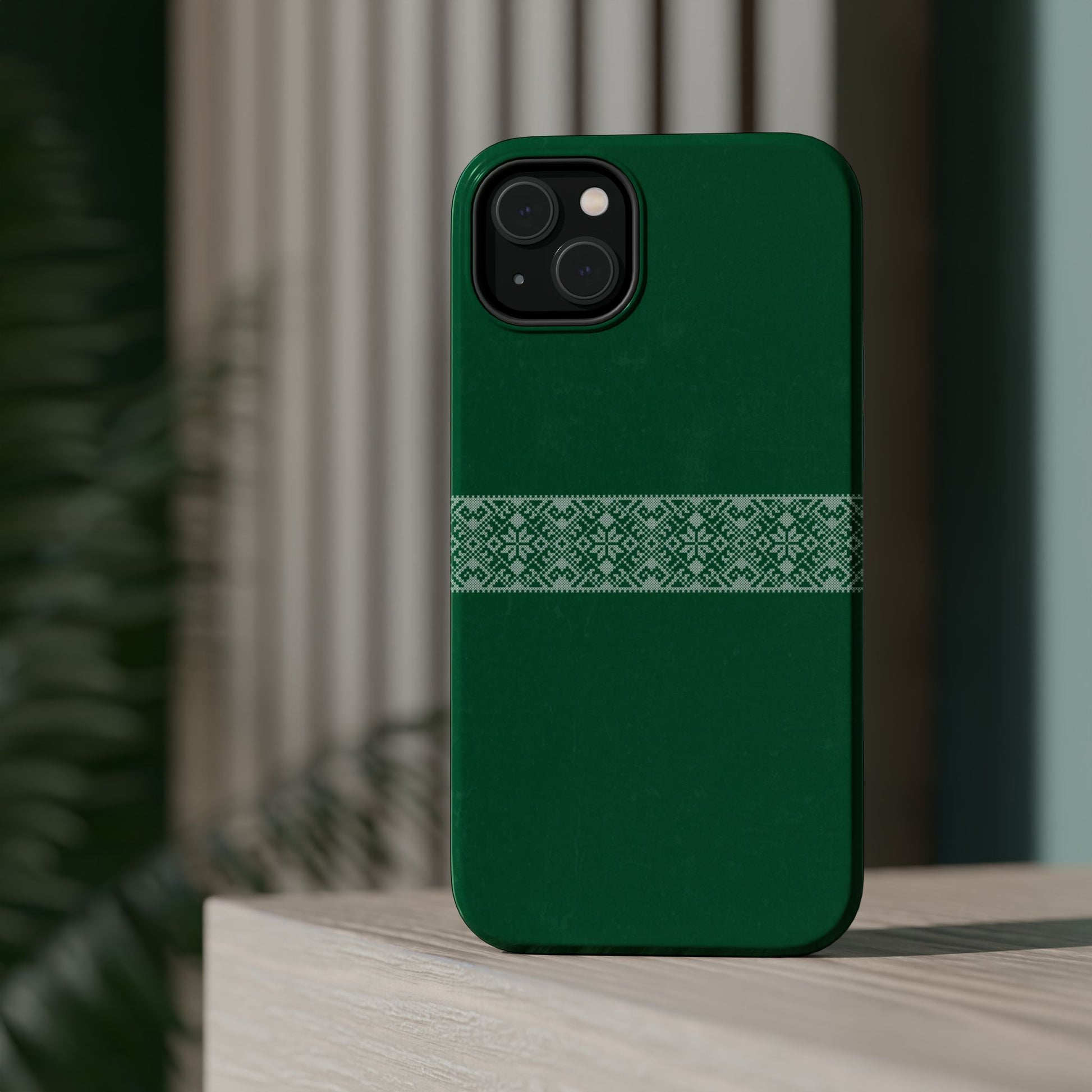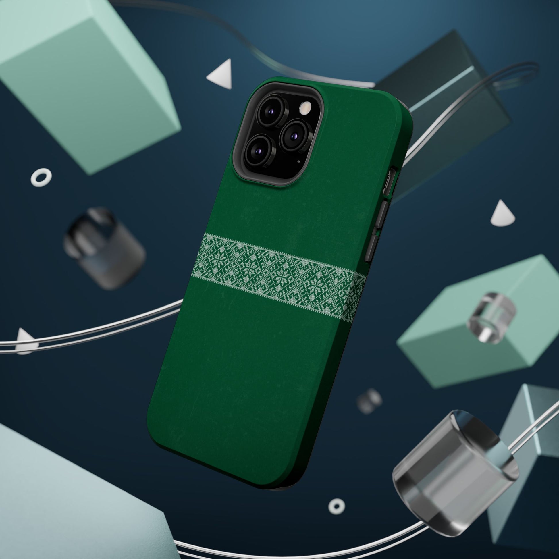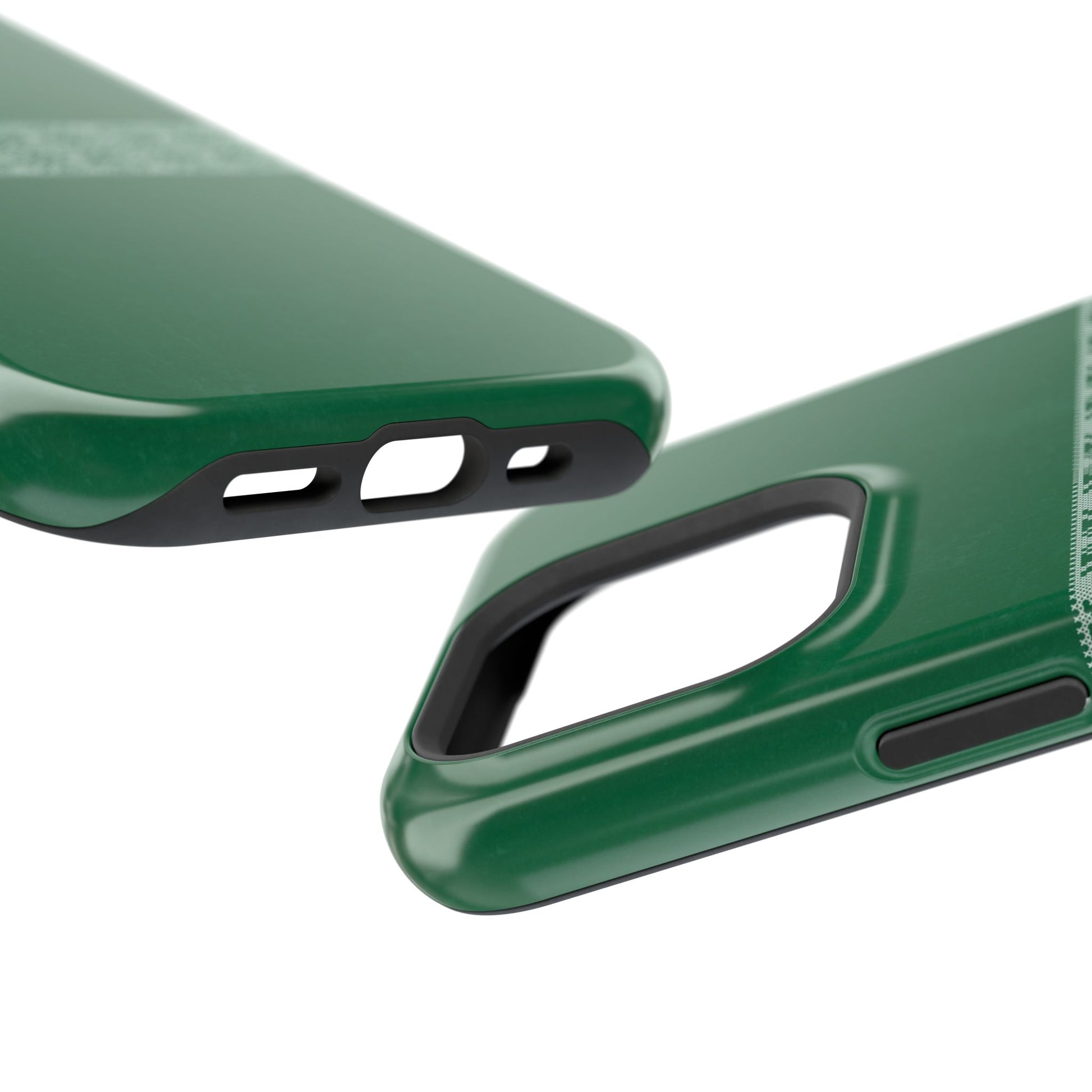 Green Tatriz magnetic phone case. Equipped with an outer polycarbonate shell and inner black TPU lining, this case delivers robust protection thanks to its durable, flexible, impact-resistant nature. Available in a matte or glossy finish, each case comes with an embedded magnet module that is compatible with MagSafe® accessories and a stunning print that fully wraps around your case's exterior.