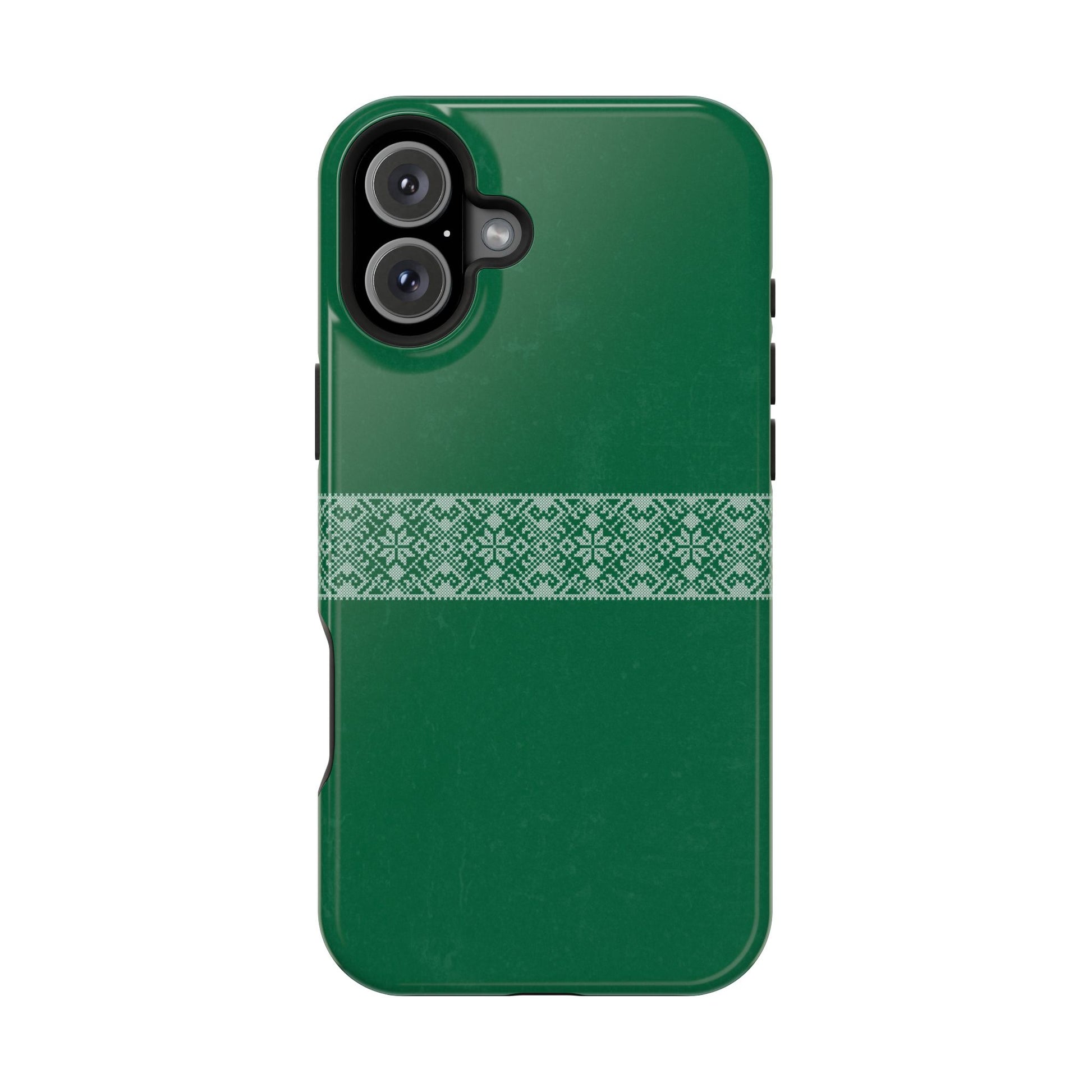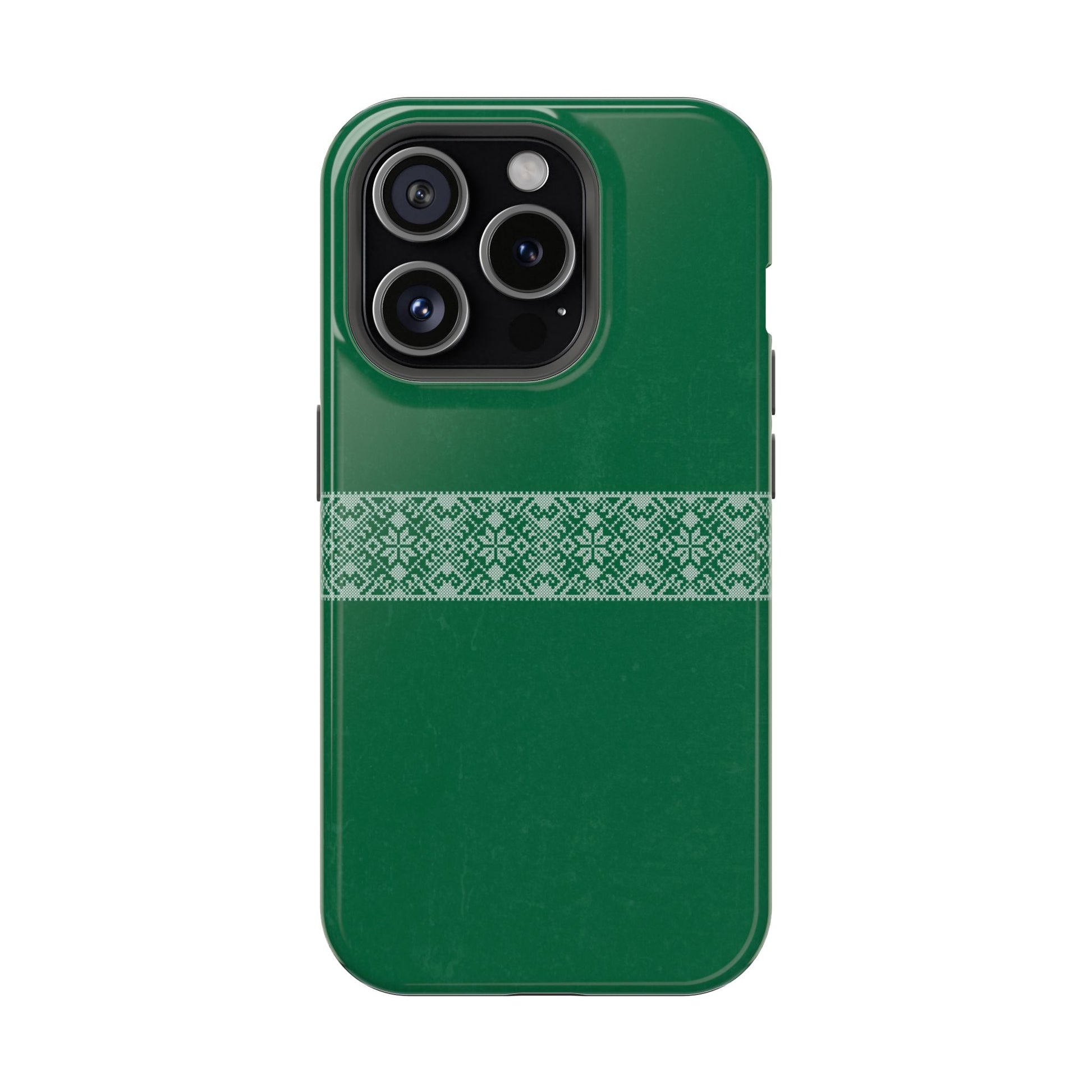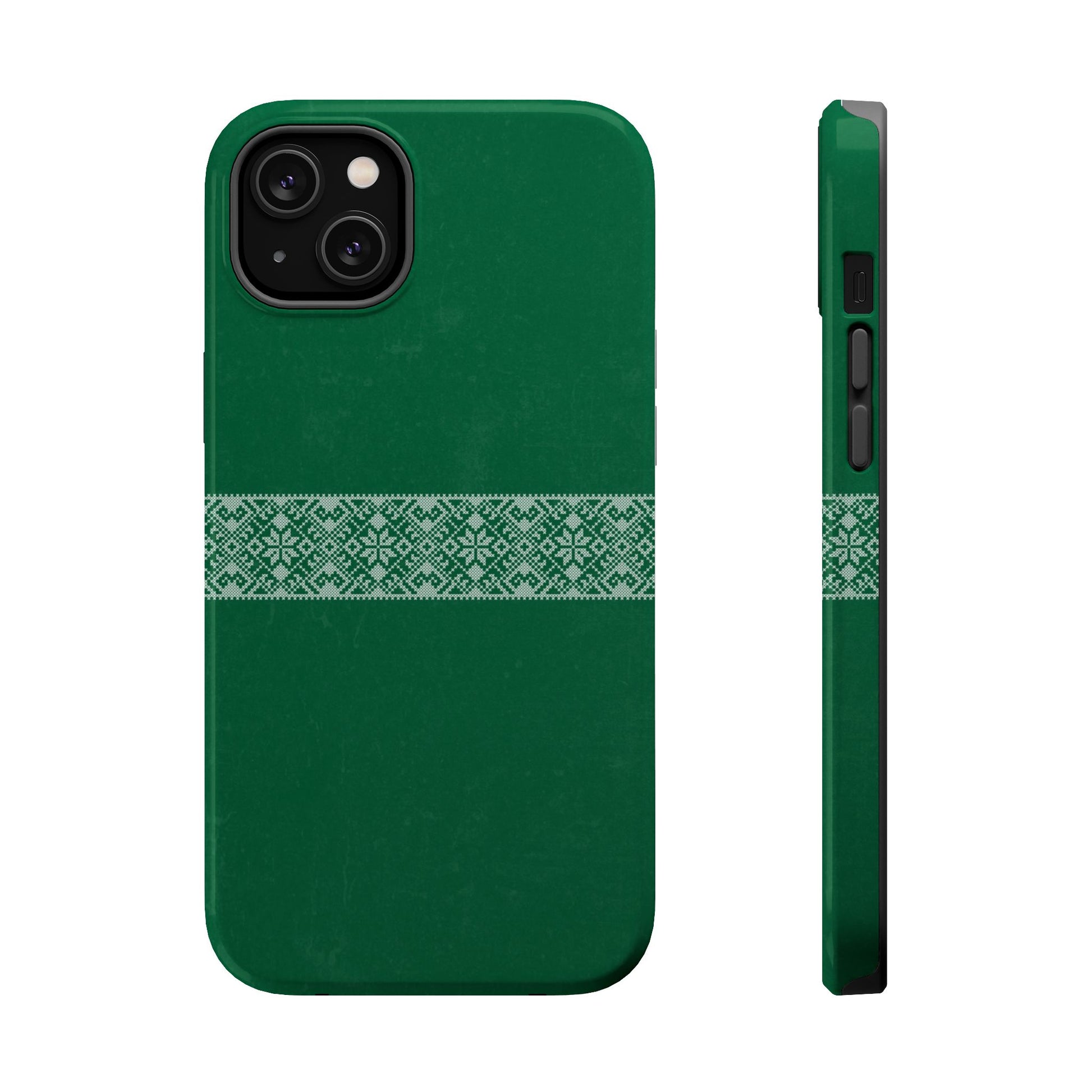 Green Tatriz magnetic phone case. Equipped with an outer polycarbonate shell and inner black TPU lining, this case delivers robust protection thanks to its durable, flexible, impact-resistant nature. Available in a matte or glossy finish, each case comes with an embedded magnet module that is compatible with MagSafe® accessories and a stunning print that fully wraps around your case's exterior.