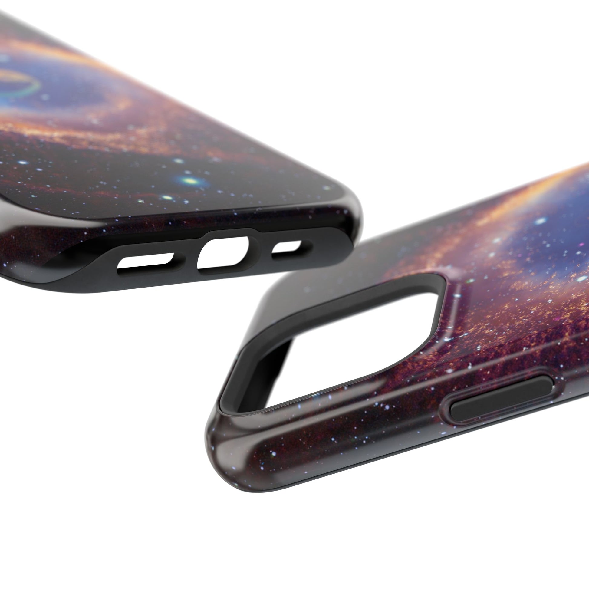 Helix Nebula magnetic tough case is is to remind you of the magnificence of the Universe. Equipped with an outer polycarbonate shell and inner black TPU lining, this case delivers robust protection thanks to its durable, flexible, impact-resistant nature. Available in a matte or glossy finish, each case comes with an embedded magnet module that is compatible with MagSafe® accessories and a stunning print that fully wraps around your case's exterior.