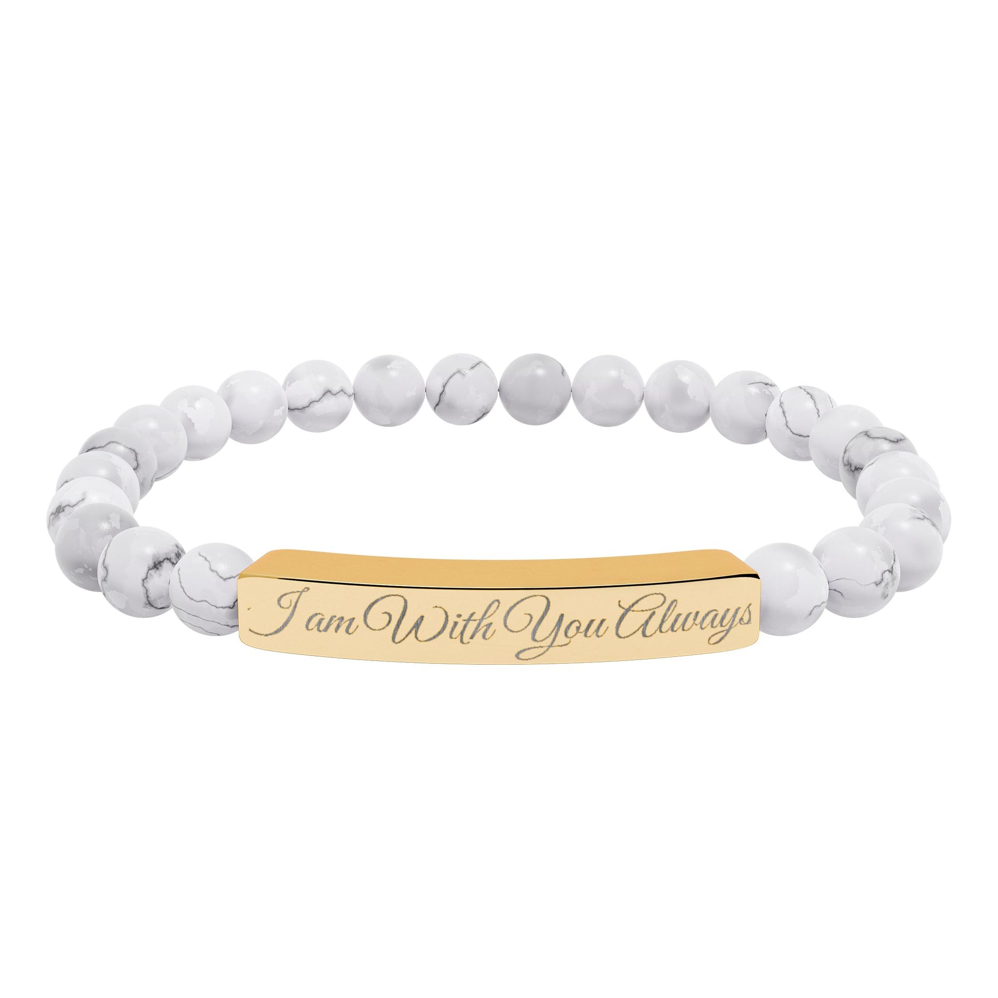 “I am With You Always” Engraved Natural Stone Bracelet - Meaningful Gift for Mindfulness and Style