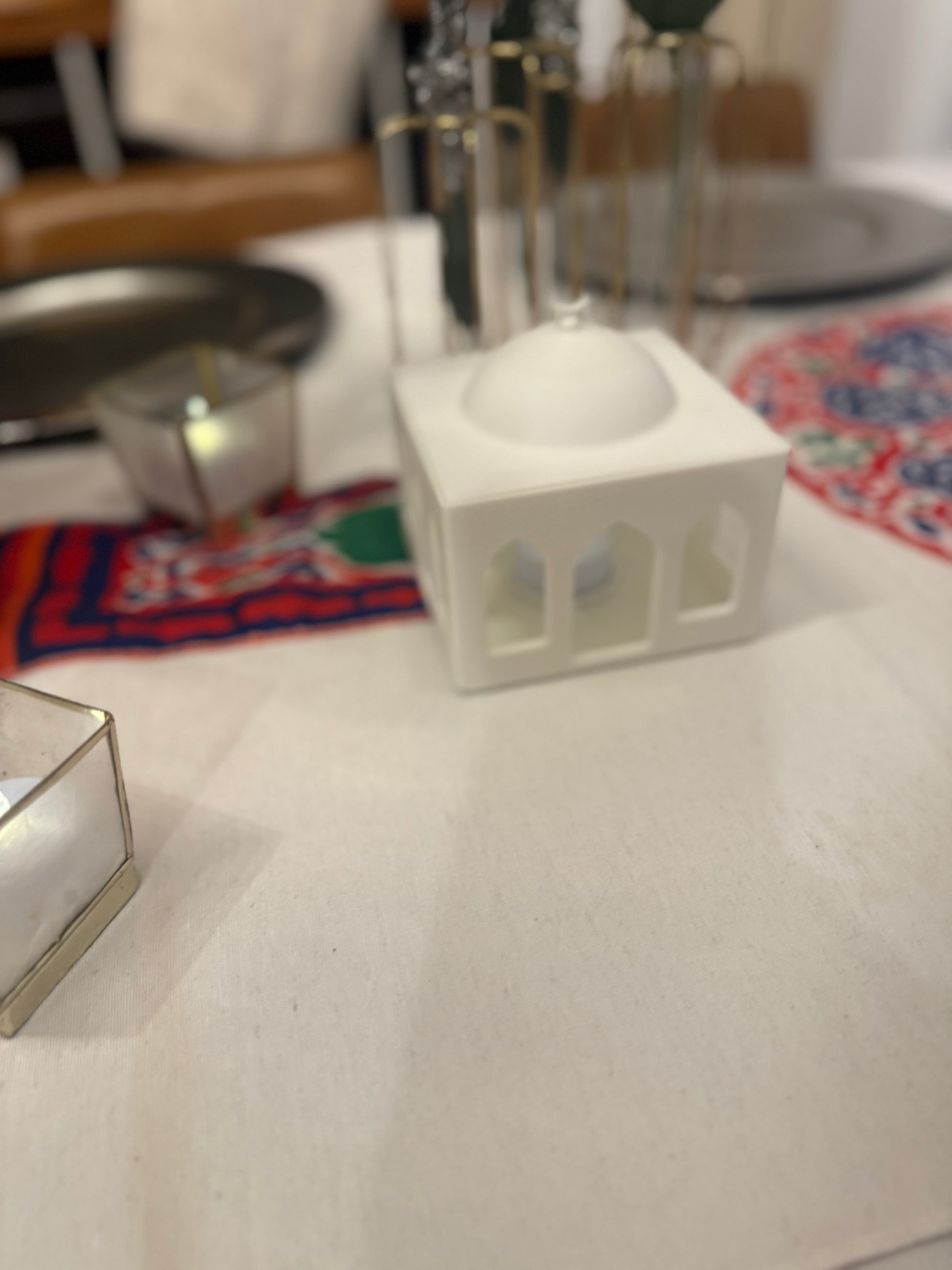 Masjid LanternThe Masjid Lantern is designed for versatility, accommodating an LED light to provide illumination during festive occasions. Its elegant white finish enhances table settings for Ramadan and Eid dinners, creating a serene atmosphere. This lantern combines aesthetic appeal with practicality, making it an ideal decorative choice for celebrations.