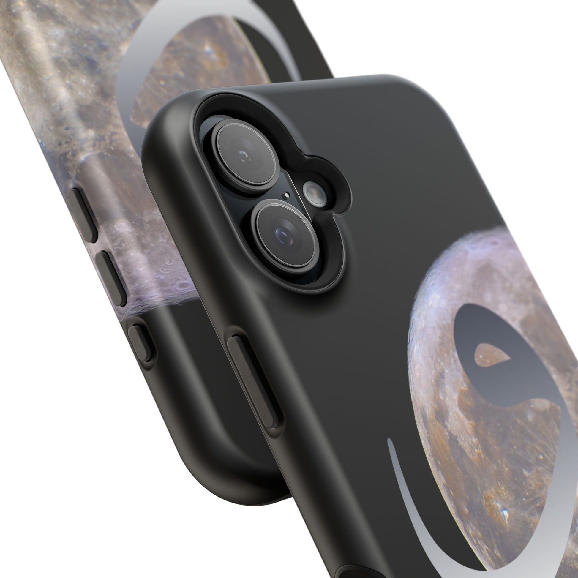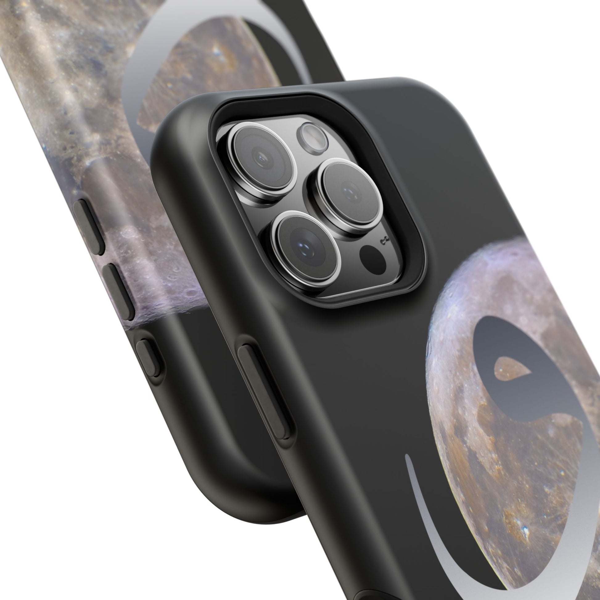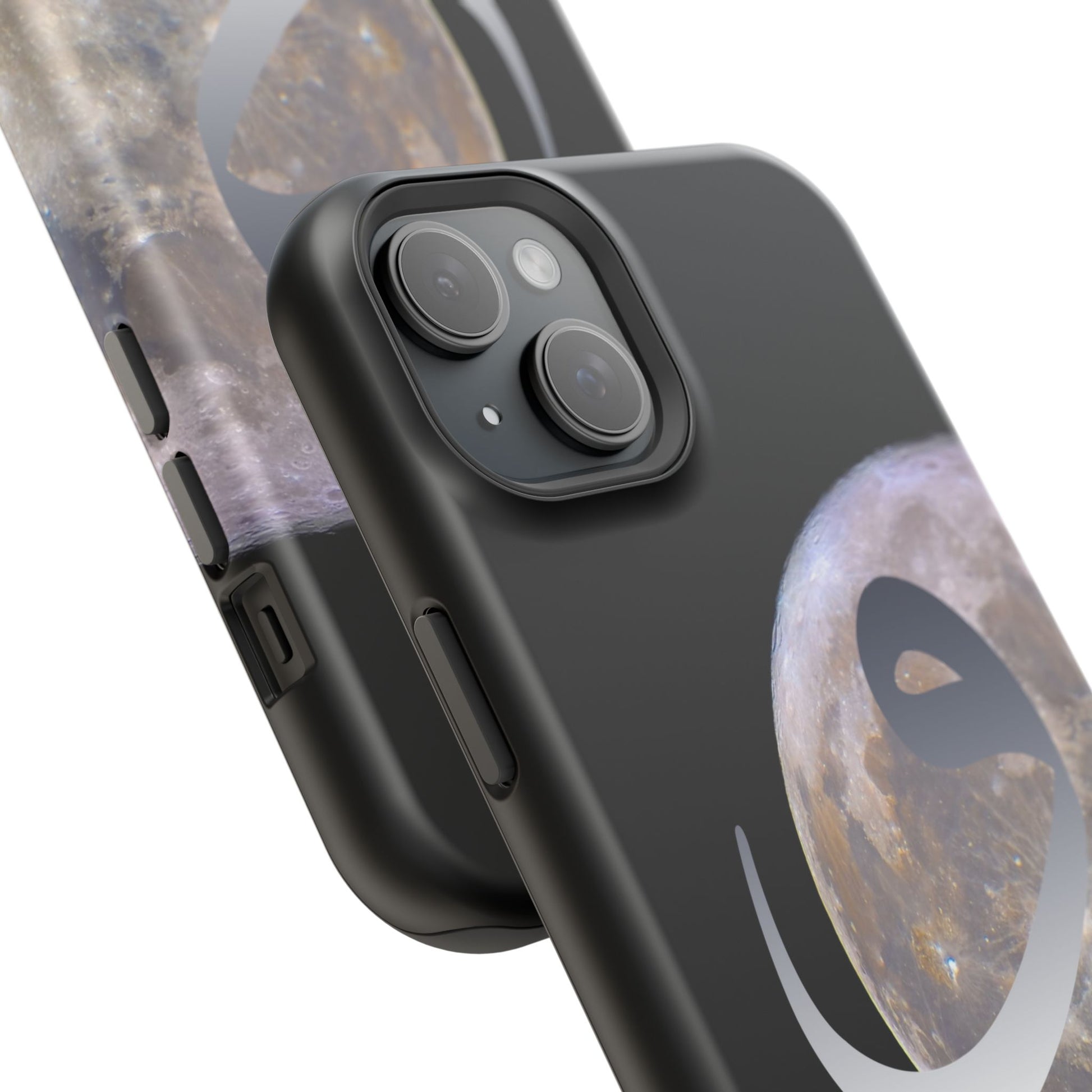 Our Moon magnetic tough case is is to remind you of the magnificence of the Universe. Equipped with an outer polycarbonate shell and inner black TPU lining, this case delivers robust protection thanks to its durable, flexible, impact-resistant nature. Available in a matte or glossy finish, each case comes with an embedded magnet module that is compatible with MagSafe® accessories and a stunning print that fully wraps around your case's exterior.