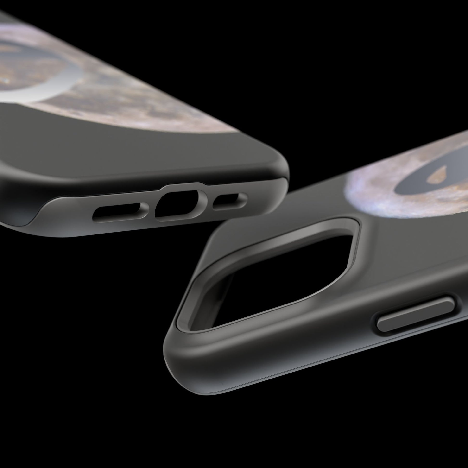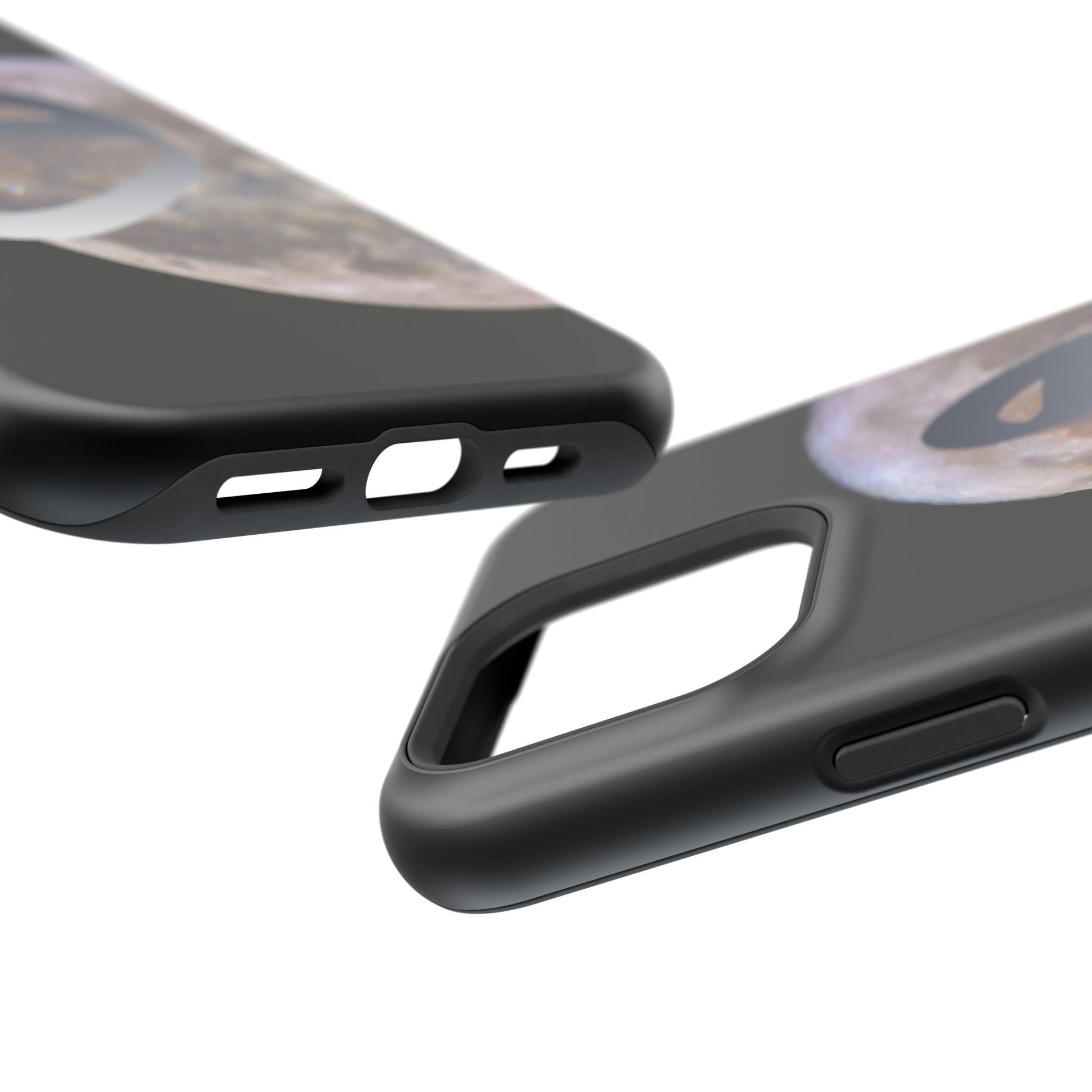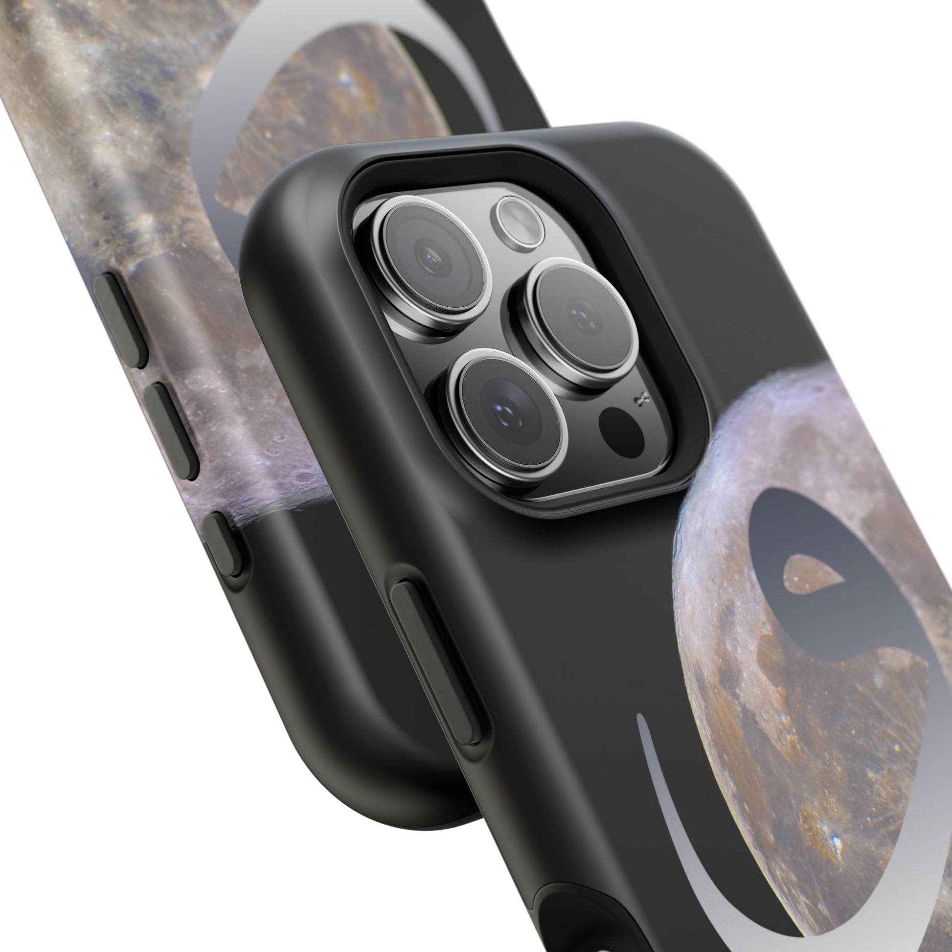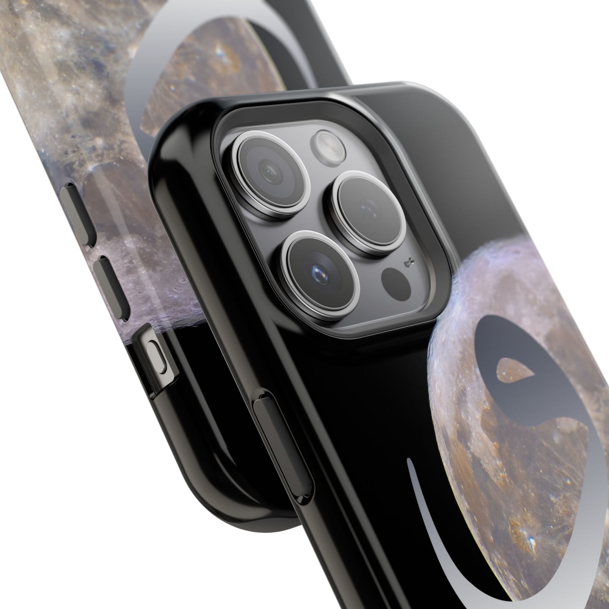 Our Moon magnetic tough case is is to remind you of the magnificence of the Universe. Equipped with an outer polycarbonate shell and inner black TPU lining, this case delivers robust protection thanks to its durable, flexible, impact-resistant nature. Available in a matte or glossy finish, each case comes with an embedded magnet module that is compatible with MagSafe® accessories and a stunning print that fully wraps around your case's exterior.