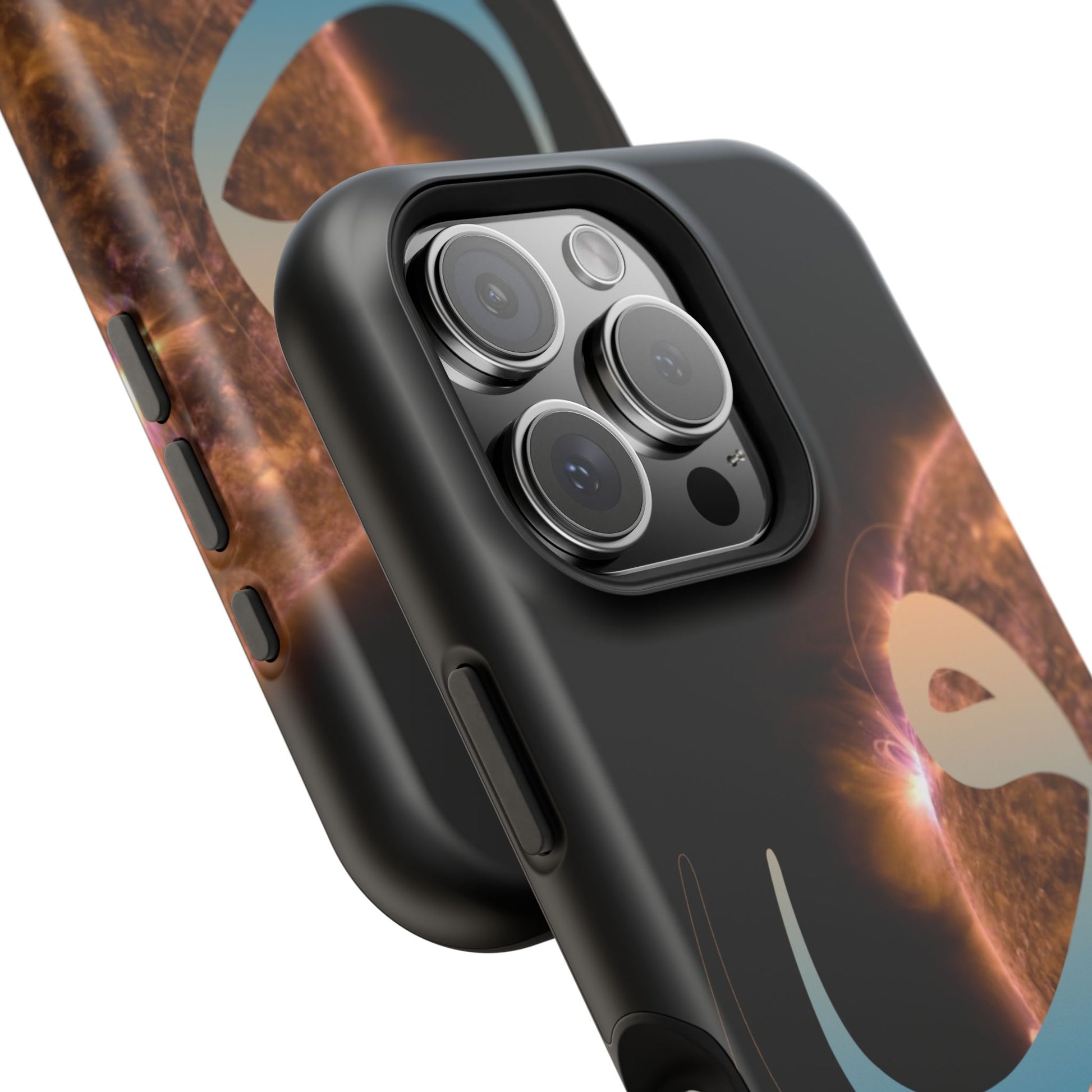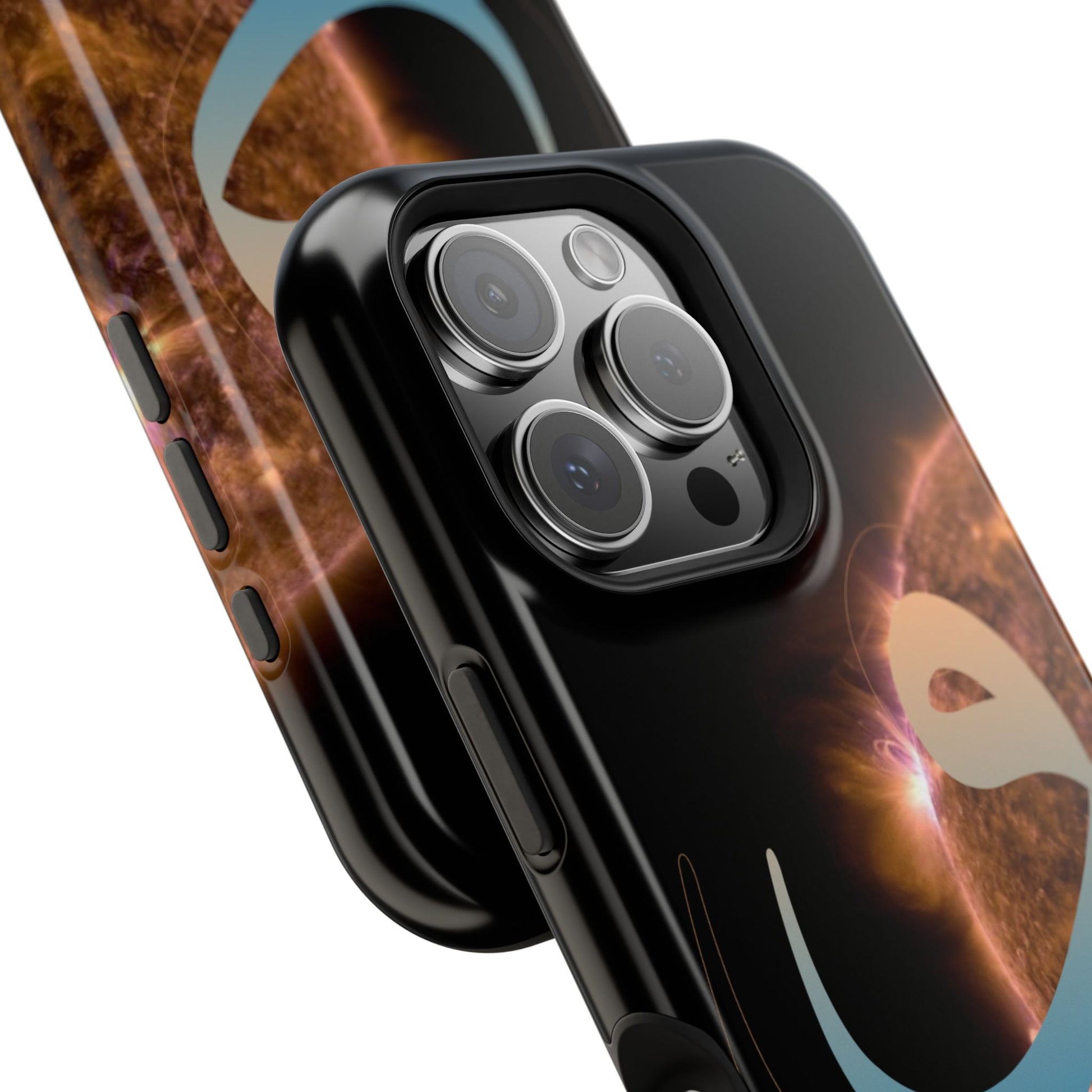 Our Sun - magnetic tough case is is to remind you of the magnificence of the Universe. Equipped with an outer polycarbonate shell and inner black TPU lining, this case delivers robust protection thanks to its durable, flexible, impact-resistant nature. Available in a matte or glossy finish, each case comes with an embedded magnet module that is compatible with MagSafe® accessories and a stunning print that fully wraps around your case's exterior.