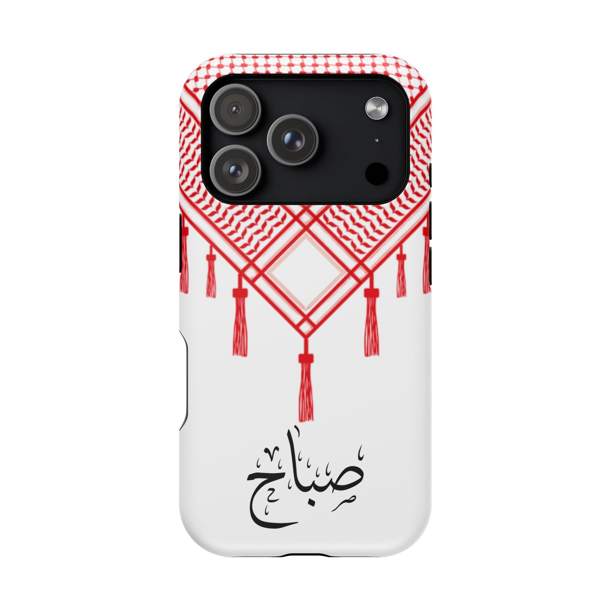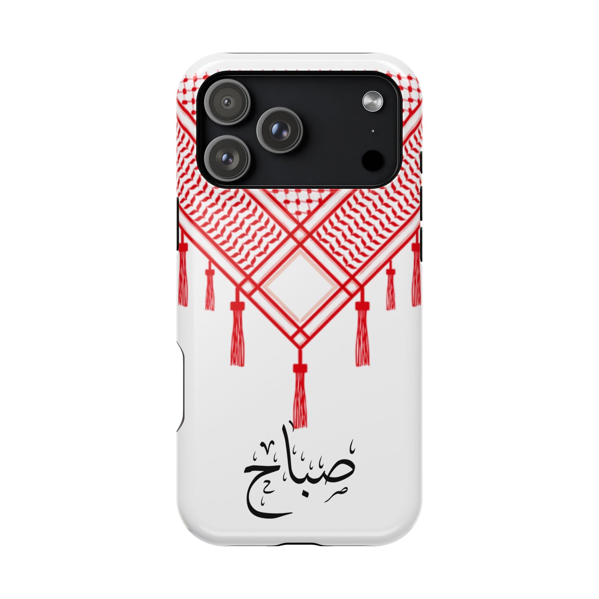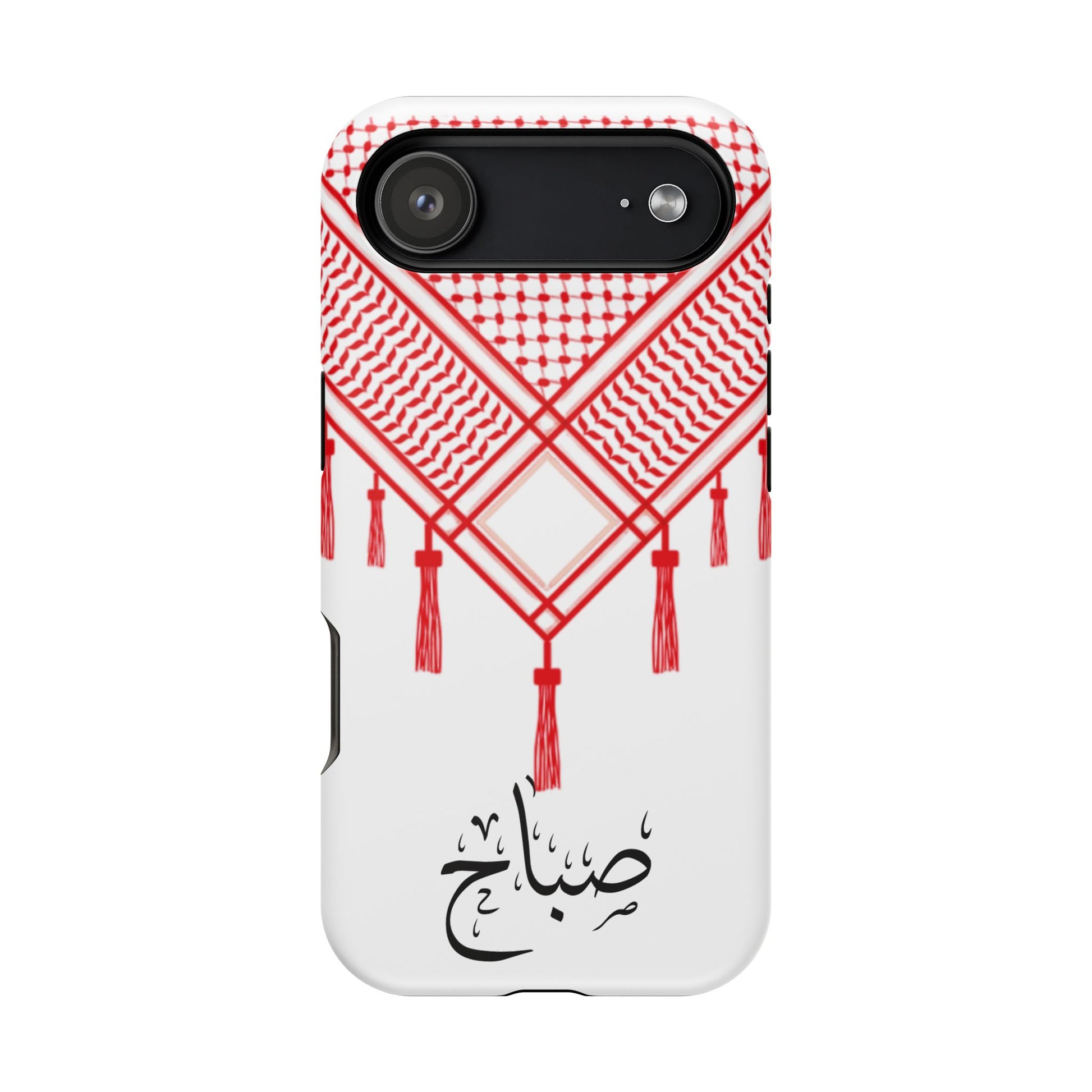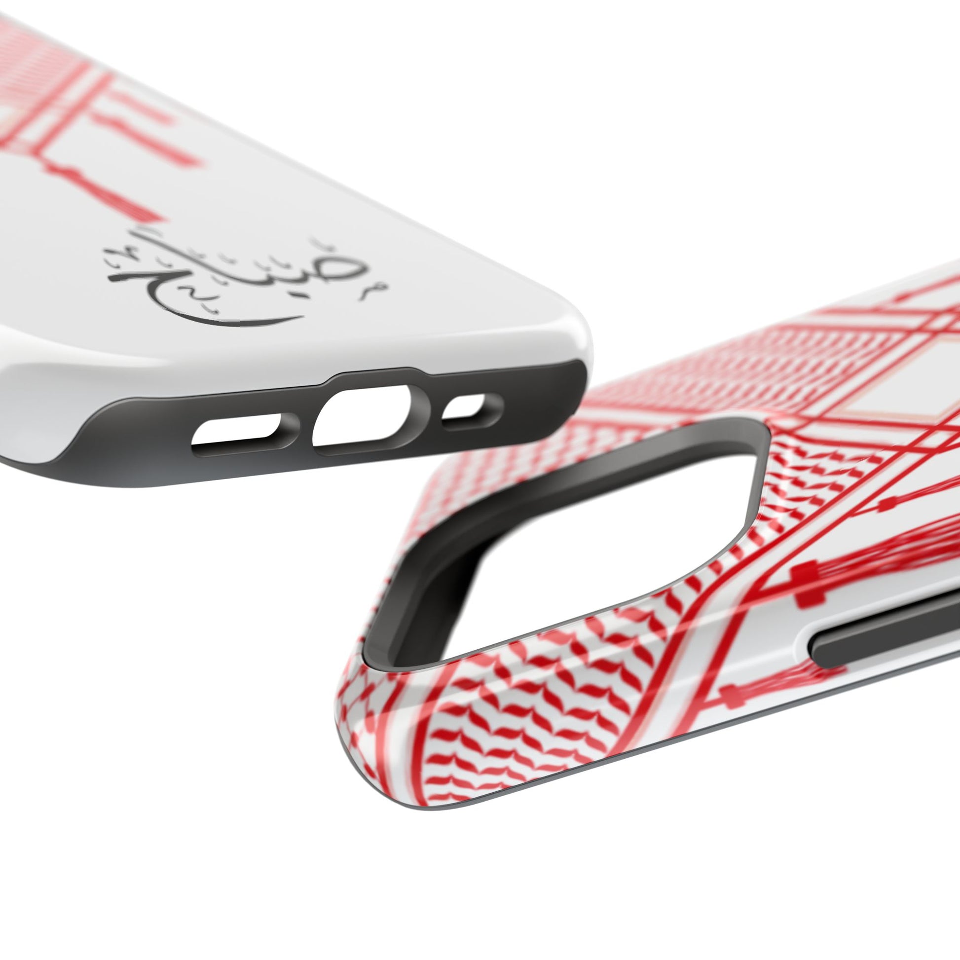 Personalized Arabic Calligraphy - Iphone Magnetic Impact-Resistant Phone Case - Red and White Shmagh Design