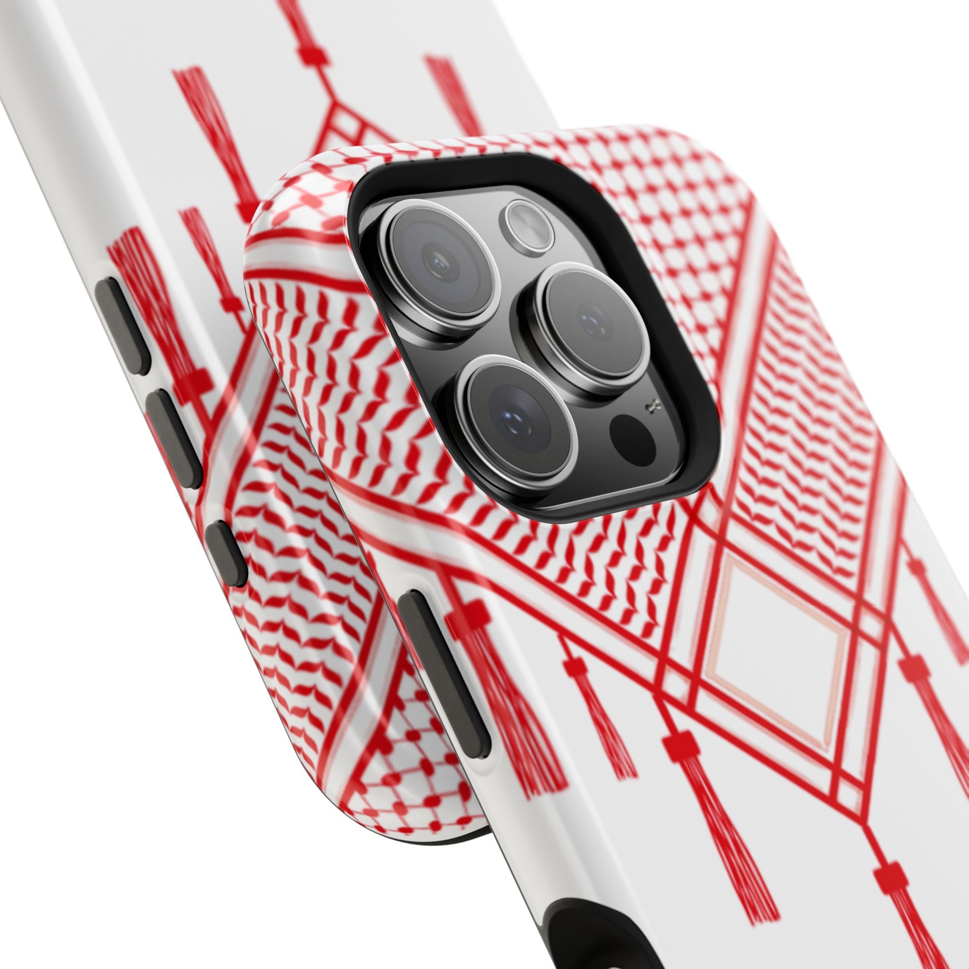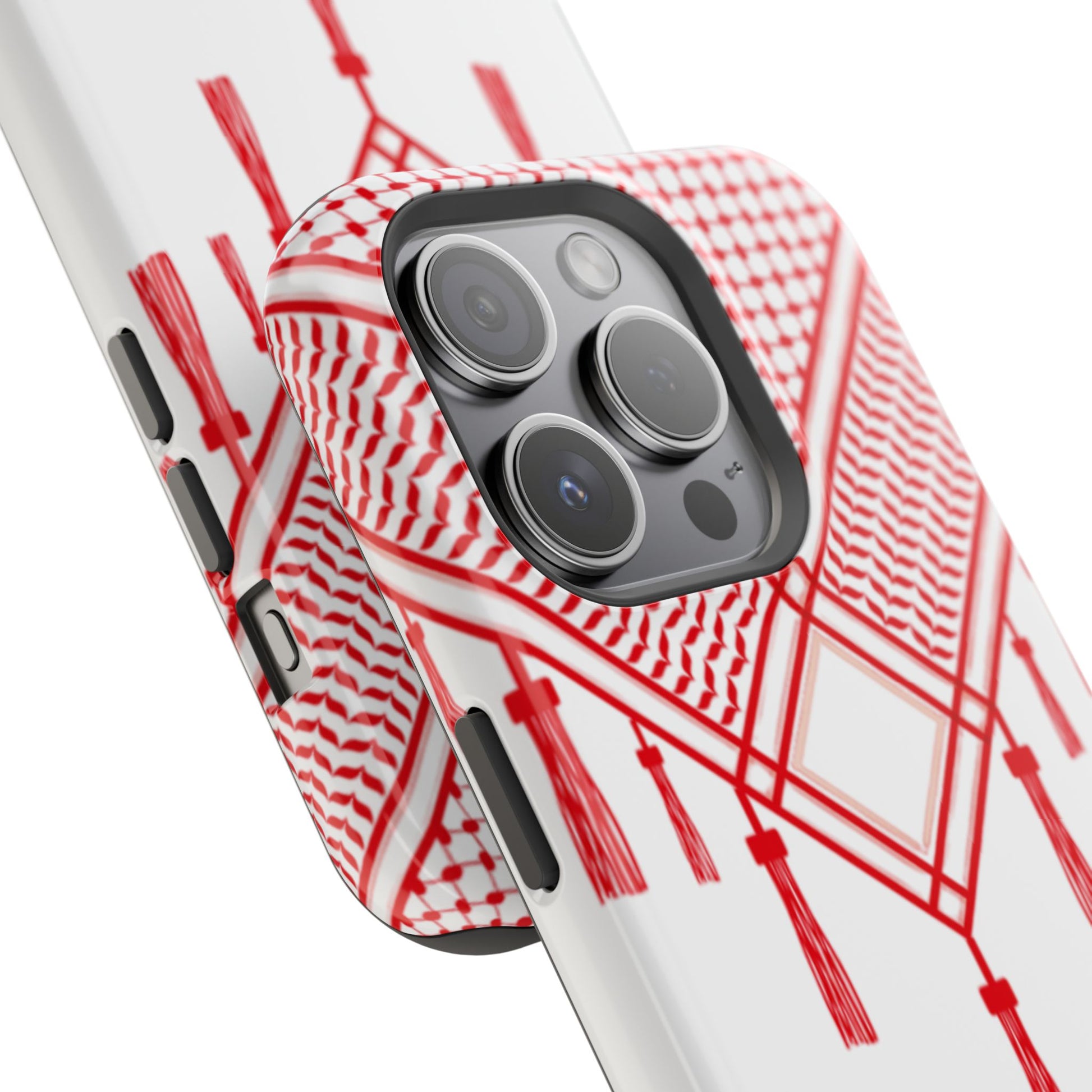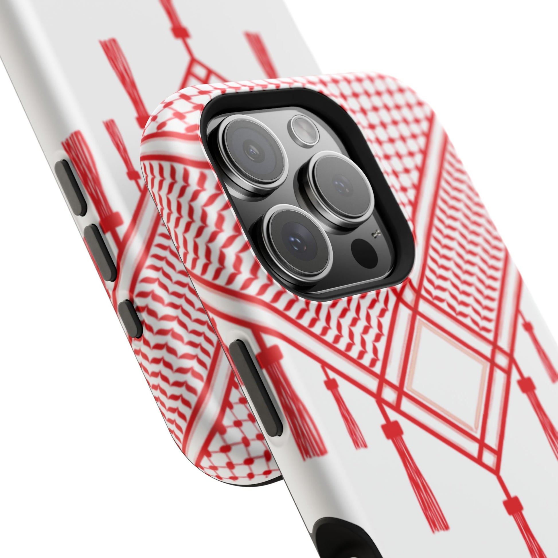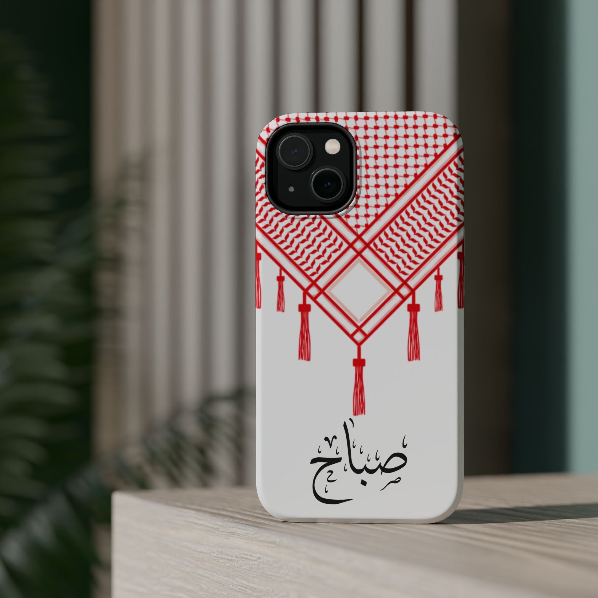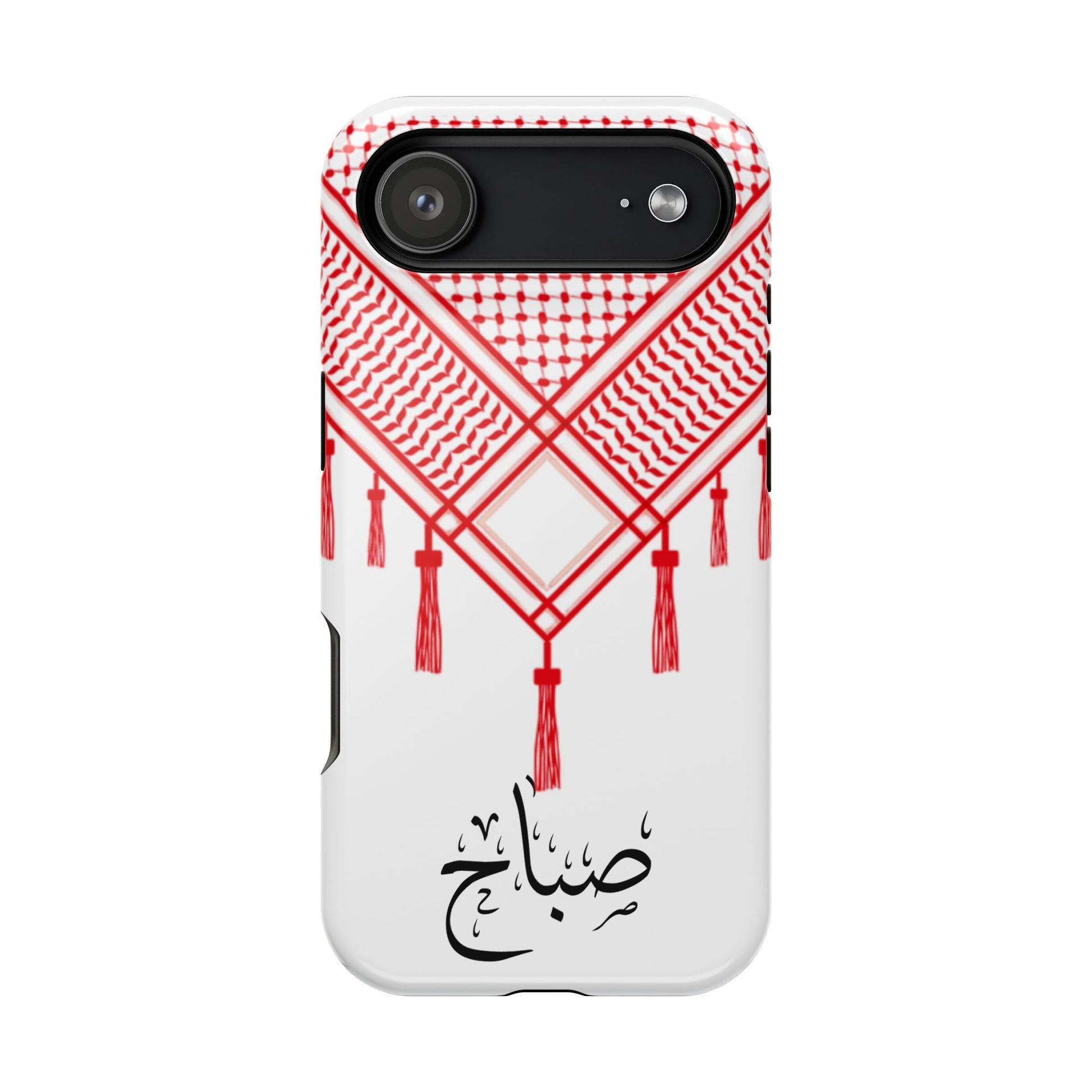 Personalized Arabic Calligraphy - Iphone Magnetic Impact-Resistant Phone Case - Red and White Shmagh Design