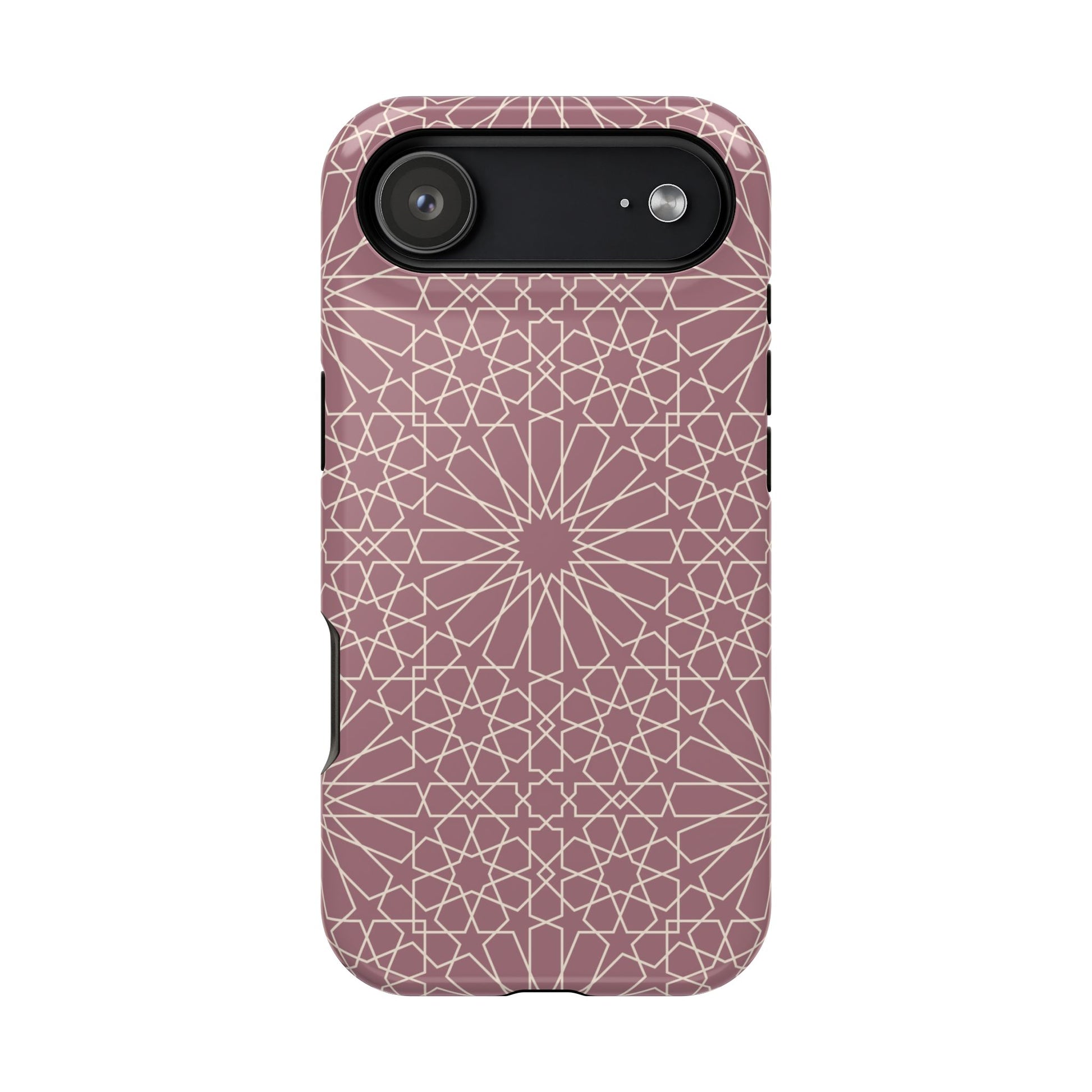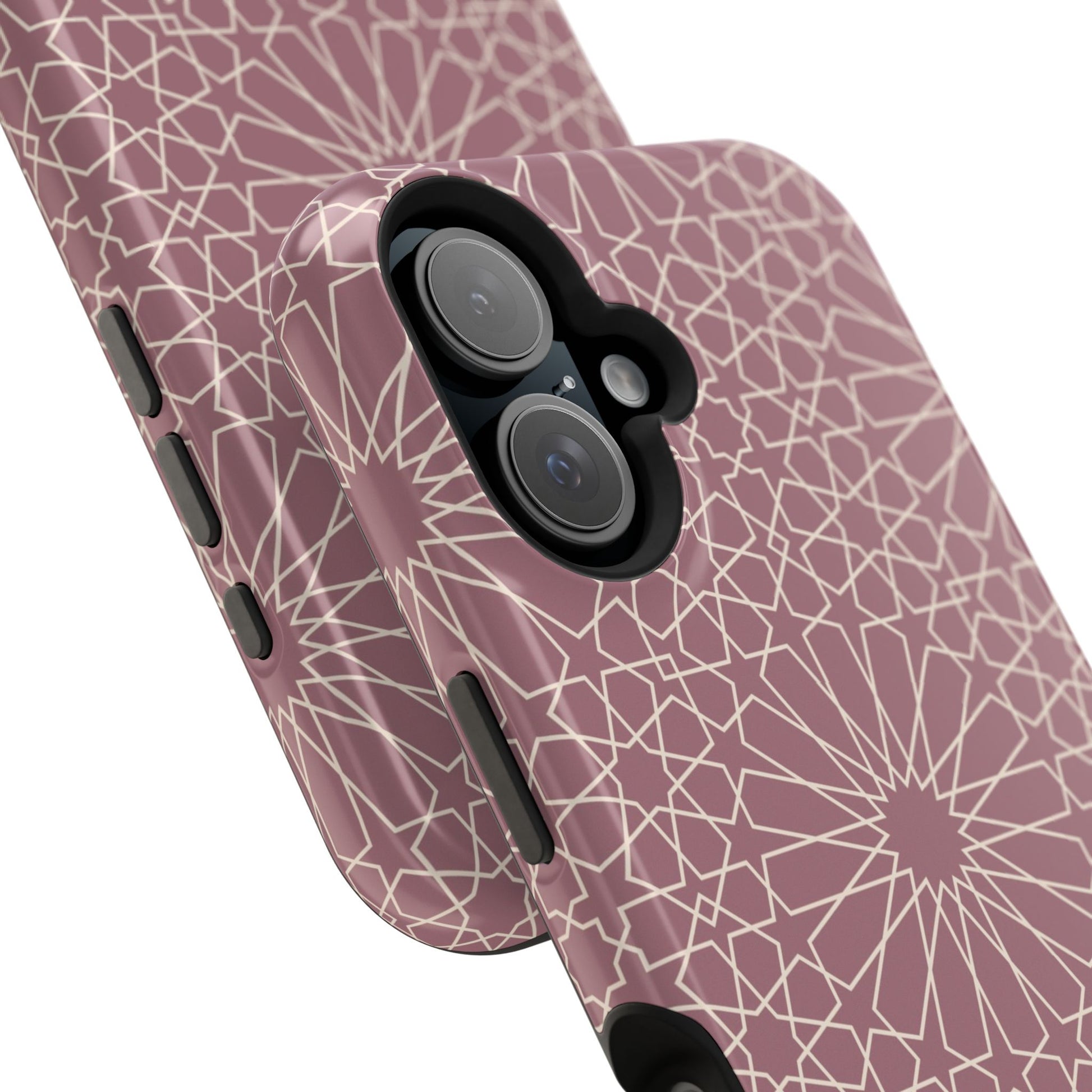 Pink Flower 🌸 Geometric magnetic phone case. Equipped with an outer polycarbonate shell and inner black TPU lining, this case delivers robust protection thanks to its durable, flexible, impact-resistant nature. Available in a matte or glossy finish, each case comes with an embedded magnet module that is compatible with MagSafe® accessories and a stunning print that fully wraps around your case's exterior.