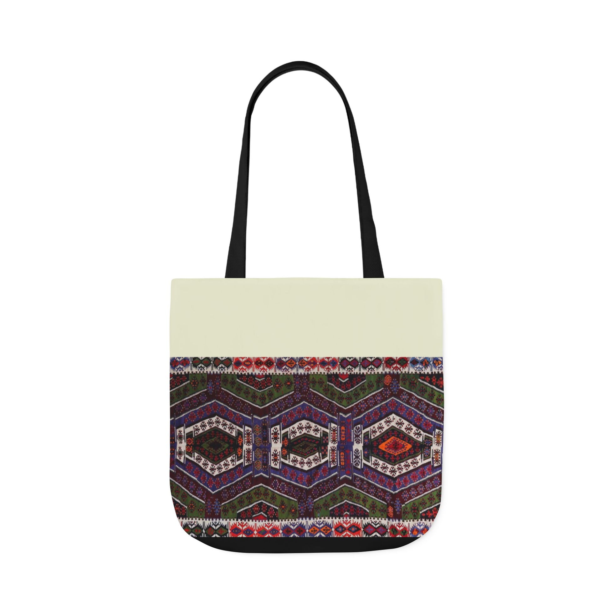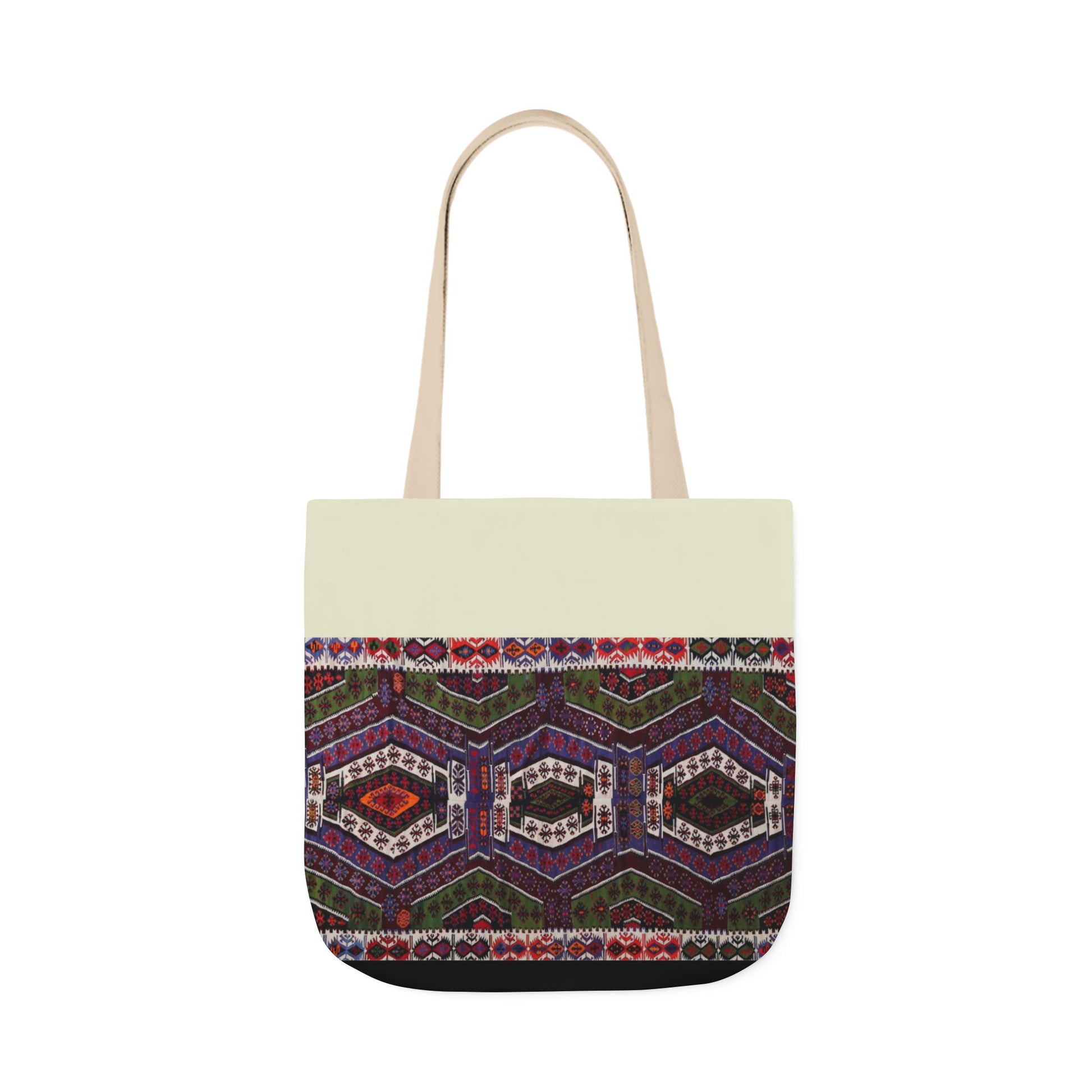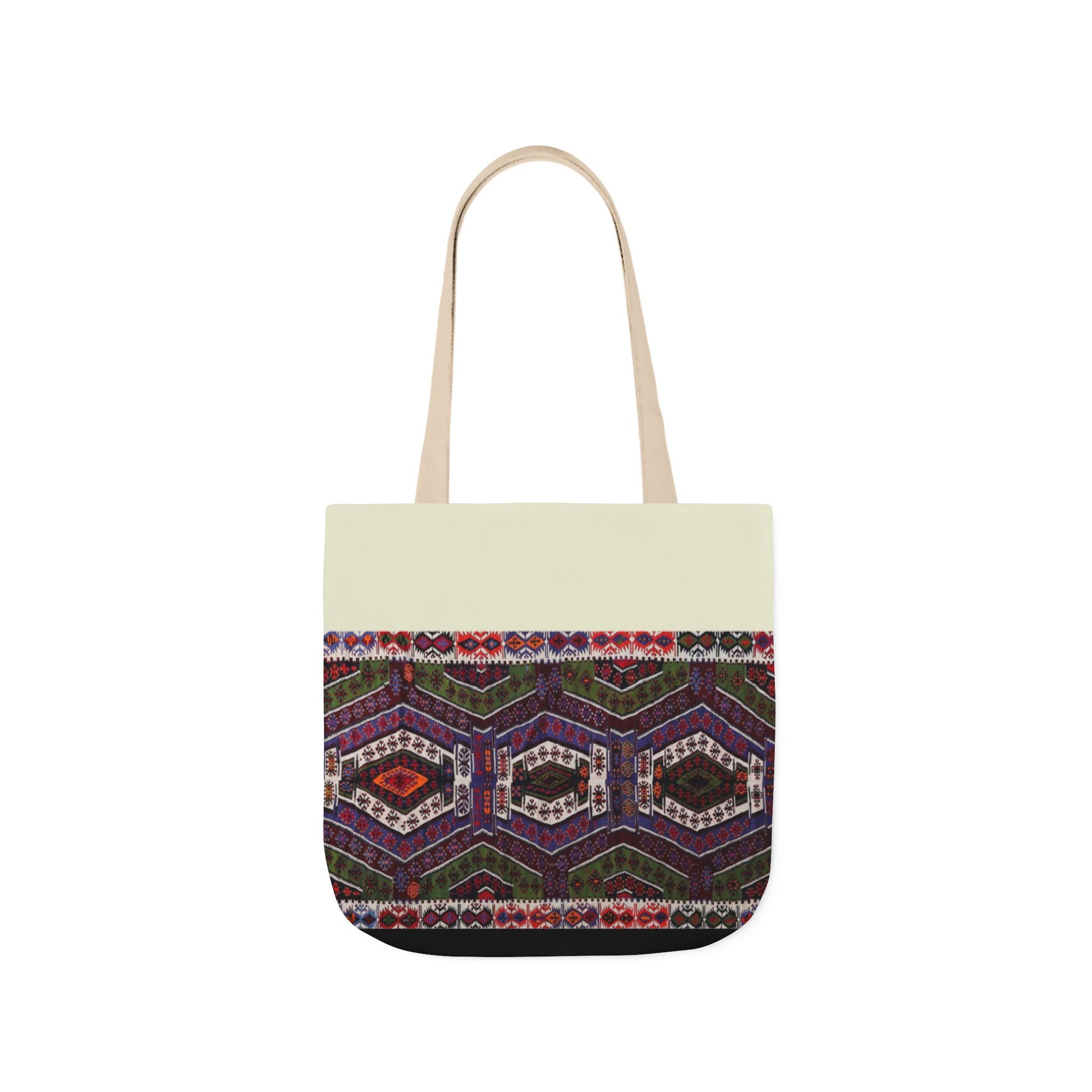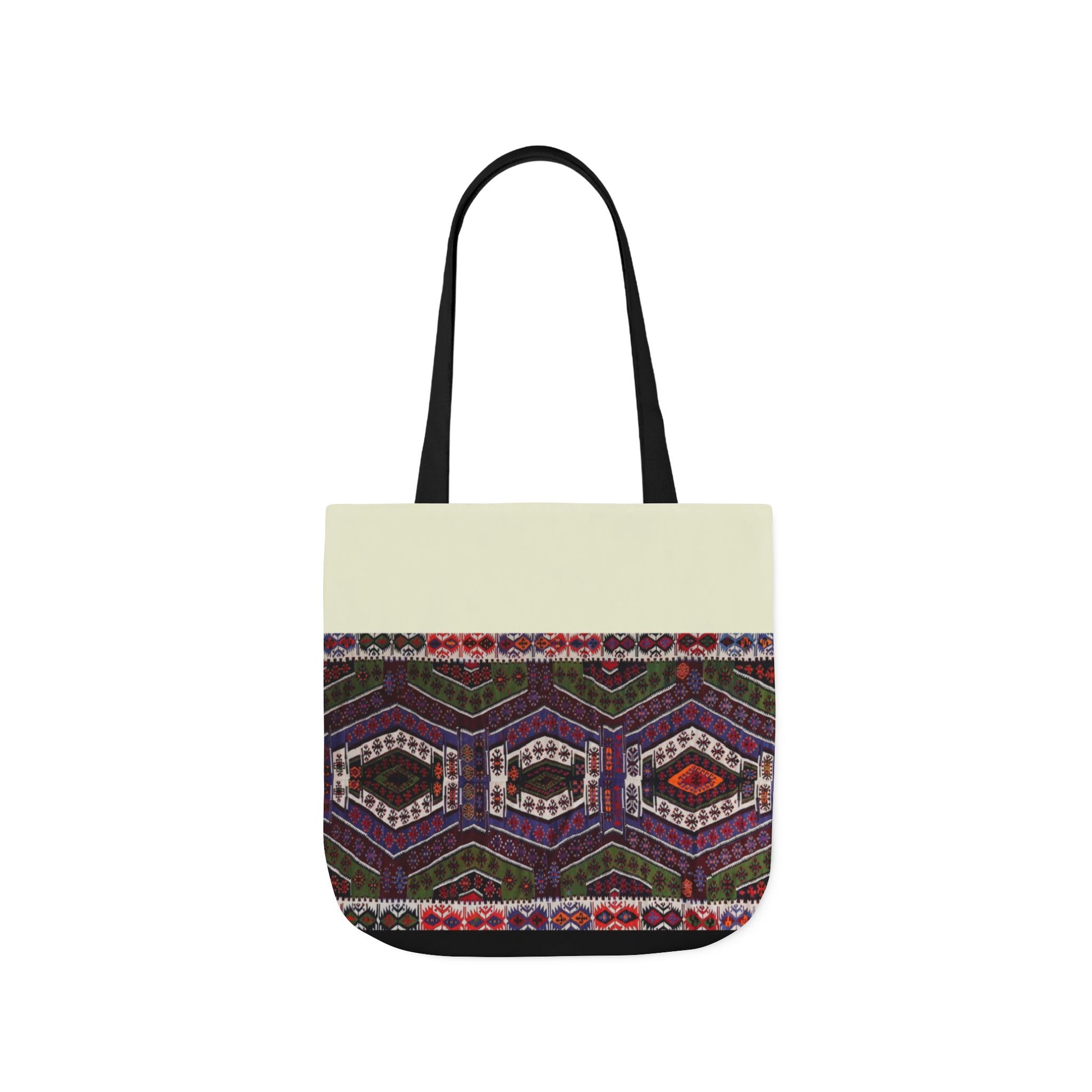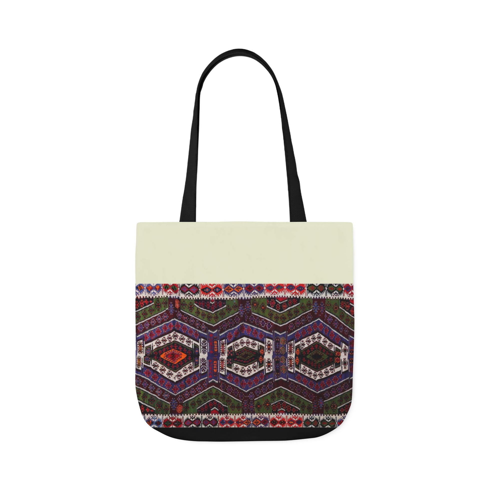 Purple and Res geometric Designs Tote Bag, 2-Color Straps