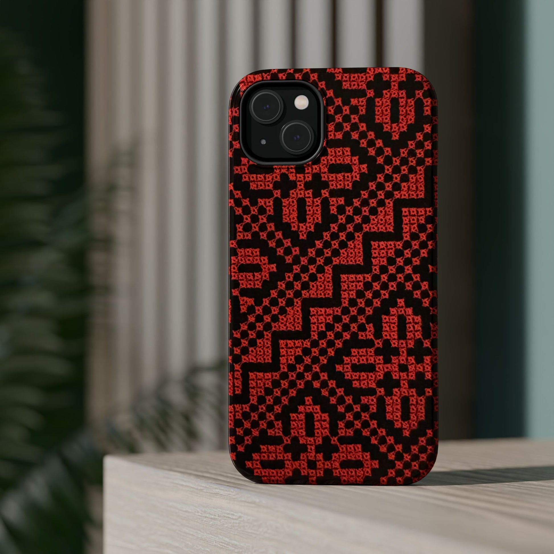 Red and Black Tatreez Design - Iphone Magnetic Tough Case